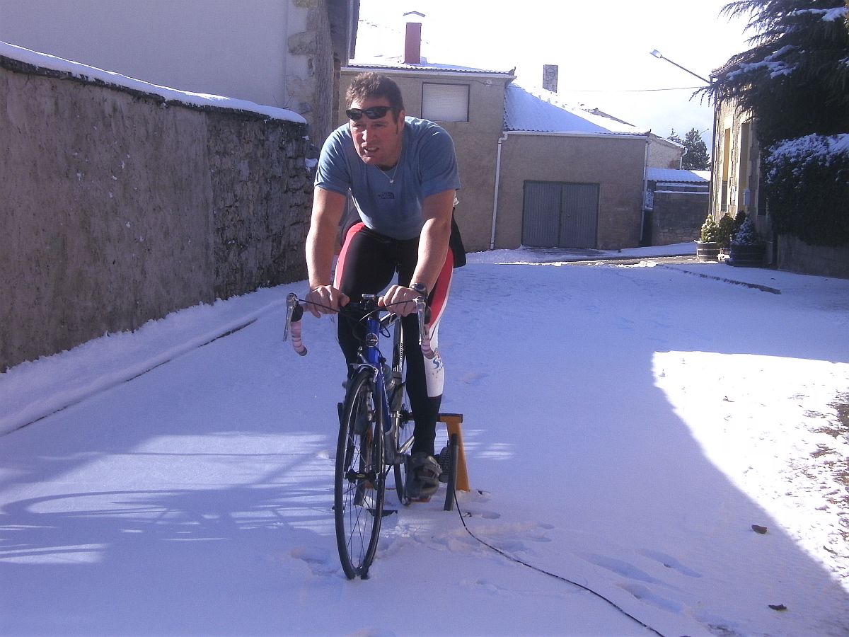 Bueno y cerramos reportaje con la foto clásica de nuestro amigo el Fari de Soria felicitando navidades, entrenando como puede, pero con lujo, manga corta en nevada!