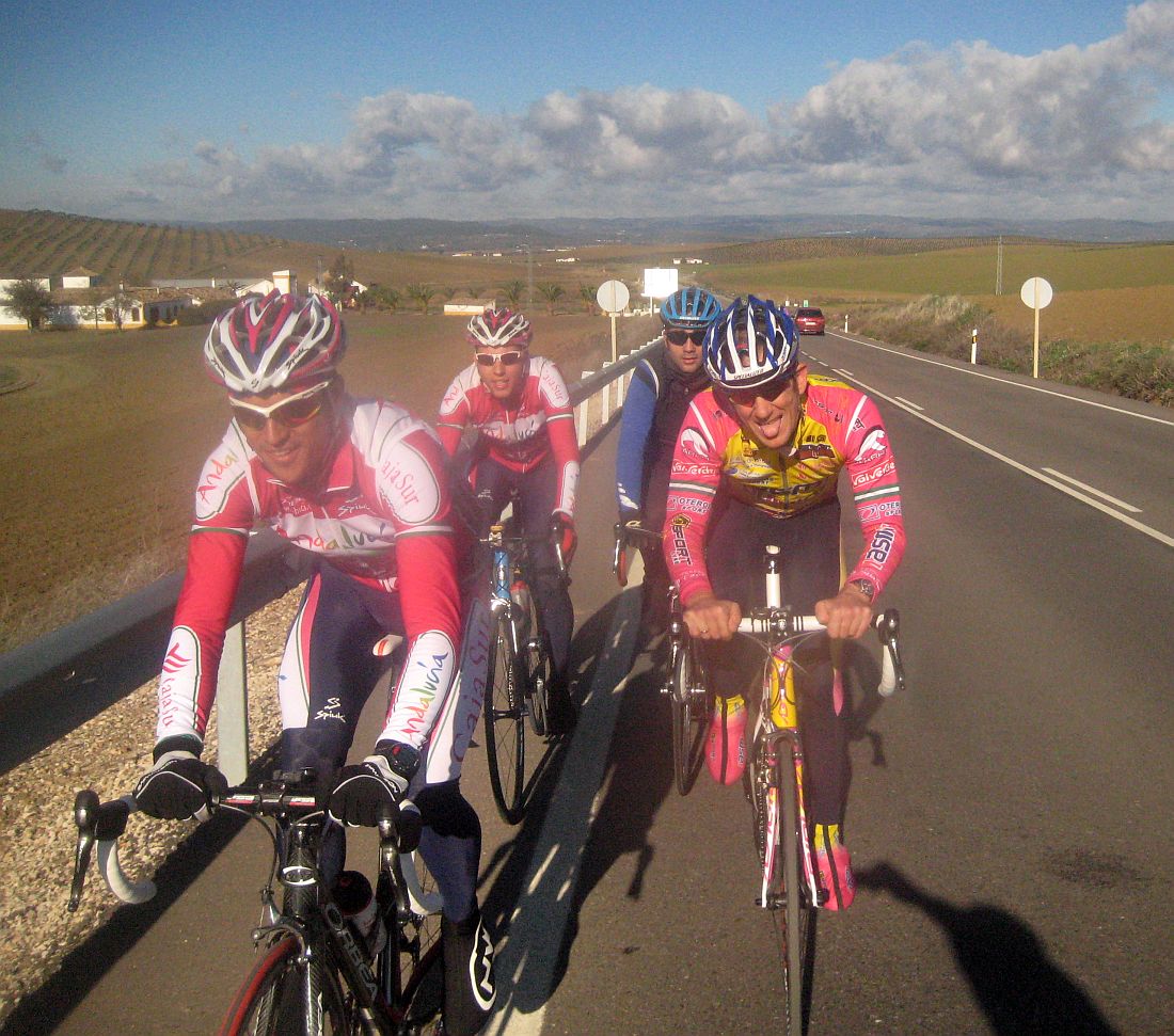 ![]() Aquí iniciando la recta eterna de las Maruanas, camino de Bujalance. |
