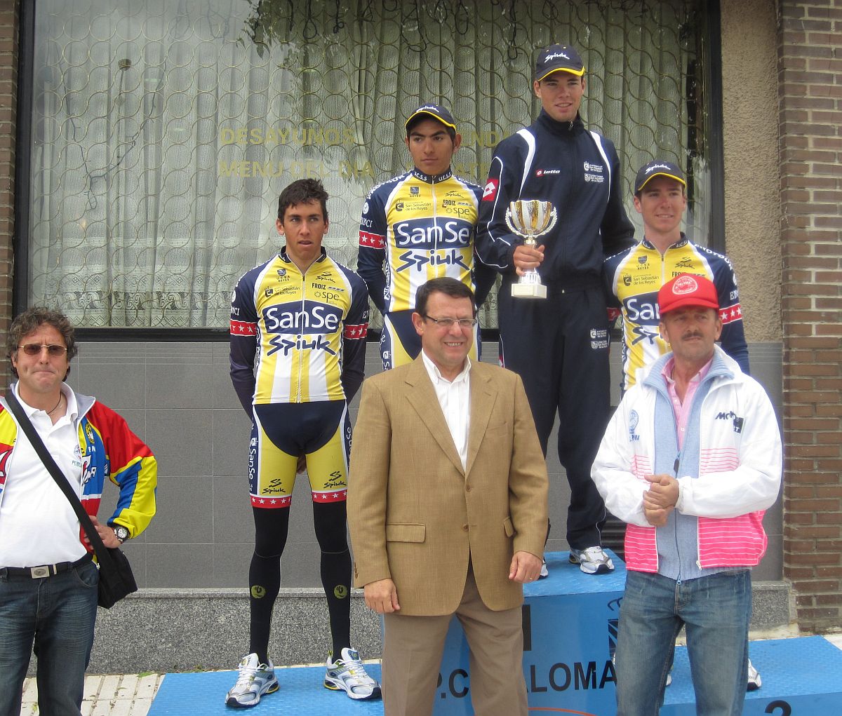Por delante llegaron al sprint, donde Pizarro hizo valer su experiencia ganadora de Fuenlabrada y repitió triunfo, arrancó de abajo y pudo llegar pasando a Perdiguero, que lo había intentado en solitario, segundo fue el Francés y tercero Armando del Sanse, su jugada de arrancar aprovechando la superioridad númerica en la fuga no pudo valer con el impulso de Pizarro y el Francés.
