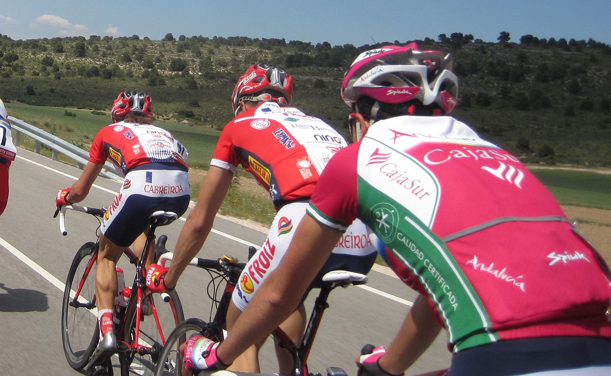 Froiz tiraba cerrando cuneta pero en un tramo que no hacía daño, estaban esperandose al giro izquierdas que había en la carretera de Bonete, yo iba bien colocado pero en unos metros pasaron todos para alante y me descolocaron, fue girar y empezar la miseria, aire culo costao.... mil por hora por la cuneta.. un peligro.. una tensión... solo son 2 kms ese tramo pero para verlos!