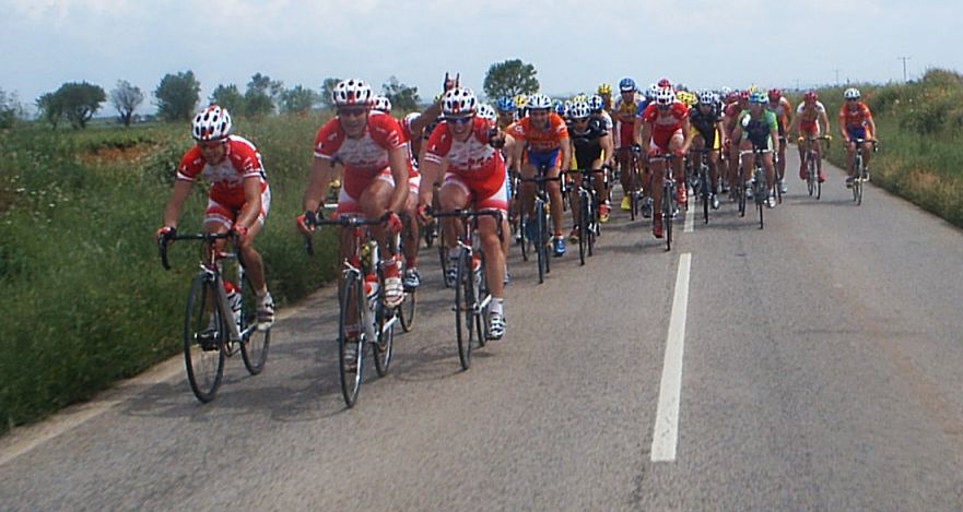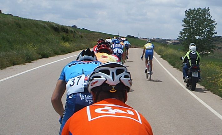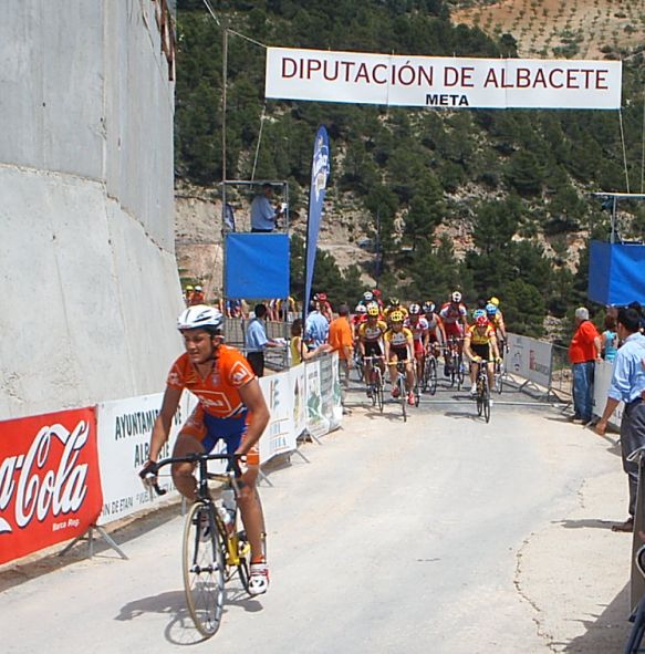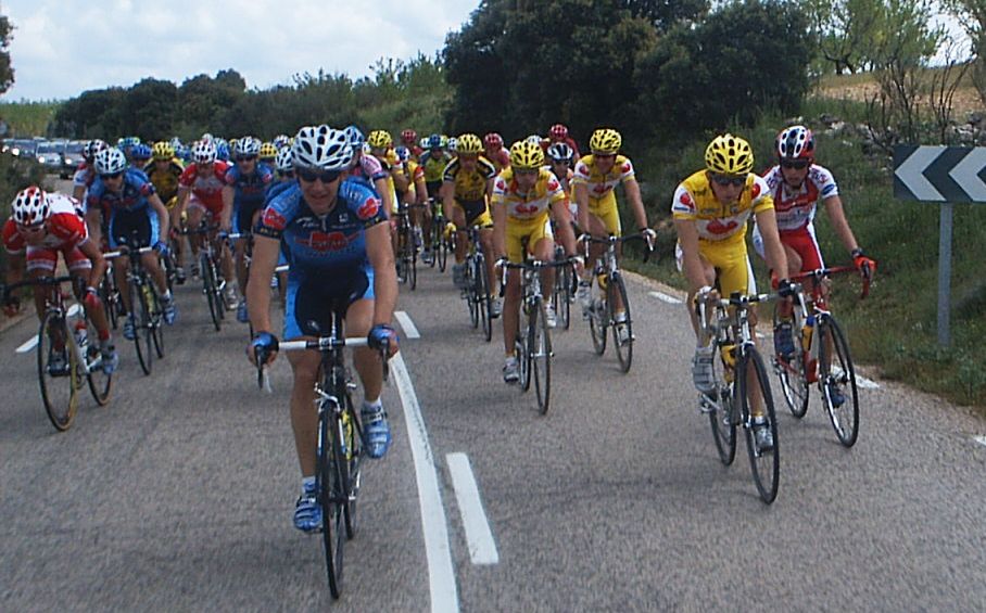 PRIMERA ETAPA: BARRAX-LA RODA (160 KMS) En el km 5 se hizo un corte de 15 tios que llego a meta, se pegaron una buena cabalgata esos muchachos. Atras se nos habia ido el caballo a todos, yo iba arrancando solo, sacando fotos... Antes de Munera nos fuimos unos 4, Milton del Cai, un Saunier, un Italiano y un Córdoba que no pasaba. Cuando nos pillaron arranqué yo solo y estuve unos kms haciendo el Joaquin Soler, cuando me pillaron volví a arrancar con otros 4 , y estuvimos unos kms con cierto hueco. Otra vez nos cogieron y otra vez volvi a arrancar yo solo... Eran ataques sin sentido por que iban 15 tios alante pero hacian que no se parase. Los CCM decidieron meter cuneta y arrancaron la moto, pero en esta vuelta no se quedaba nadie. Después arrancó Pablo Soler y cuando le pillaron tuvo una caida que salió volando y aterrizo en los trigos, ni se le veia... Pasando Villarobledo los CCM volvieron a encunetar, esta vez mas seriamente, se puso la cosa bastante mas seria, cuando pararon arranqué yo y me fui solo, estuve unos 10 kms rodando solo hasta que me pillaron, justo me pillan, arranca Pablo Soler que venia de enganchar de la caida y se marcha con 20 tios. Esos 20 tios engancharon con los 10 de delante y formaron un grupo de 30 tios que llego a meta y que al pelotón nos metió 3 minutos. Mis numerosos ataques no valieron para nada, solo para calentar motores para las escapadas de las siguientes etapas. Llegaron unos 29 al sprint y ganó Carrasco del Salamanca Patrimonio, atras en el pelotón se pusieron a encunetar los Garcamps y lo partieron, solo llegamos unos 30 tios, pero como dije a 3 minutos de la cabeza, la vuelta se habia ido ya a la mierda para nuestro grupo. Pero lo peor no fue eso, lo peor fue que cuando llegué a la furgona del equipo para cambiarme vi que me habían mangado la mochila en Barrax. Fue en la salida, cuando había estado abierta alguno entró y le dió tiempo a pillar mi mochila y alguna bolsa mas. Fue una gran putada porque tenía el movil , el DNI , permiso de conducir, mallot largo culotte largo, zapatillas y no se cuantas cosas mas.... Daban ganas de pirarse de la vuelta y mandarlo todo a tomar por culo, la cámara no me la mangaron por que me la lleve en carrera... Fuimos a la vuelta sin mecánico... Los corredores teniamos que llevar la furgona y claro, asi no la vigila nadie y paso lo que pasó. SEGUNDA ETAPA: FUENTE ÁLAMO-ALMANSA (155 KMS) La única manera matemáticamente segura de pillar la escapada buena es estar en todas y eso fue lo que hice yo en esa etapa. Cuando no me metía en un corte arrancaba solo . Pasando Hellín me fui solo un rato ,hasta que vineron escapados, tiramos millas , parecía que era buena, pero justo antes de un sprint especial nos pillaron. Fue pasar el sprint y volví a arrancar, cogí a un Garcamps, estuvimos los 2 , nos pillo un grupillo, nos pillaron a todos , volvi a arrancar y ya me fui solo otra vez. Esta vez saqué mas hueco, iba yo solo hasta que llegó un ruso del Nagares, estos rusos reman mucho y los dos ibamos a toda ostia juntos, hasta que nos pilló un grupin con un par de Wurths, parecía una escapada buena pero en el puerto de tercera nos pilló el pelotón. Justo cuando nos pillaron arrancó Pablo Soler y se llevó la montaña. Salieron unos cuantos a por el y yo me fui a su rueda, pero en vez de esprintar para hacer segundo en la montaña preferi coger agua de la gente. Despues del puerto se agrupó todo y volvieron a haber ataques ,se enfiló la cosa y salte yo para pillar un corte que se había ido, les pillé y nos juntamos 15 tios, era el km 80 y esa por fin iba a ser la escapada buena del dia. No había mucho orden en ese grupo, unos pasaban otros no, yo para variar era de los que si pasaban. Llegamos a la intervuelta ,que estaba 10 metros despues de una curva peligrosa, asi eran todas las metas volantesy sprines , unas emboscadas tremendas... Yo intenté disputarla pero en la curva casi voy contra un arbol... Empezamos a abrir hueco con el pelotón , "Venga venga que han parao!!!!!!!" " Pero vamos todos ostiaaaaaa!!!!!!!" "Si no pasais os cerramos" Frases típicas que se oyen en una escapada y que todo el que ha corrido las conoce bien. Los Wurth eran los que mas empeño ponían, llegamos a un sprint especial , pase tercero, llegamos a una meta volante, la gane arrancando antes de la curva... Quedaban 20 kms a meta y los Wurth dijeron eso de si no pasais os cerramos , asi que alli ibamos metiendo cuneta, pasabamos casi todos , uno de los que no pasaban era rubiet Oscar Grau de CCM, que iría encunetado... A 10 de meta arrancá Redondo, pero un par de Cais y yo nos pusimos a bloque para pillarle , seguimos tirando, llegamos a Almansa y menuda emboscada... Un Callejeo de 5 kms muy peligroso con curvas y bajadas peligrosas, la ventaja con el pelotón habia bajado, atras venian a 80 por hora y nos pisaban los talones pero después de la paliza habia que llegar por cojones. Llegamos a la recta de meta y a 500 metros me puse a la par de Rojas y Redondo, los Wurths que le estaban lanzando el sprint a Jordi Grau, pero no pude hacer mas , me empezó a pasar gente y solo pude hacer 9º de quince tios, ganó Oscar Grau del CCM, que había ido a rueda. Llegamos con 25 segundos, si todos hubieramos ido a rueda como él seguro que tambien habiamos llegado... La media de la etapa fue 47,5 , increible... TERCERA ETAPA: ALCARÁZ-HOTEL DE BOGARRA (125 KMS) Los primeros 20 kms estuve en la oficina hasta que entramos en la carretera buena, donde empezaban los puertos , arranqué para pillar el corte bueno de 15 tios. Empezamos a subir el primer puerto de segunda, donde arrancó Mariano Santiago, alli se fue el tio y no le volvimos a ver... Bajando el puerto seguiamos unos 15 ,algunos que se habian quedado y otros que nos habian enganchado... En los llanos de entre puerto y puerto se pusieron a tirar los Grefusa a 70 con Galvañ hasta que llegamos al Bellotar, el siguiente puerto, de carretera muy pestosa. Alli se p