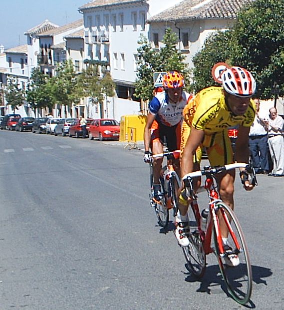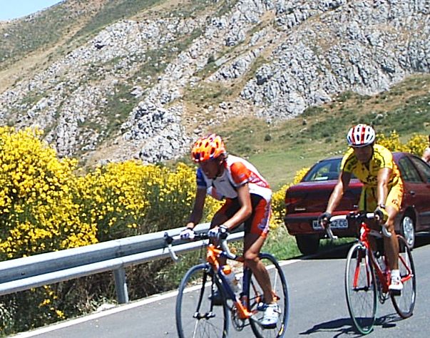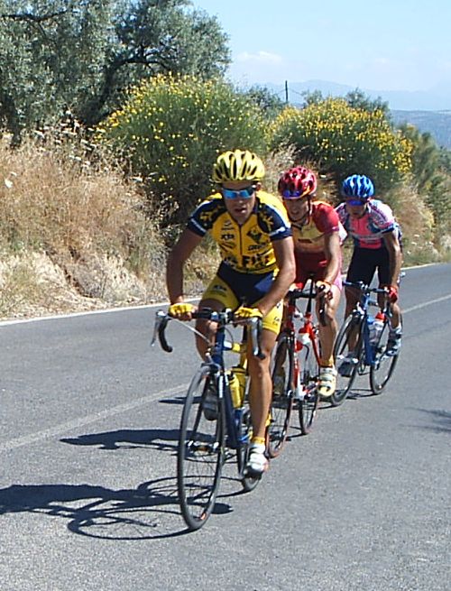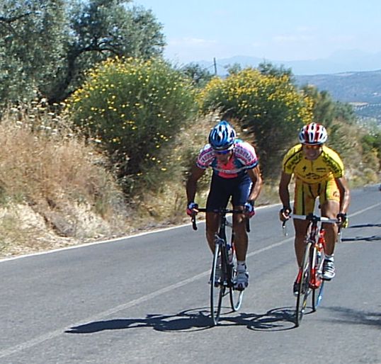 Como me jode tirar del carro, llevar 30 tios a rueda para llegar al repecho ese del Torcal y que te remachen, hice el 14º un puesto pestoso pestoso de mierda , y mas si cabe en una buleria. La buleria era muy dura y pestosa, aunque al principio tenia sus 10 kms llanos, donde se hizo una escapada , la típica escapada con M.A , Alberto Aragones... tambien iba Edu Parras. Atras nos pusimos a pegar ostias hasta que se neutralizó la escapada, empezaron los repechos y me meti en un corte con Saul y el Mauri falso del Avila Rojas, pero coronando el repecho, que era durete, llegó Pablo Soler , que habia partido el pakete en trozos, aunque luego se reagrupó la cosa. Cada vez los repechos eran mas duros hasta que se llegó al primer puerto, yo no iba muy bien, empezé a ir jodido, jodido, petao petao , "Dios que me quedo en esta mierda de puerto , no puede ser!!!" Y me quedé espatarrao. Por delante Pablo Soler disputo la montaña y la ganó. Por detrás de mi venía un grupete y bajando nos pusimos a toda ostia , como tampoco perdiamos mucho despues de unos cuantos repechos conseguimos empalmar algunos. Cuando empalmé me meti en algunos cortes, pero no salí al bueno que se hizo con Marranete y el Mancha, se fueron los dos y atras seguiamos a Ostias hasta que Pablo Soler organizó la persecución. Ibamos 3 o 4 Cabellos tirando del Carro, aunque en Archidona me escapé con el Canario, algunos Avilas y otros Soctec, como a ellos no les interesaba tirar, pues no valia para nada. Se reagrupó el Pelotón y yo me puse a tirar a hierro, estuve unos cuantos kms tirando yo solo del pakete, con los 30 tios que alli quedaban a rueda, hasta que ya vinieron mas compañeros y se pusieron a tirar. Mauri, Sebas , tiraban como titanes, el Parma se puso también a tirar. Empezamos a cerrar cuneta, increible como iba pasando el Mauri, estaba enfilando a todo el pakete, también Sebas no dejaba de pasar, ibamos los tres tirando alli y Pablo cerrando cuneta, también llevabamos a Juan Pedro Trujillo a rueda, que ha hecho segundo en el Open Bike de Mountan Bike y podia liarla en el Torcal. Llegamos a Antequera donde empezaba el puerto, Parma y Mauri se abrieron , se habian pegado una buena paliza, la cabeza del pelotón la tomaron Sebas, que no paraba de tirar el muchacho, y Rafa, que empezo a tirar en la primera parte del puerto, yo me resguardé un poco en ese tramo, no ibamos a quemar todos los cartuchos. Antes de empezar lo duro Trujillo se quedó, el BTT es otro mundo, pero cuando llegó lo duro empezaron las ostias de la gente que iba a rueda, yo empezé a salir a esas ostias, pero me vi con pocas fuerzas, el desgaste de tirar en el plano lo estaba pagando... Despues de unas cuantas ostias quedabamos 15 tios, yo iba haciendo la goma y cuando enganchaba me ponia a tirar parar Pablo, pero seguian atacando, seguia haciendo la goma y cuando enganchaba arrancaba el Jorge del Spiuk ,pero que pestoso!! Llegó el momento que ya me quedé de ese grupo y empezó la remada individual, el puerto se hizo durisimo y con aire de cara, yo iba persiguiendo al Mítico Piedra ,pero perdí las esperanzas de cogerle cuando se me salio la cadena por encima del 23 y tuve que bajarme a meterla. El Coletas que corrio, pero se bajó y estaba viendo la carrera me dijo, ponte a rueda, y alli me meti, pero me llevaba con el gancho " No me pestosees!!!" la verdad que pase unos momentos agonicos en lo mas duro del puerto. Empezé a recuperarme un poco y le arranqué al Coletas, jejejej, cuando llegué a meta me quedaban mas ganas de puerto , estaba empezando a coger el ritmete bueno, aunque también eso siempre se dice, el caso es que se me hizo corto, es tipo Golobar, pero el Golobar es mucho mas duro. El Mancha y el Marranete llegaron escapados por poco, ganó el Mancha, que le metio unos 15 segundos al Marranete, Marranete decia que en el plano iban pasando los dos , pero que cuando pasaba el iban 5 por hora mas rapido. Pablo Soler se lió a ataques en el puerto hasta que se fue solo, pero hacia mucho aire de cara y el grupillo que venia detrás se aprovechó del rebufo de los coches, asi que pillaron a Pablo y le pasaron a toda ostia, Pablo al final solo pudo hacer octavo. Estuvimos tirando todo el equipo a por los dos escapados, pero tambien habia equipos que no llevaban a nadie y se aprovecharon de nuestro trabajo, no buscaban la carrera, se contentaban con ganarnos a nosotros. El Ciclos Cabello se esta convirtiendo en el equipo mas currante de las Bulerias. |