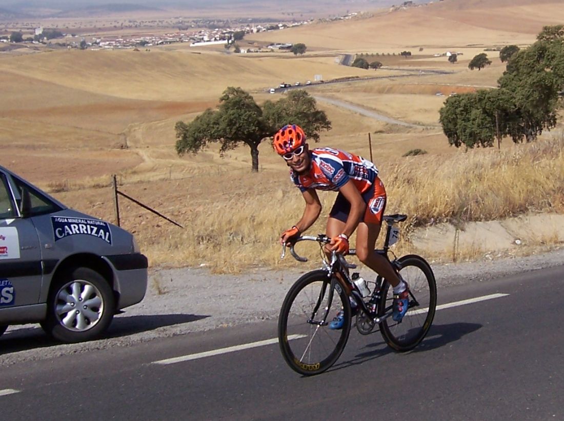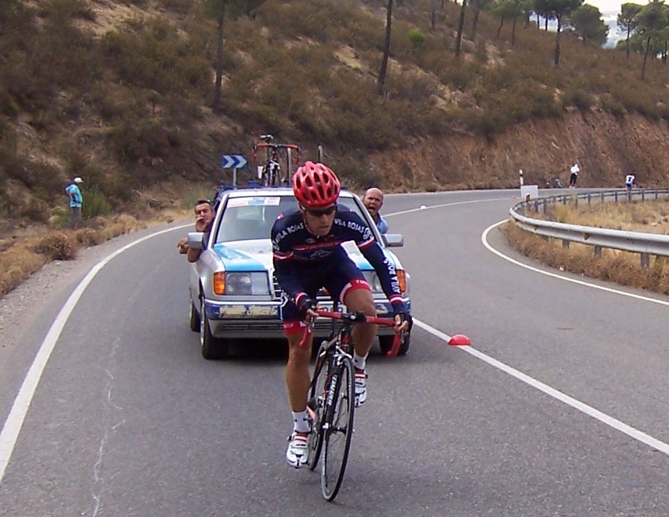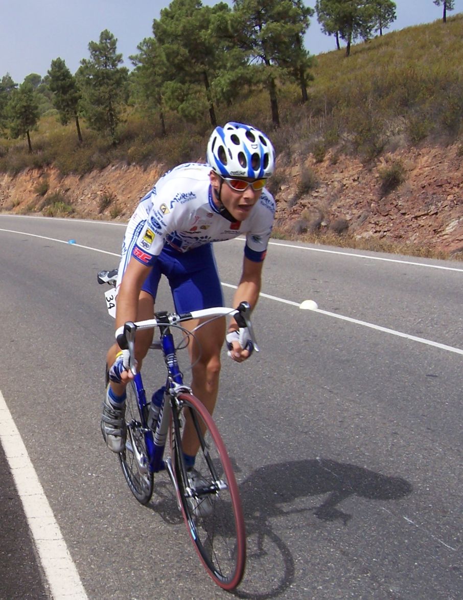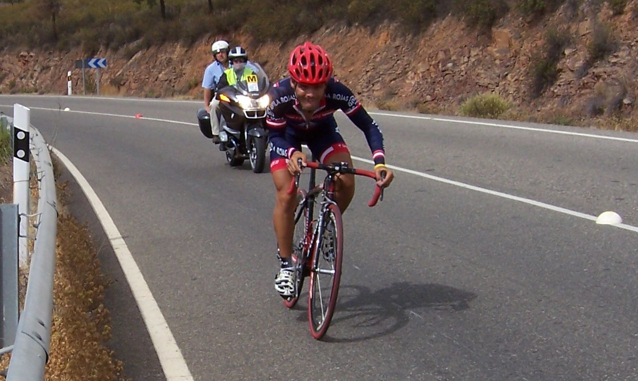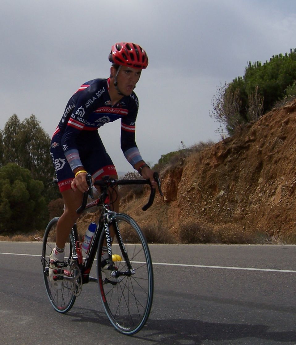 Mi director no me dejó relajarme en ese grupo, yo queria bajar al médico por que me dolía mucho el brazo pero tuve que arrancar, salté de alli y enganché con el segundo pelotón, cuando enganché llegamos a las subidas de la carretera de Santa Eufemia a El Viso, allí salte y me metí en otro corte de 5 o 6, nos pusimos a tirar a bloque para perseguir al grupo de 26 que quedaba en cabeza.