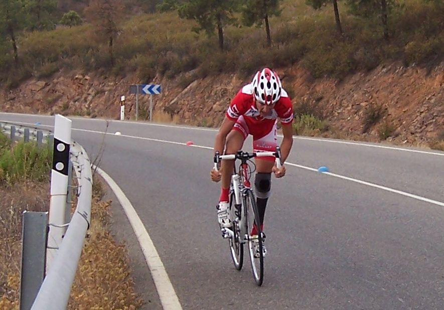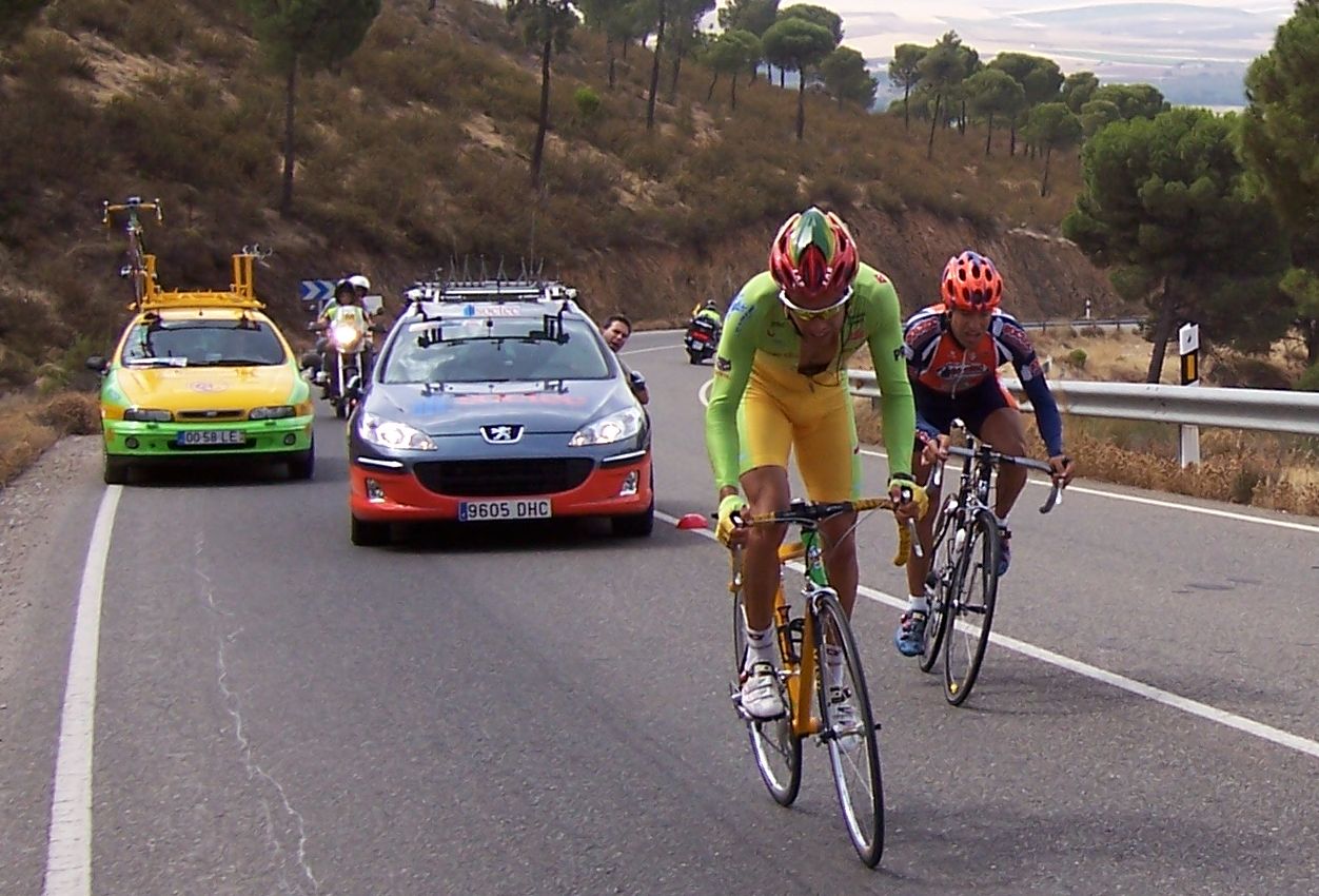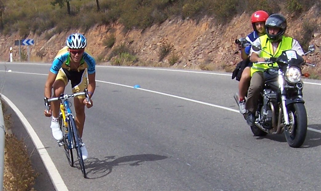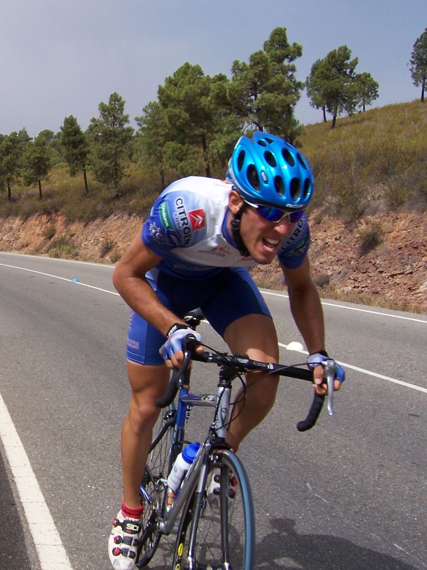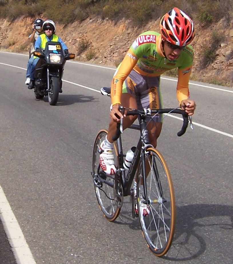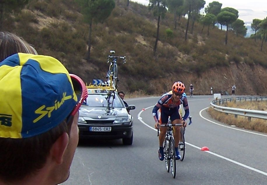 Mi director no me dejó relajarme en ese grupo, yo queria bajar al médico por que me dolía mucho el brazo pero tuve que arrancar, salté de alli y enganché con el segundo pelotón, cuando enganché llegamos a las subidas de la carretera de Santa Eufemia a El Viso, allí salte y me metí en otro corte de 5 o 6, nos pusimos a tirar a bloque para perseguir al grupo de 26 que quedaba en cabeza.