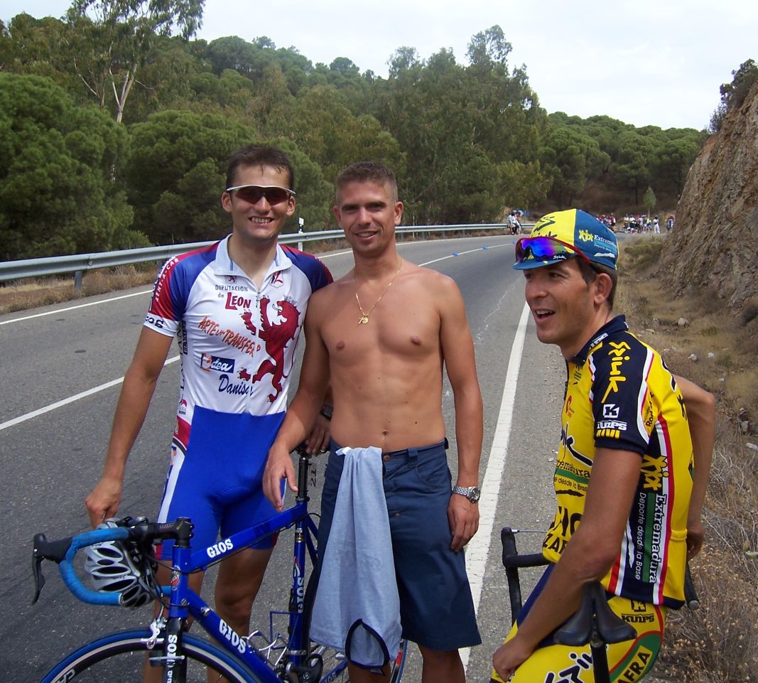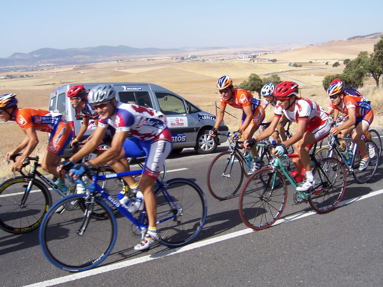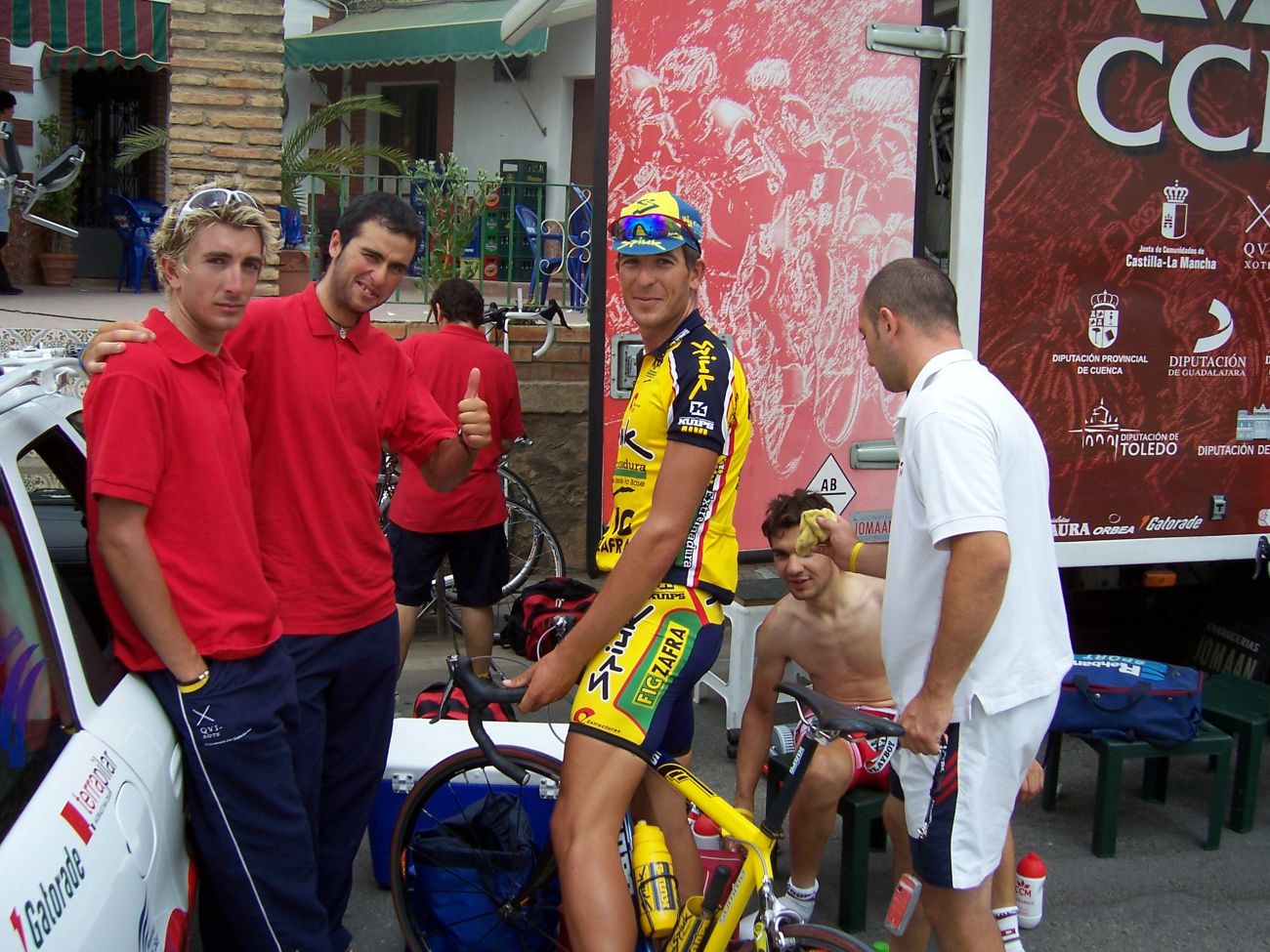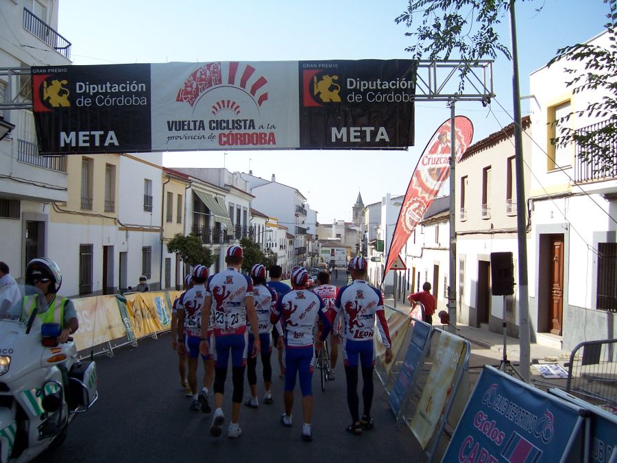 Ibamos medio parados perdiendo minutos con la cabeza por que hacia mucho calor y nadie tenia ganas de tirar hasta que vinieron unos portugueses que empezaron a arrancar y tal, se reavivó la cosa y llegamos a 8 minutos a Pozoblanco el grupito, que se incrementó a 10, eso si, por supuesto que esprintaron y que ganó un portugues el sprint de la Grupeta. Cuando llegué a meta fue lo peor, el calor empezó a abrasarme las heridas, un dolor...pensé en no salir al dia siguiente. Delanté llegaron 23 a sprint, Lucas Haedo entró el primero en la curva arriesgando, pilló un bordillo que le chafó la rueda y Marichalar le ganó el sprint, Lucas segundo.