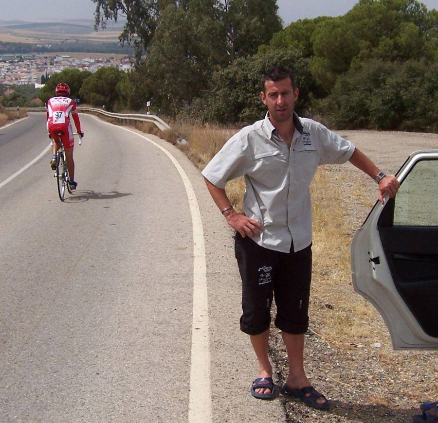Poco tenía yo que pinchar y cortar en esta etapa, medio jodido, sin nada que hacer en la general.. intentar hacerlo lo mejor posible por que es un puerto que lo he subido muchas veces entrenando y hace ilusión subirlo en la Vuelta a Córdoba. Sali como regulando y cuando llegué a lo duro me puse a apretar de pies pero tuve que sentarme a mitad de lo duro porque no llegaba asi hasta arriba, hasta que llegué al tramo donde estaban Arenas y curro que me animaron y volví a ponerme depies a apretar hasta que acabó lo duro del 10%, que asfixia ahí, otra vez sentado y otra vez a ponerme de pies para hacer el ultimo sprint hasta meta y donde peor lo pasé fue cuando pare despues de Meta, uyuyuy que agonía alli arriba parado, uyuy uf uf,que sofocón, me canso de pensarlo.