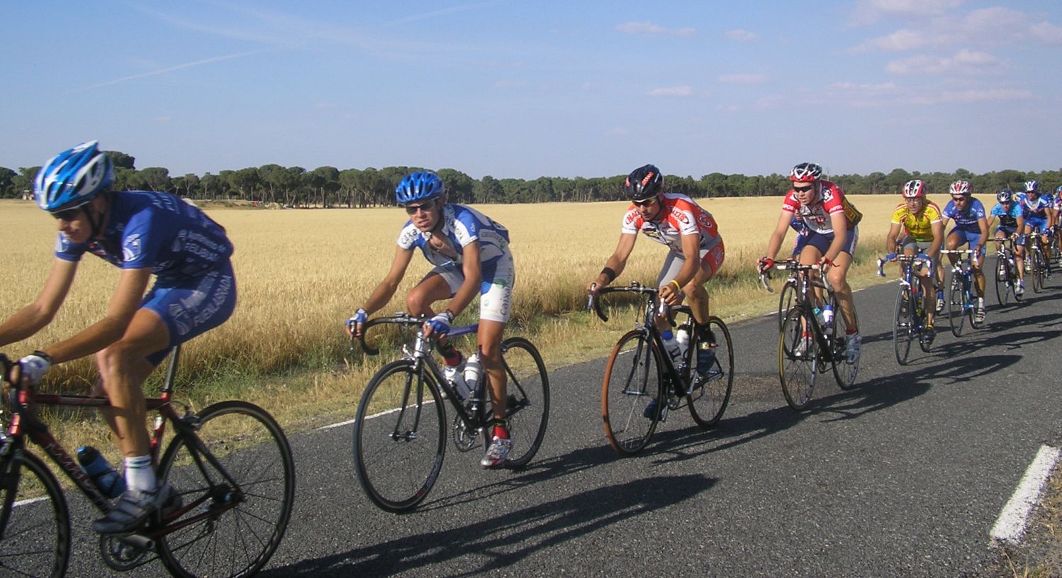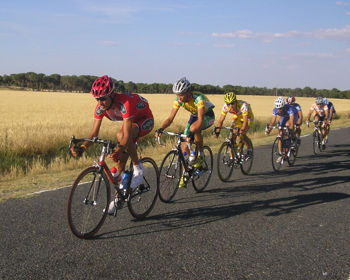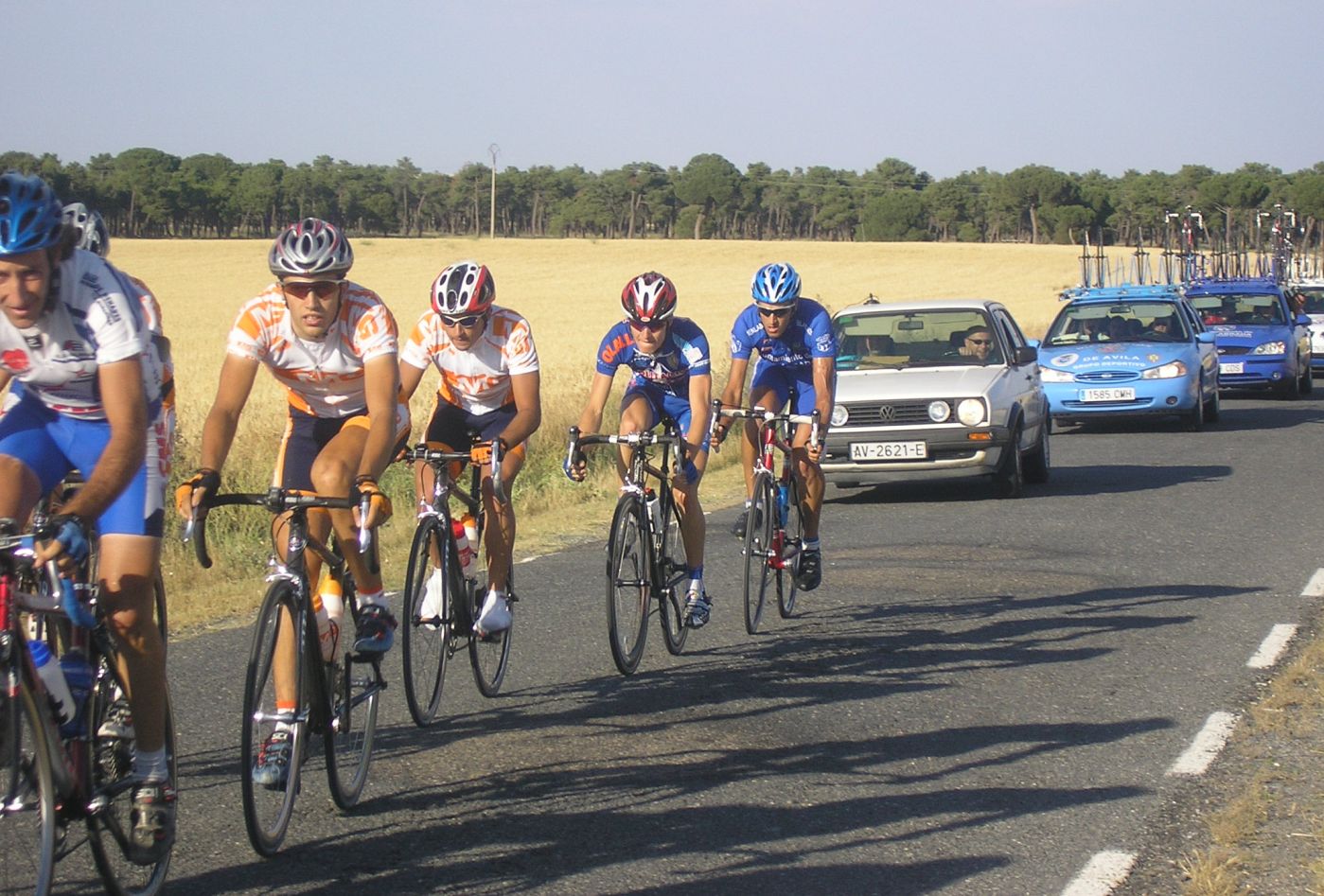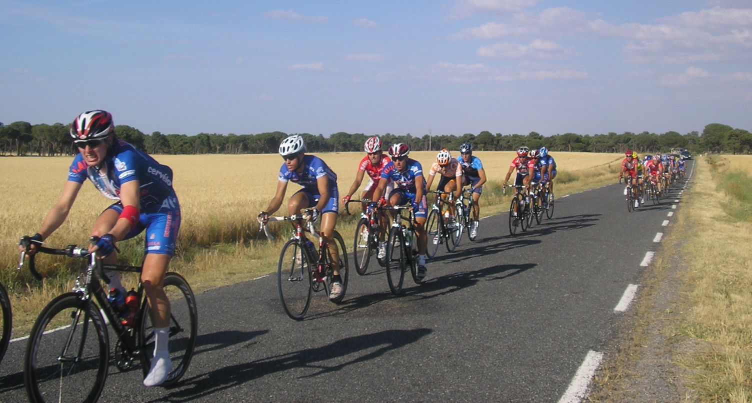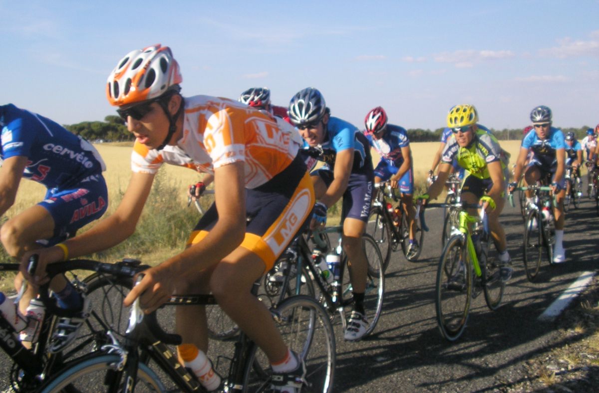Los Diputación de Avila arrancando en el pelotón, que no se corta.