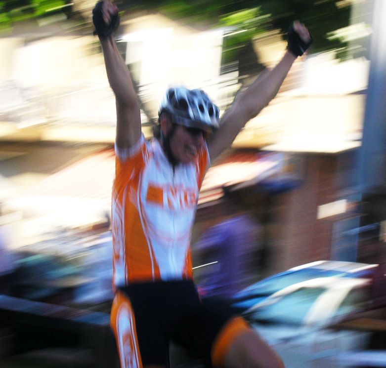 Entrada en meta de Paco Alonso, ganando el sprint del pelotón.