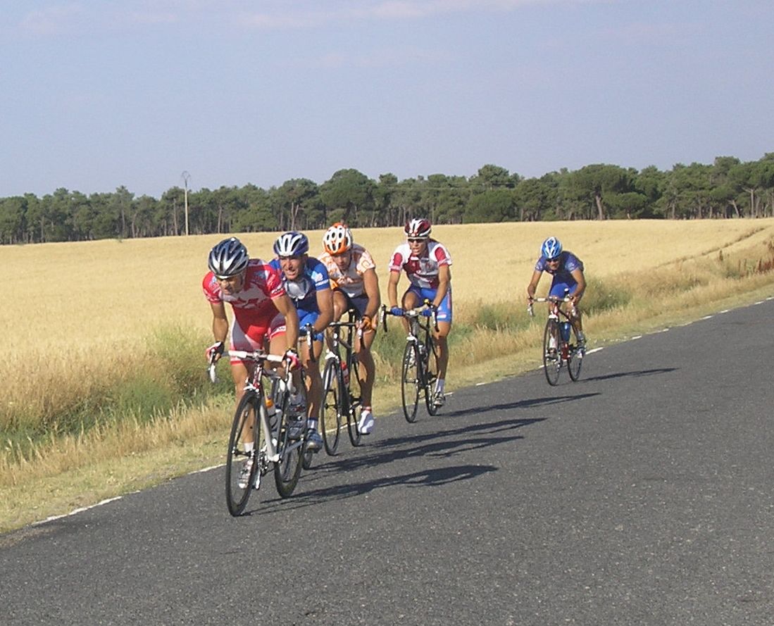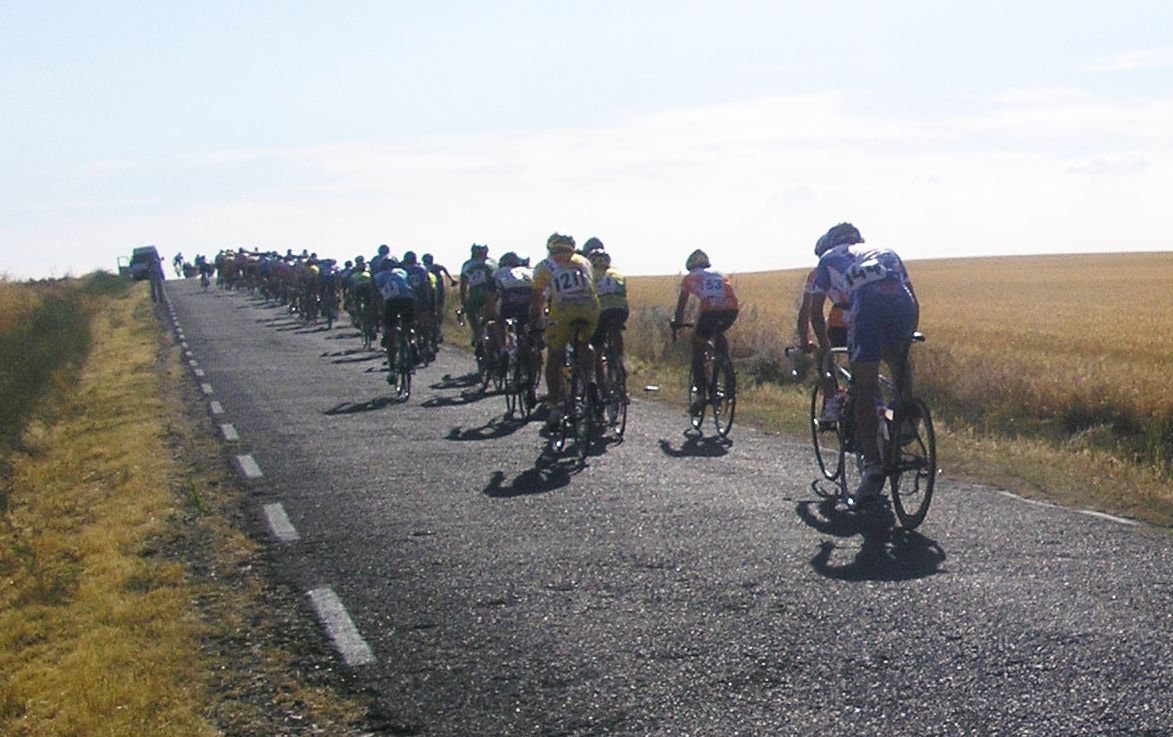 Pelotón en el cruce de Noharre, parece que salió bastante gente.