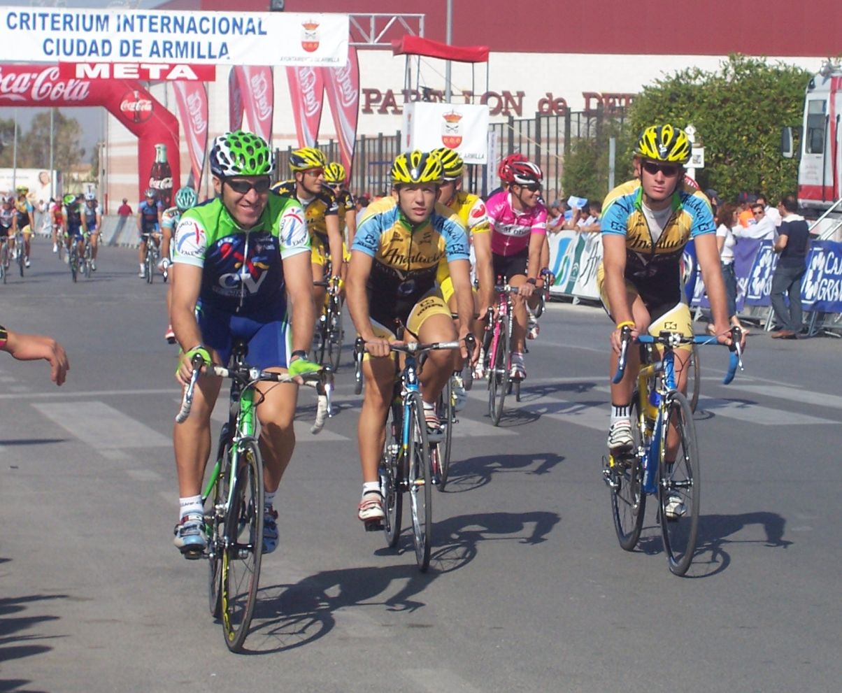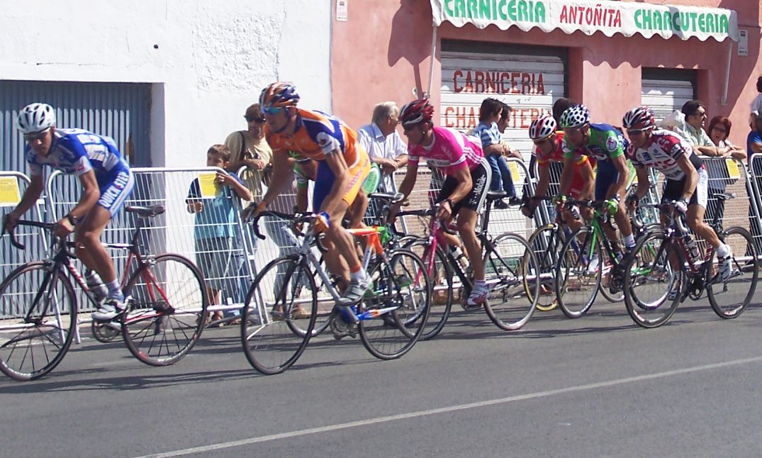 ![]() Por la derecha tenemos al Curro, va tan fácil que hasta va riendose, el gordo al lado, el Abeja controlando con la mirada, los Quesada y Beltran. |