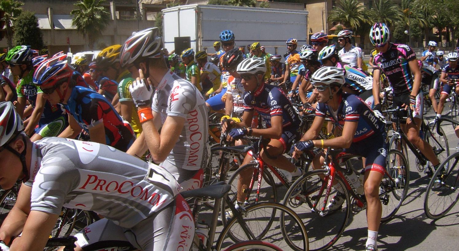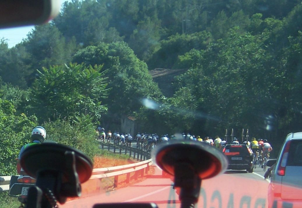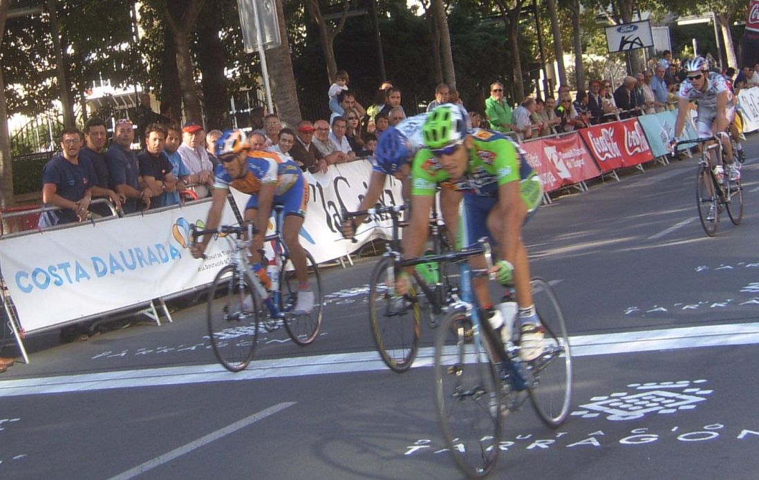 Iban los Procom tirando a por la escapada por los planos esos dirección Salou, iban cerrando cuneta a bloque para que no enganchara el Lider, se caen ellos en la etapa anterior y se les espera pero se cae el lider aqui y ellos a muerte por delante, ibamos unos 35 tios, pillaron la escapada a 10 kms de meta, y seguian tirando para preparar el Sprint, a 3 kms de meta, yo iba con toda la forzona de ir a rueda y arranqué en un repechito que tenia una rotonda, abri hueco, me dijeron por el pinganillo que a bloque a ver, pasé el puente de la curva de la entrada a Salou por Cambrils y a poco mas de 1 km de meta me pillaron, pero ya me meti ahi en la fila de los que disputan el sprint, se veian ahi ostias y demas.