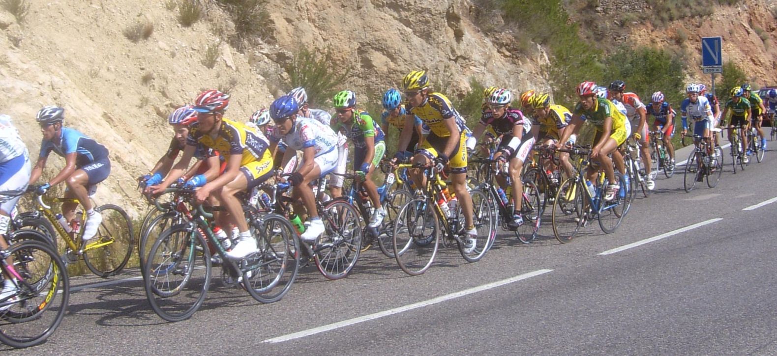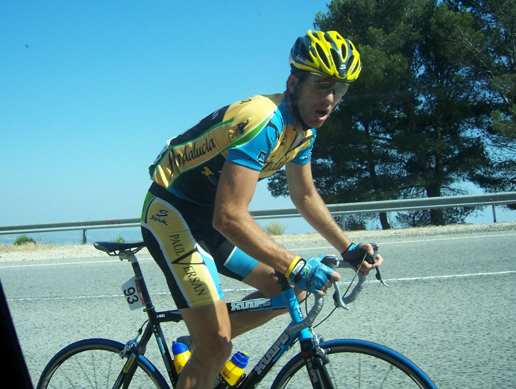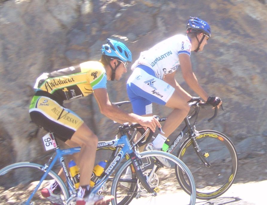 Atacó el Procom que llevaba el amarillo de salida, tuvo que salir el propio Cariñena a por el, ya una vez cogido en el km 1 nos pusimos todo el equipo a tirar, primero tiraban Hidalgo y Francés, Cecilio y yo ibamos colaborando y Rosendo y Sergio a rueda, dejamos irse al Helio, al Motriles, al Dani.. menuda cabalgata se pegó el Helio por delante en las autovias previas al puerto de primera.
