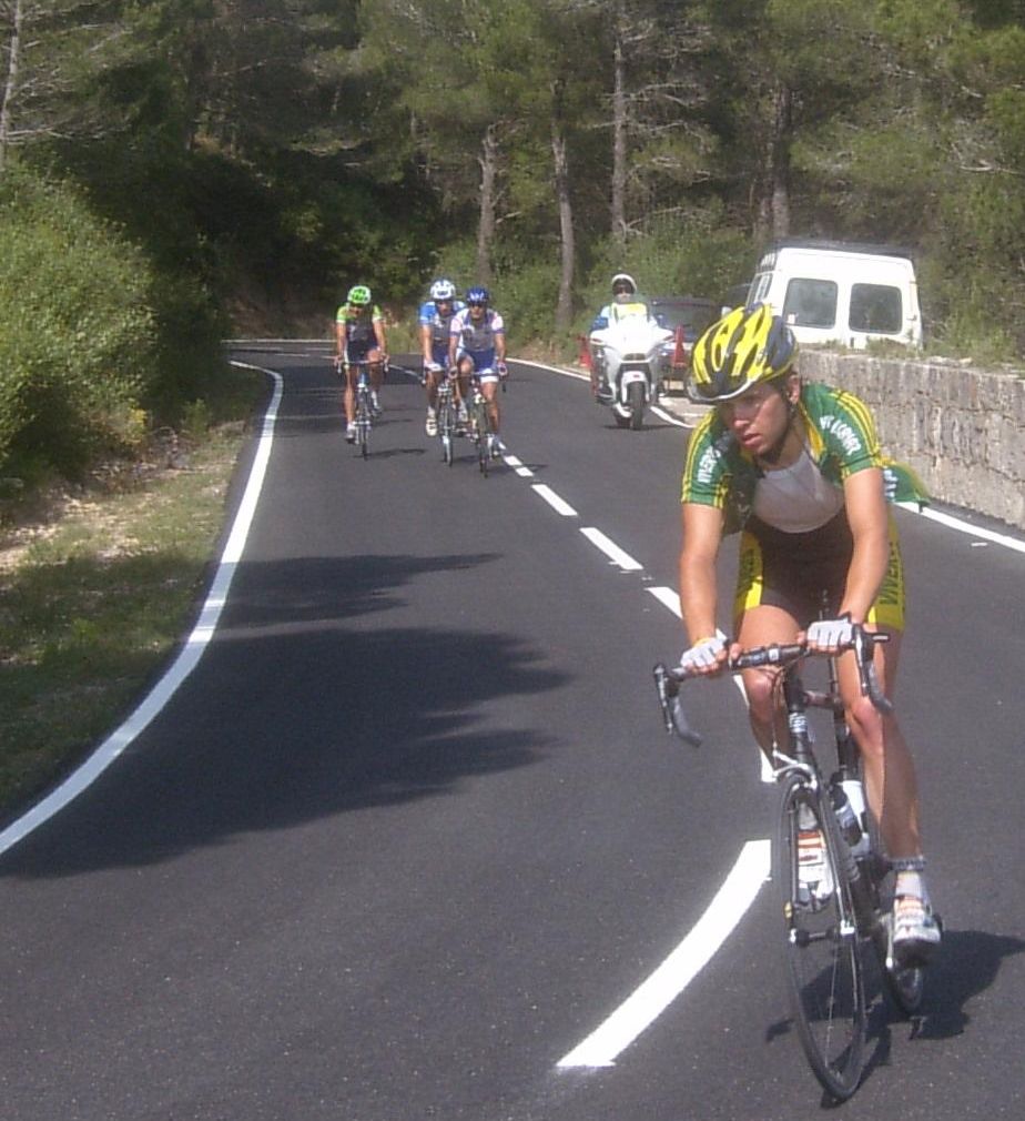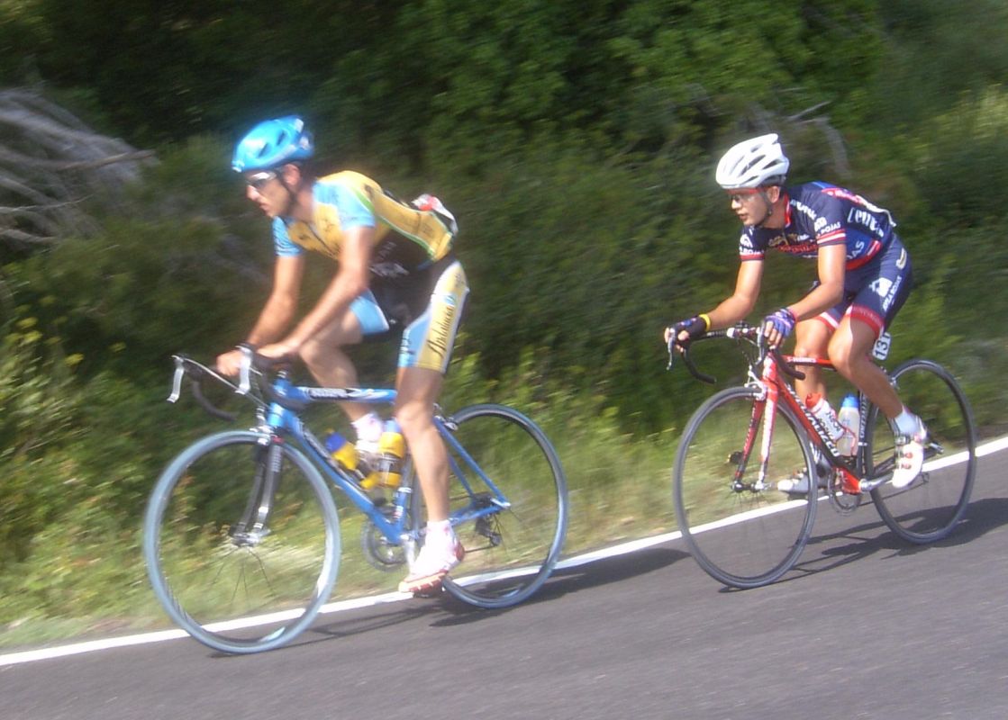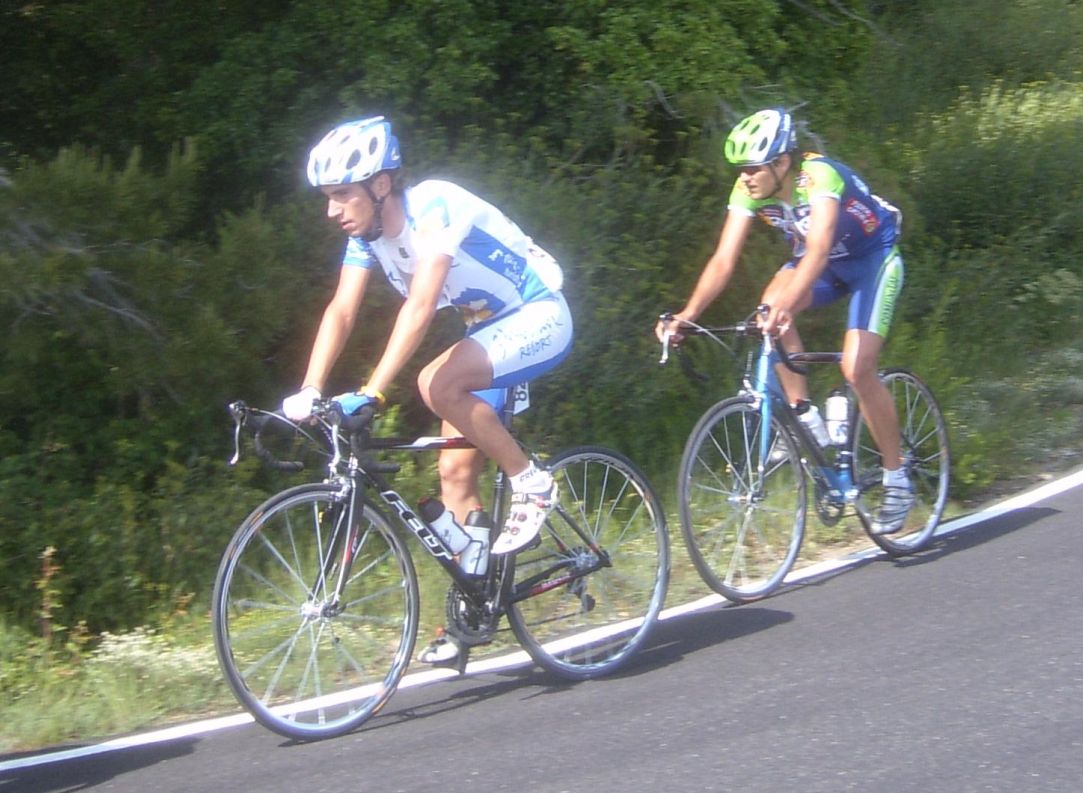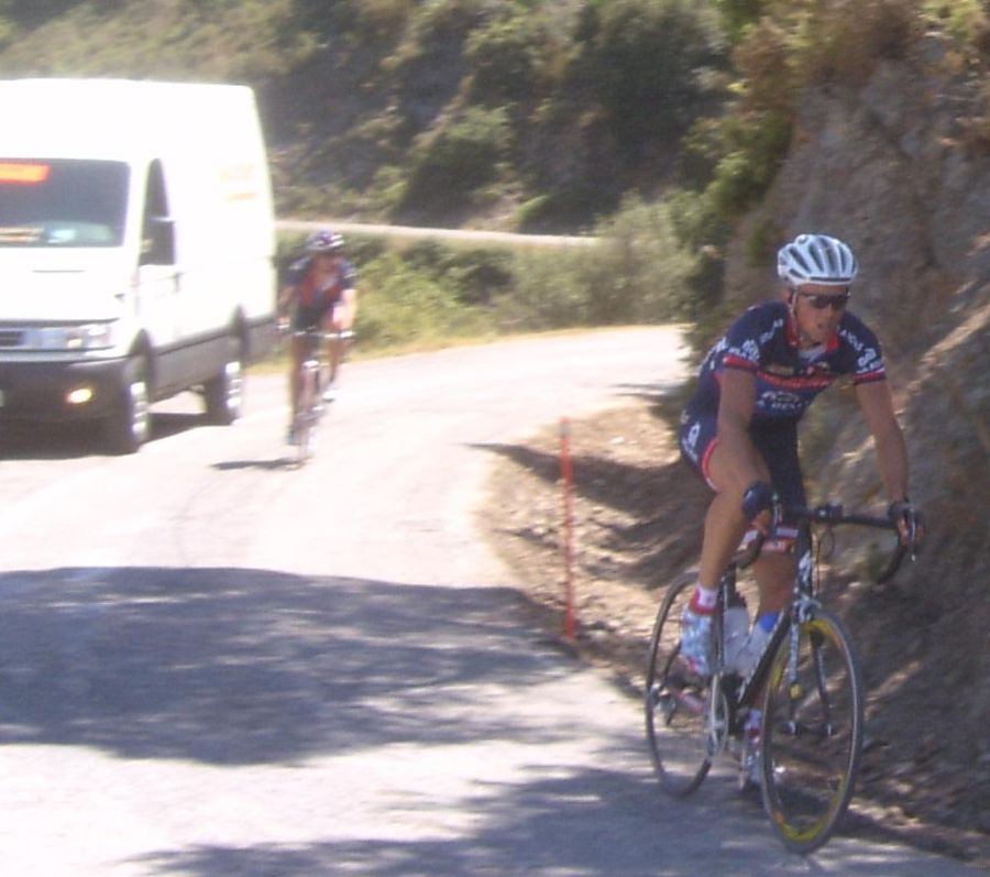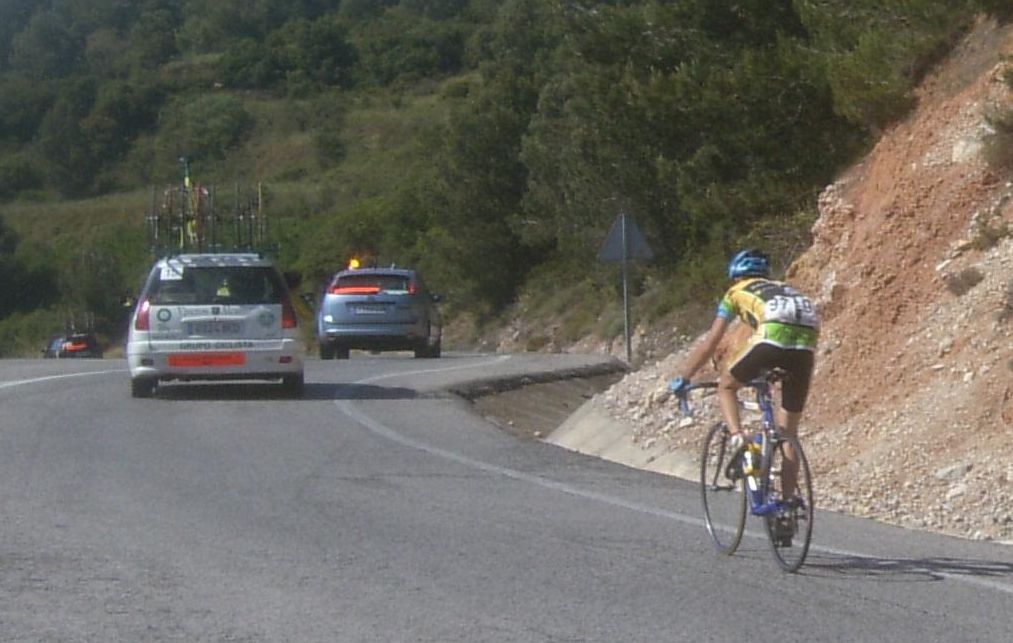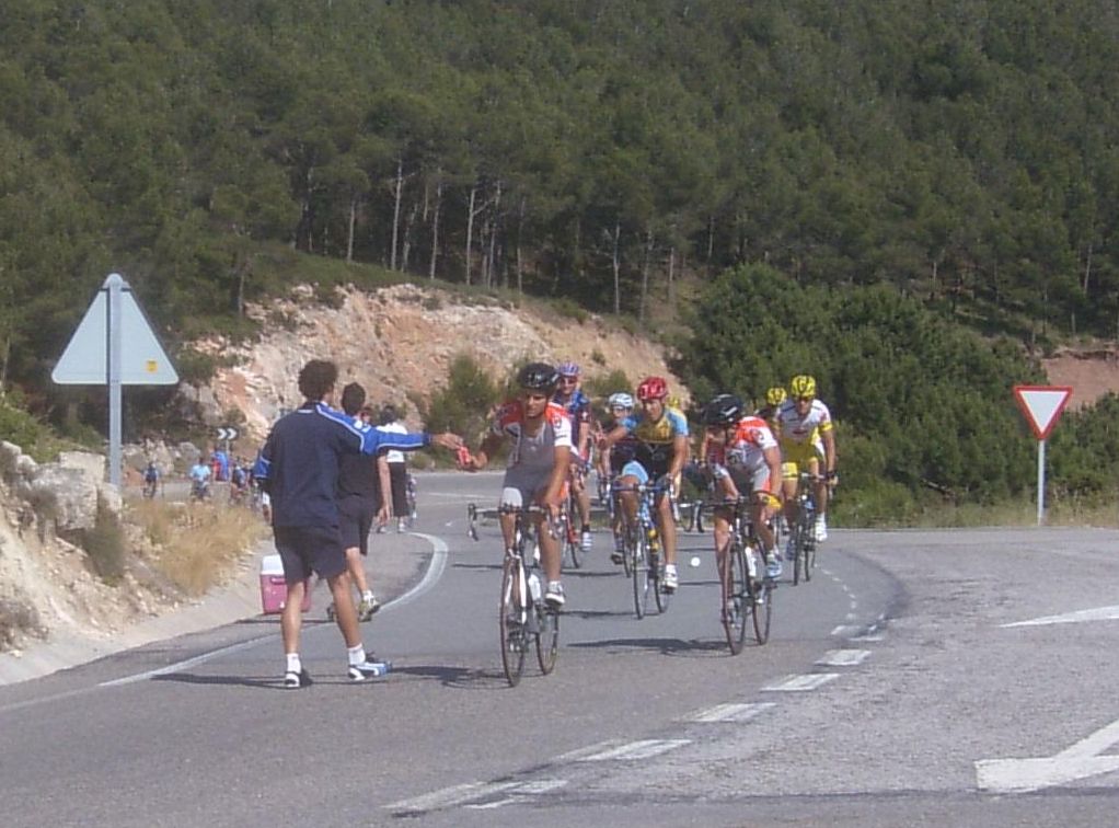 El Giro a la izquierda era lo peor que te podias encontrar, un látigo ahi y un tarugon, la manera mas horrible de empezar un puerto, después de un descenso, yo es que fue verlo y desanimarme, me vine abajo, que te metan eso ahi a balon parado nada mas empezar una vuelta.. me puse a sufrir ahi pero a 1 km de coronar, ya en un falso llano, me abri, me quedaba ya muy poco que sufrir y el resto de la etapa era plana pero no conocia el puerto, tuve el momento malo ahi y se jodió todo, después del descenso teniamos ahi al pelotón pero eramos pocos, el Parra, un Garcamps, un Maxxis y yo, no pudimos enganchar, asi que esperamos a la grupeta.