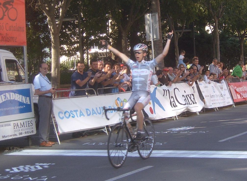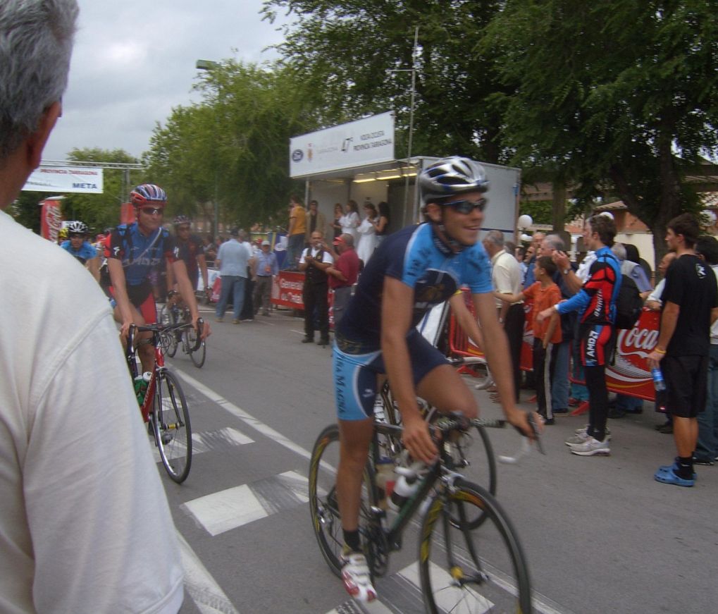 A 5 kms de meta habia un repecho que se subió por la cuneta, Rosendo y yo ibamos sufriendo ya ahi en la cola pero Peña nos dijo que teniamos que aguantar ahi por cojones, pasamos el repecho y ya pude seguir tirando algo, mas, el último relevo ya lo di en el puente a 1 km de meta y me abri del todo que no pude ni coger rueda del último, entré cortado a 20 segundos pero lo habiamos conseguido, habiamos ganado la Vuelta Tarragona con Cariñena.