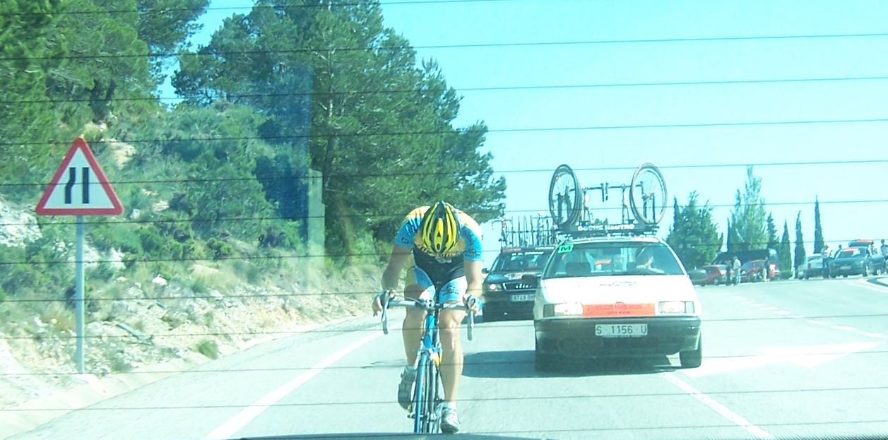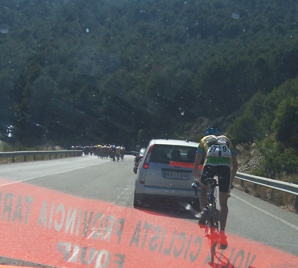 Se bajaba el puerto por una carretera muy estrechita, me pilló Cecilio bajando, que el baja muy rápido, intentamos engnachar pero no habia manera, ya me deje caer bajando, me puse a comer que con la etapa de la mañana iba a pillar un mierdón. Llegué a abajo y ya me enganchó una grupeta con el Motriles que iban a fuego, quedaban 40 kms de plano hasta meta con aire de cara, perdimos 8 minutos. Cariñena mantuvo el Lider.