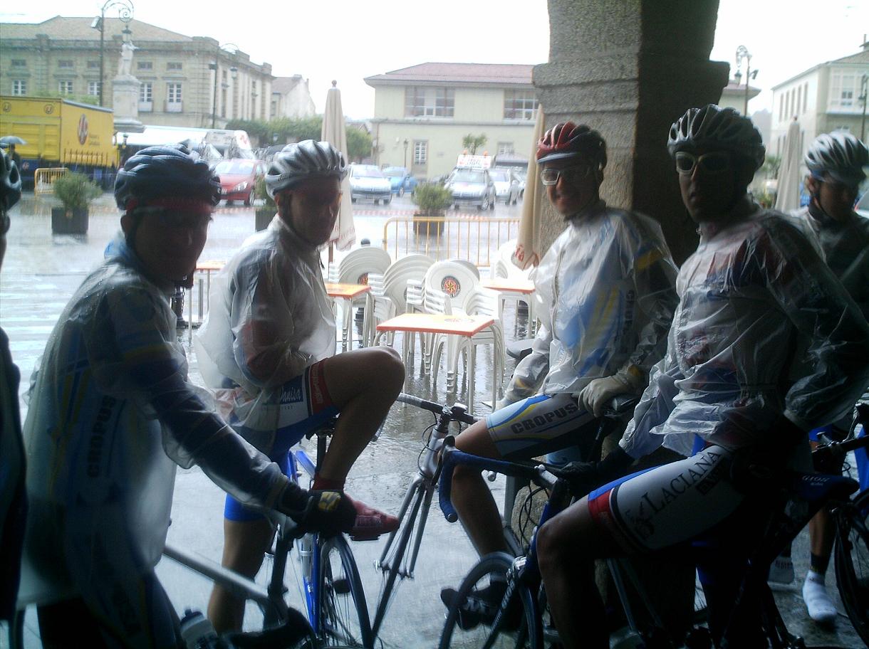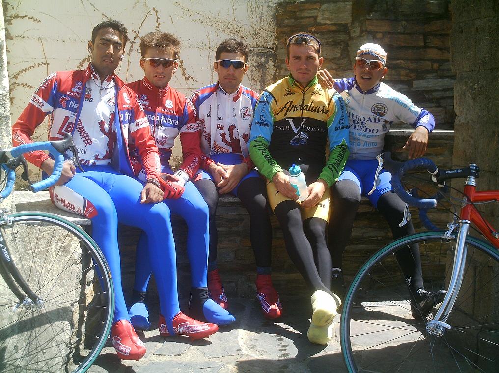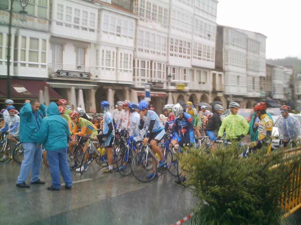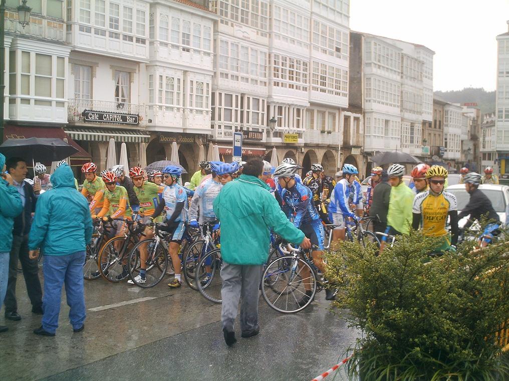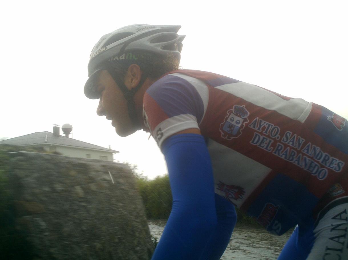Con la presencia de Miticos como el Morci, el Culebro, Redondo, Fernando Herrero, Rubi... se dio la salida en Betanzos, una carrera durisima de 160 kms, ex-copa España, todo para arriba para abajo, hacia un frio de la ostia, asi que yo iba a ir bien por estadistica... con frio voy bien pero paso mucha miseria, me entran las tiriteras esas que... Me meti en todos los cortes que se hacian hasta que me fui con Redondo, me llevaba el cabron engatillado a rueda, coronamos el primer puerto puntuable y pase segundo, el iba tan sobrao que no pedia ni relevo pero aun asi no pude ni ganarle la montaña, llegamos a otra MEta Volante los dos solos y tambien me la gano, hasta uqe llego Fernando Herrero con 2 Libertis mas , se liaron a ostias y me dejaron cortado en un grupo de 20 que venia detras...