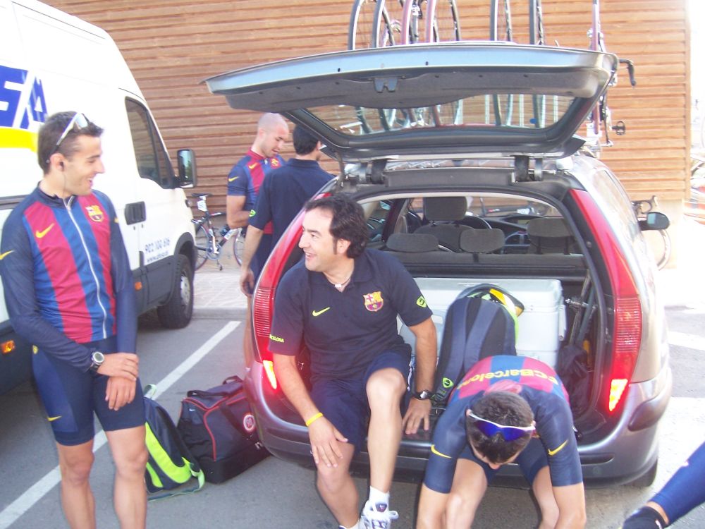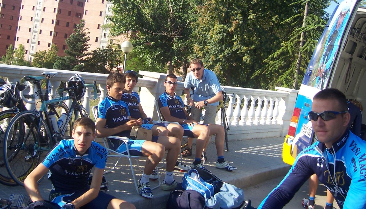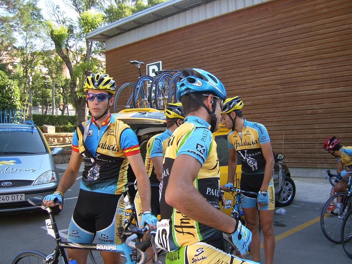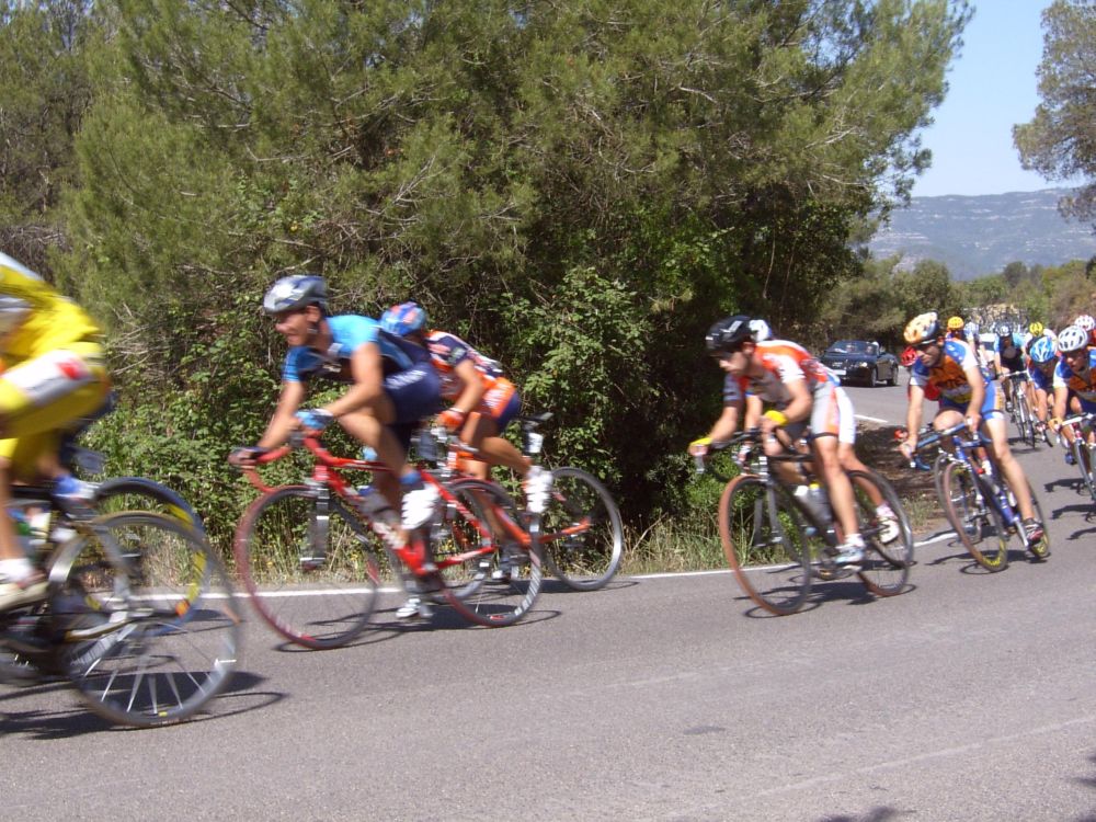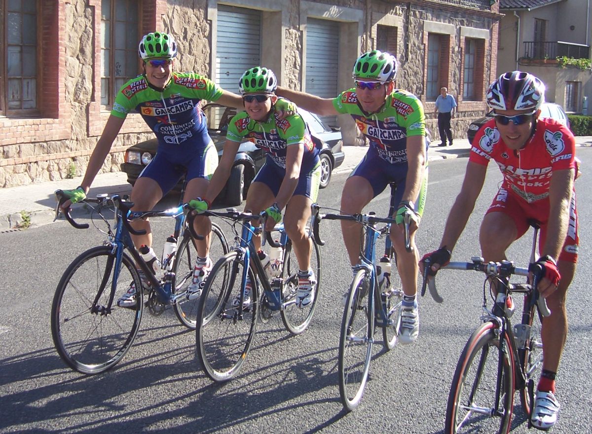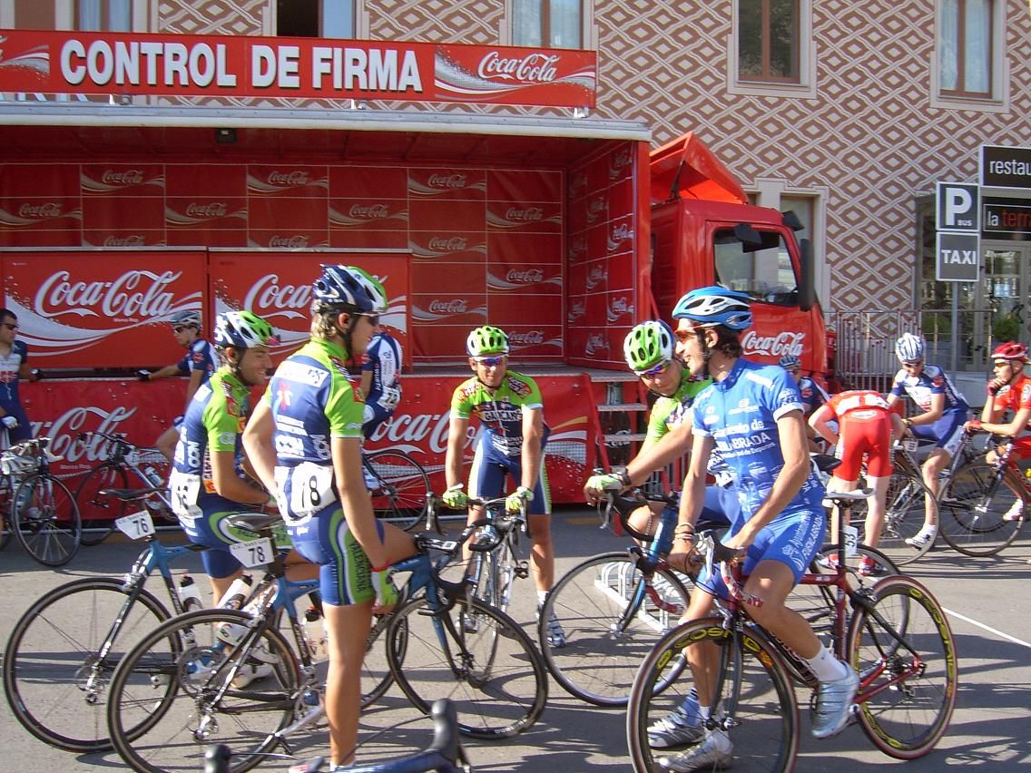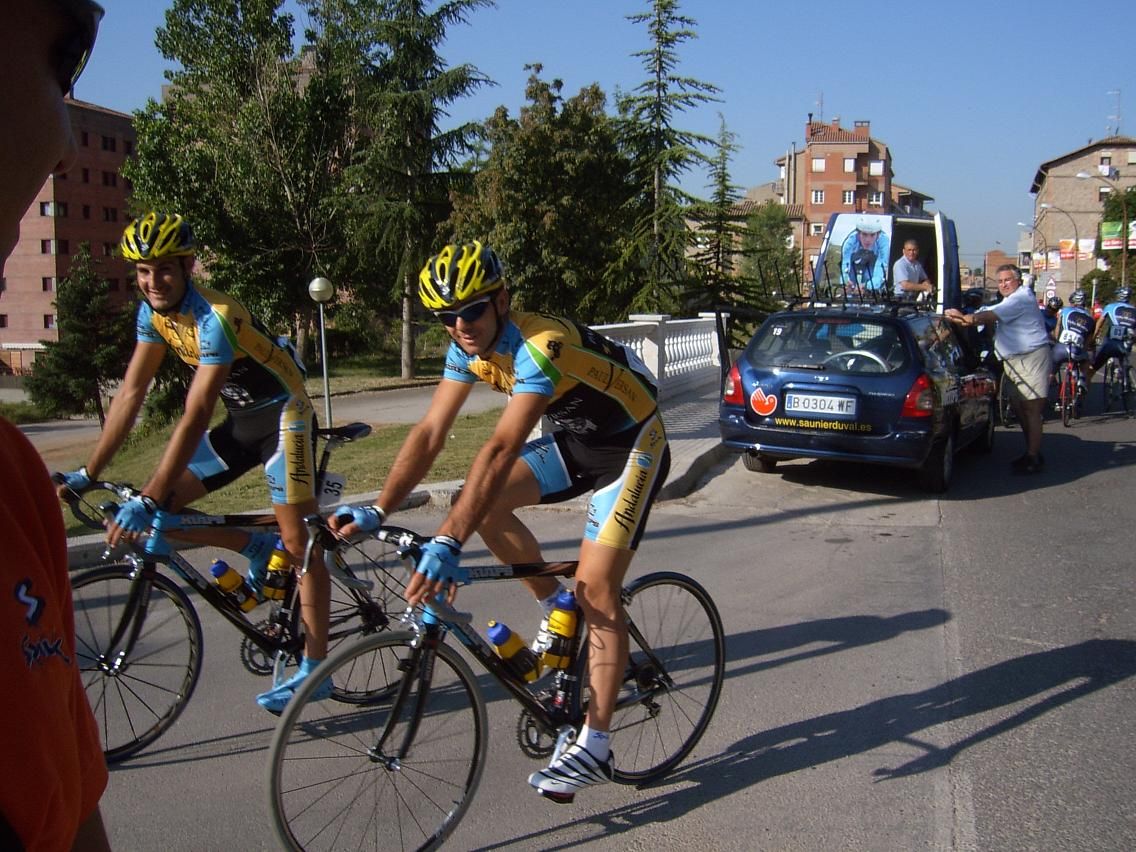 La mayoria era terreno plano descendente pero también habia subidas que se hacian duras por el calor, me mandaron tirar pero di dos relevos y otra vez me mandaron parar, asi que a rueda. Hasta que llegamos al segundo puerto del dia, donde se pusieron Rosendo y Cariñena a tensar, en ese puerto hacia muchisimo calor pero se iba bien ahi metido a rueda. Coronamos y la gente iba ya cansada, se habian eliminado algunos Barcelonas de los que tiraban, yo me puse a tirar bajando con Pol.