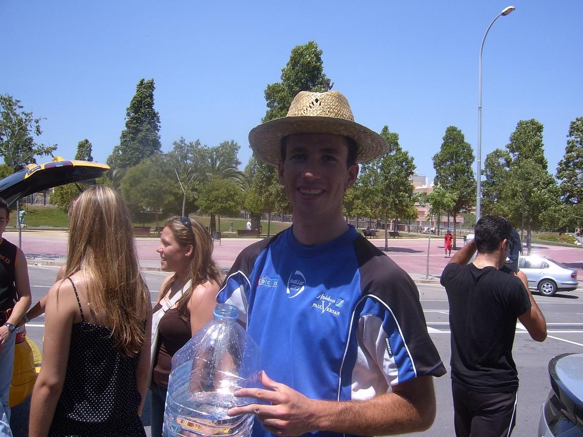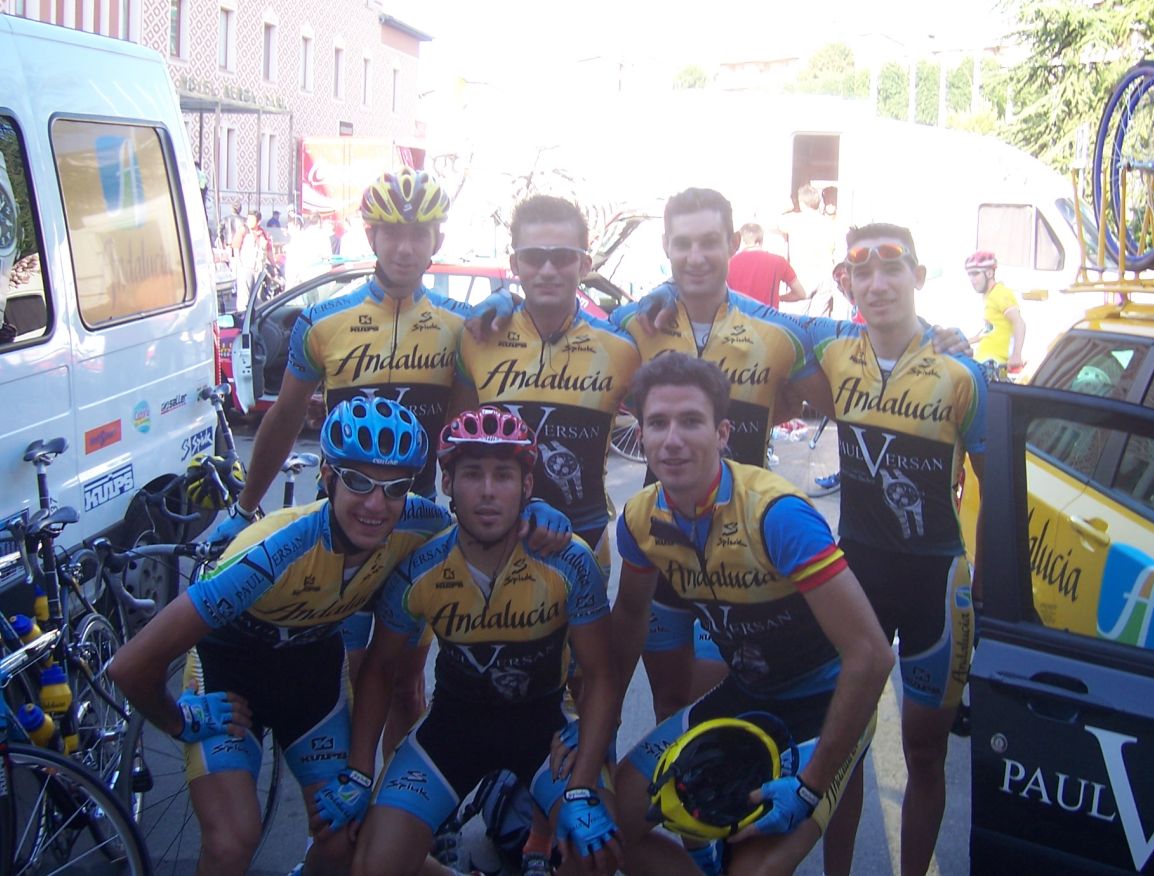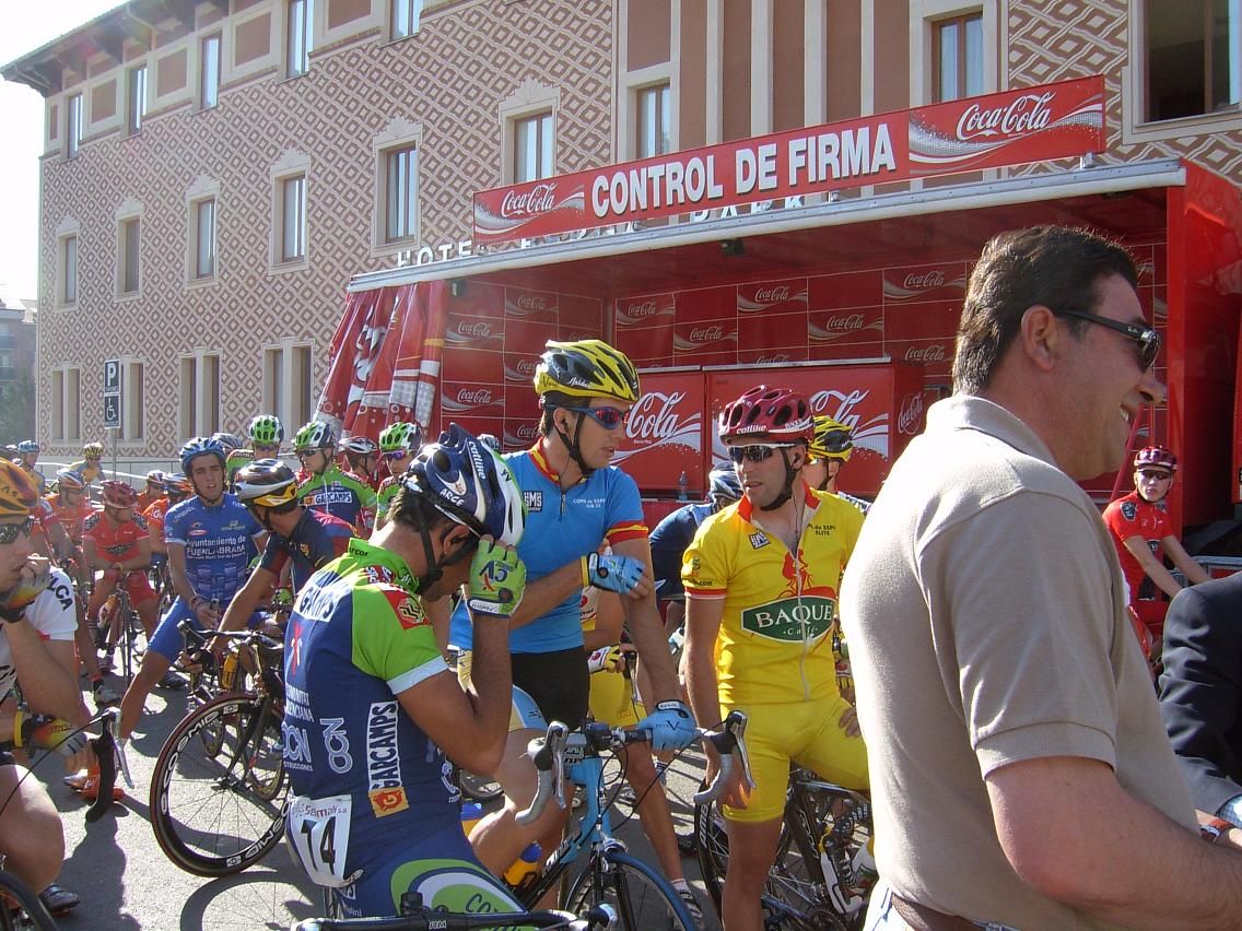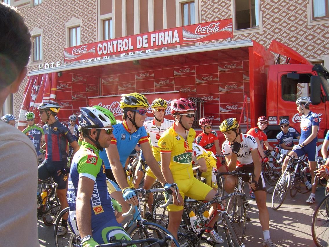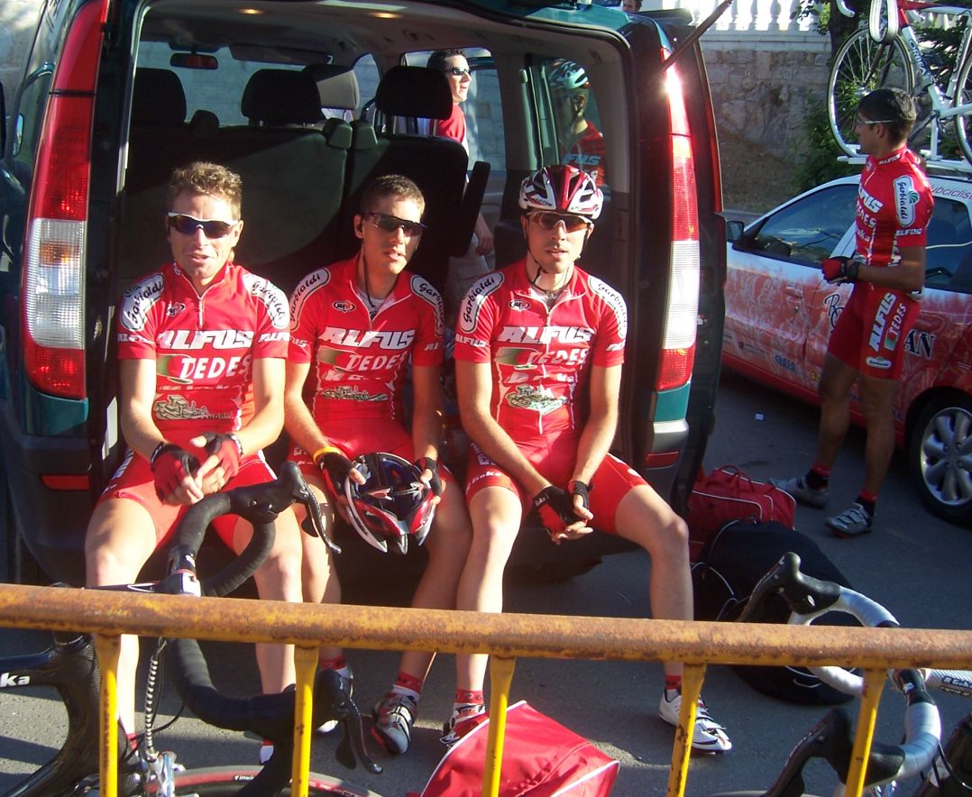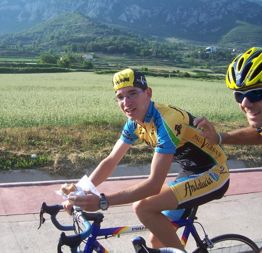 La mayoria era terreno plano descendente pero también habia subidas que se hacian duras por el calor, me mandaron tirar pero di dos relevos y otra vez me mandaron parar, asi que a rueda. Hasta que llegamos al segundo puerto del dia, donde se pusieron Rosendo y Cariñena a tensar, en ese puerto hacia muchisimo calor pero se iba bien ahi metido a rueda. Coronamos y la gente iba ya cansada, se habian eliminado algunos Barcelonas de los que tiraban, yo me puse a tirar bajando con Pol.