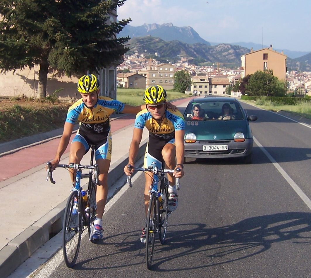 En el descenso hacia Berga nos pilló un grupo de 30 tios, nos juntamos entonces un total de 47 tios... casi mas gente alante que atras, no venia Cecilio, asi que me puse atras a rueda, que tiren otros, yo paso de tirar de tanta gente. Tiraban el Barcelona, el Fuenlabrada, Murcia.. iban muy deprisa, ibamos todos enfilados, yo iba a rueda pero iba asqueado, jodido, la ventaja iba por el minuto.