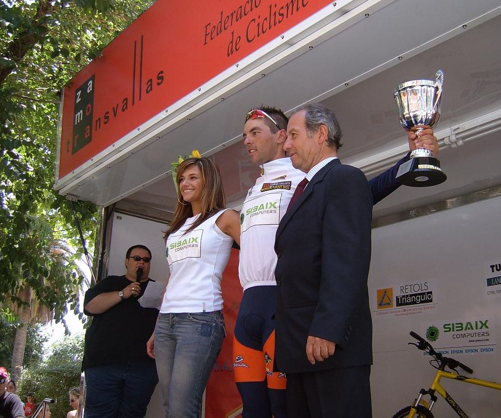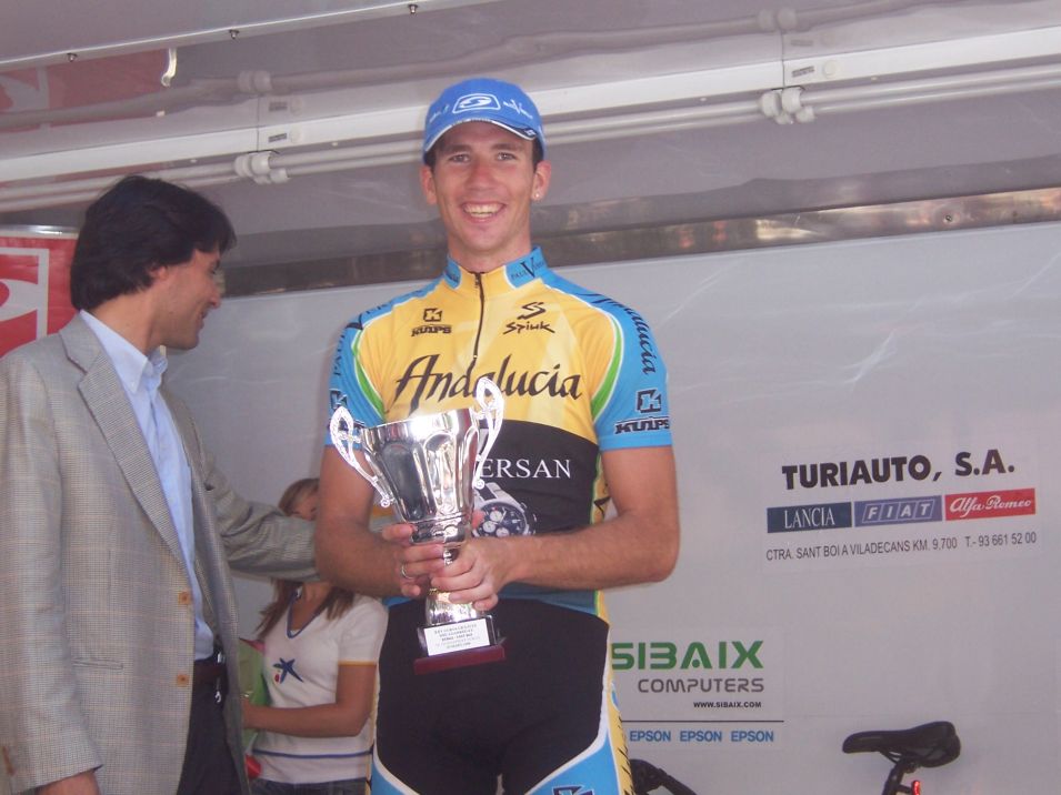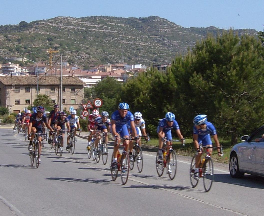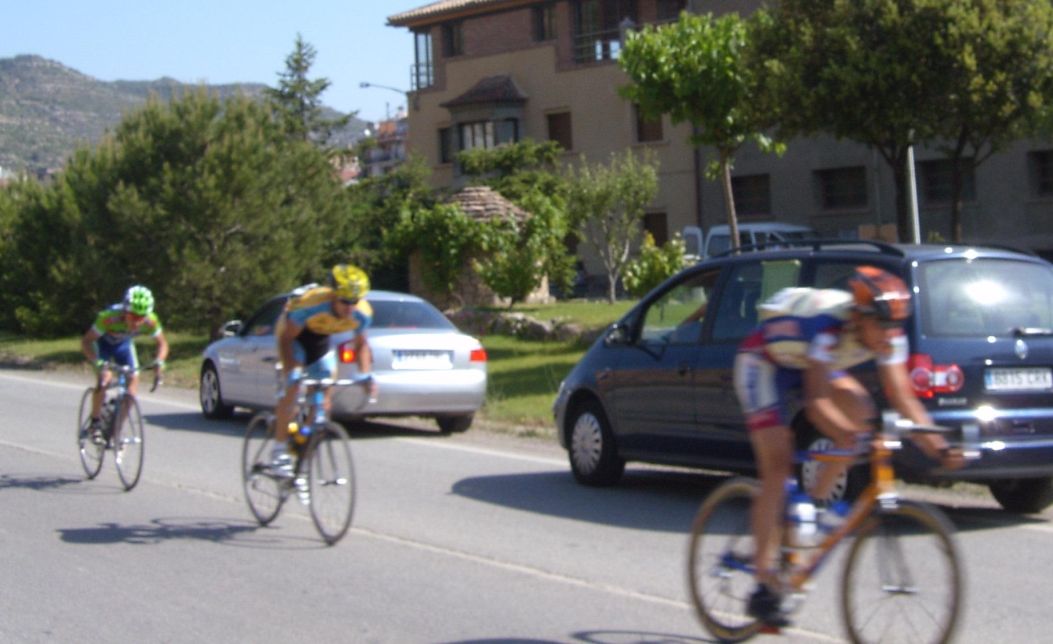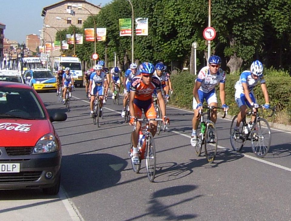 Después de la bajada inicial anduve metiendome en cortes hasta que ya en un pueblo hubo un látigo que nos fuimos 12 tios, justo donde empezaba el puerto, allí iba pasando Escolá con todas las ganas intentando que la escapada cogiese hueco, Alberdi también pasaba con fuerza. El puerto era tendido pero se hizo largo, a 1 km de coronar, Sergio Carrasco esprintó para la montaña pero Escolá. Alberdi y otro mas le pasaron por encima