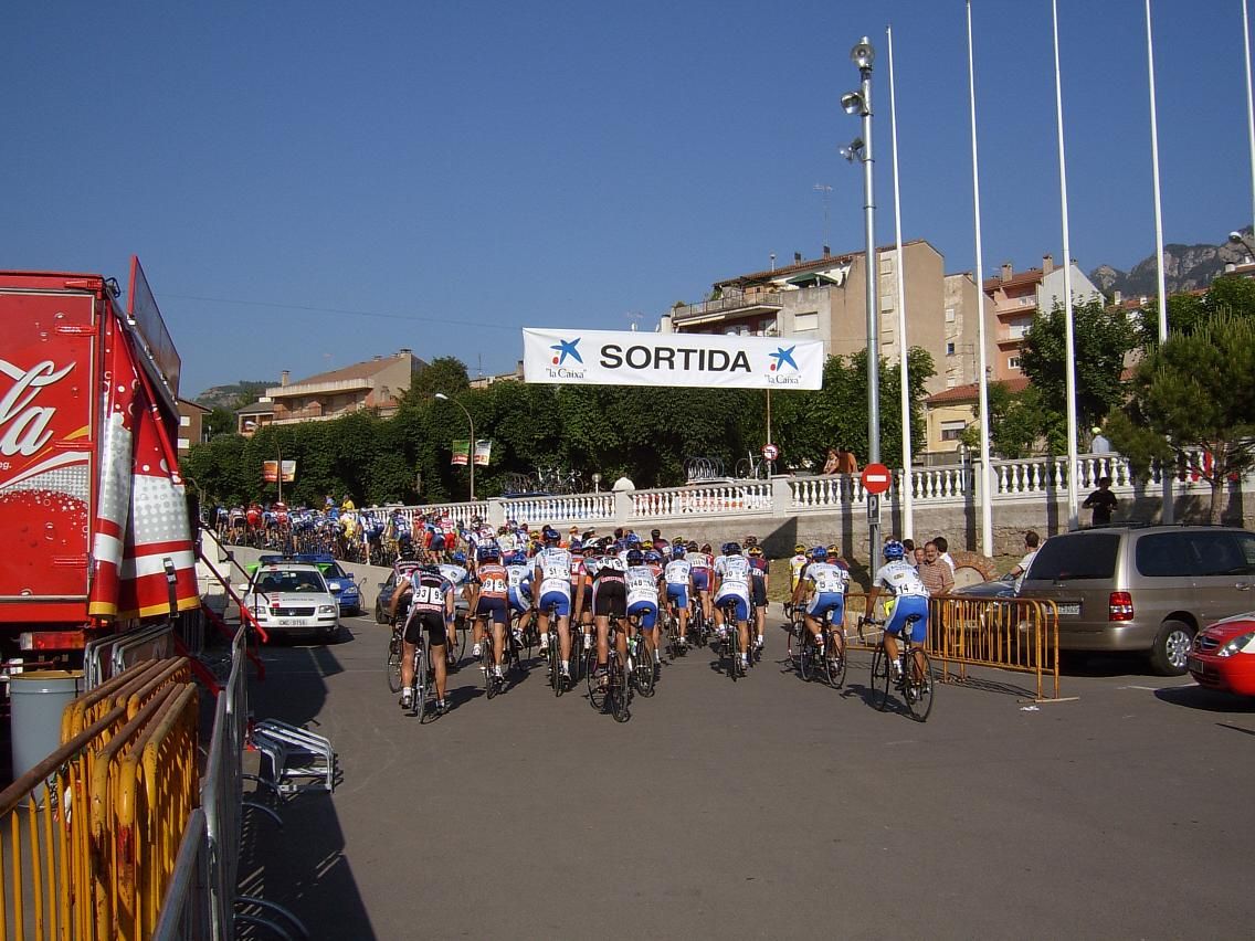 -Diegoweb, hoy es buen dia para llevarte la camara que hoy es de turismo, todo pa bajo!! decia Belda, es verdad, era todo pa bajo, salias de berga y sin dar pedales llegabas a Sant Boi, 180 kms. En realidad se hizo durisima, todo el dia a mil por hora con la carrera partida en dos grupos persiguiendose por alante y por detras enfilados a mil por hora con aire de cara.