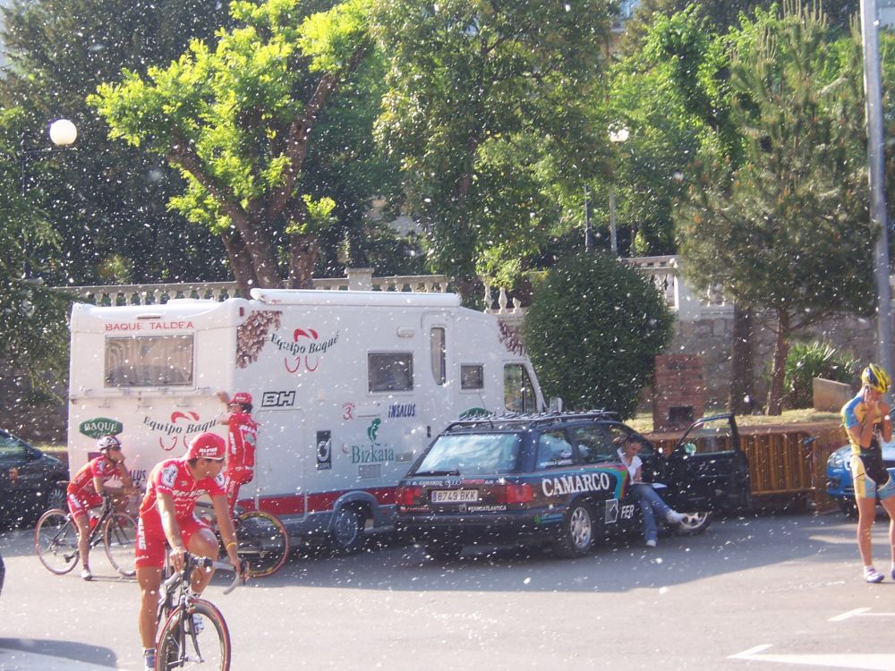 Baje a pillar agua al coche neutro por que los coches no estaban y hacia muchisimo calor, se habia quedado gente en el puerto.. y pronto llegamos al siguiente puerto, el ultimo de la jornada, donde ya se abrió gas. Un látigo alli enorme que con el calor hizo extragos, yo me abri, cogi rueda de un Maxis hasta que me reventó a 1 km de coronar, y subi a mi ritmo hasta que coroné solo con el pelotón pisandome los talones.