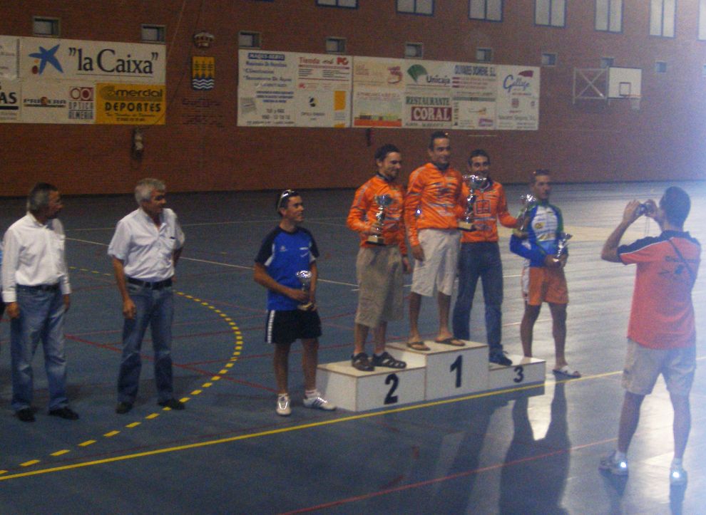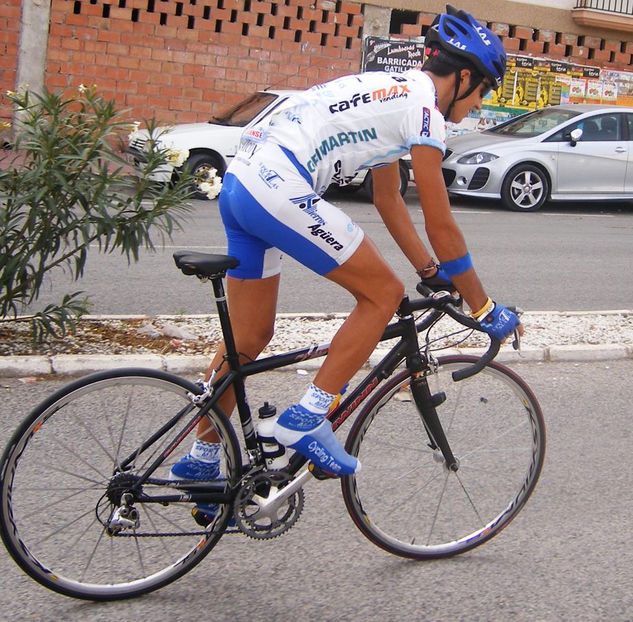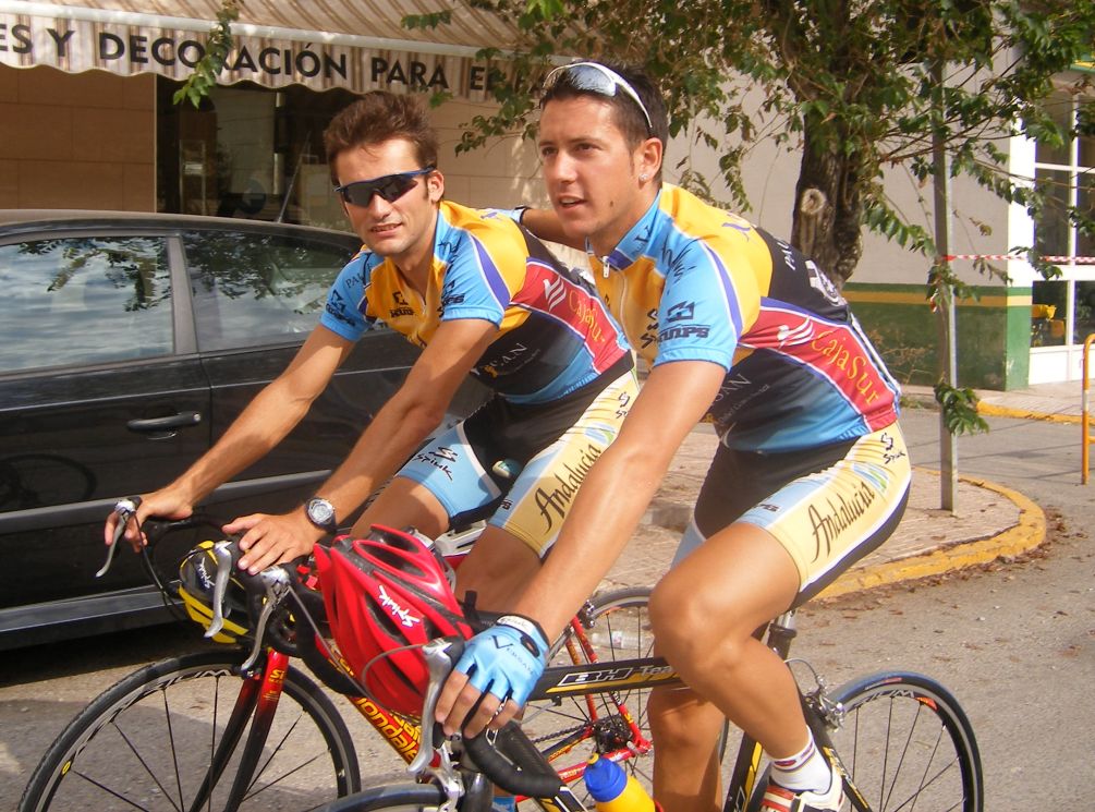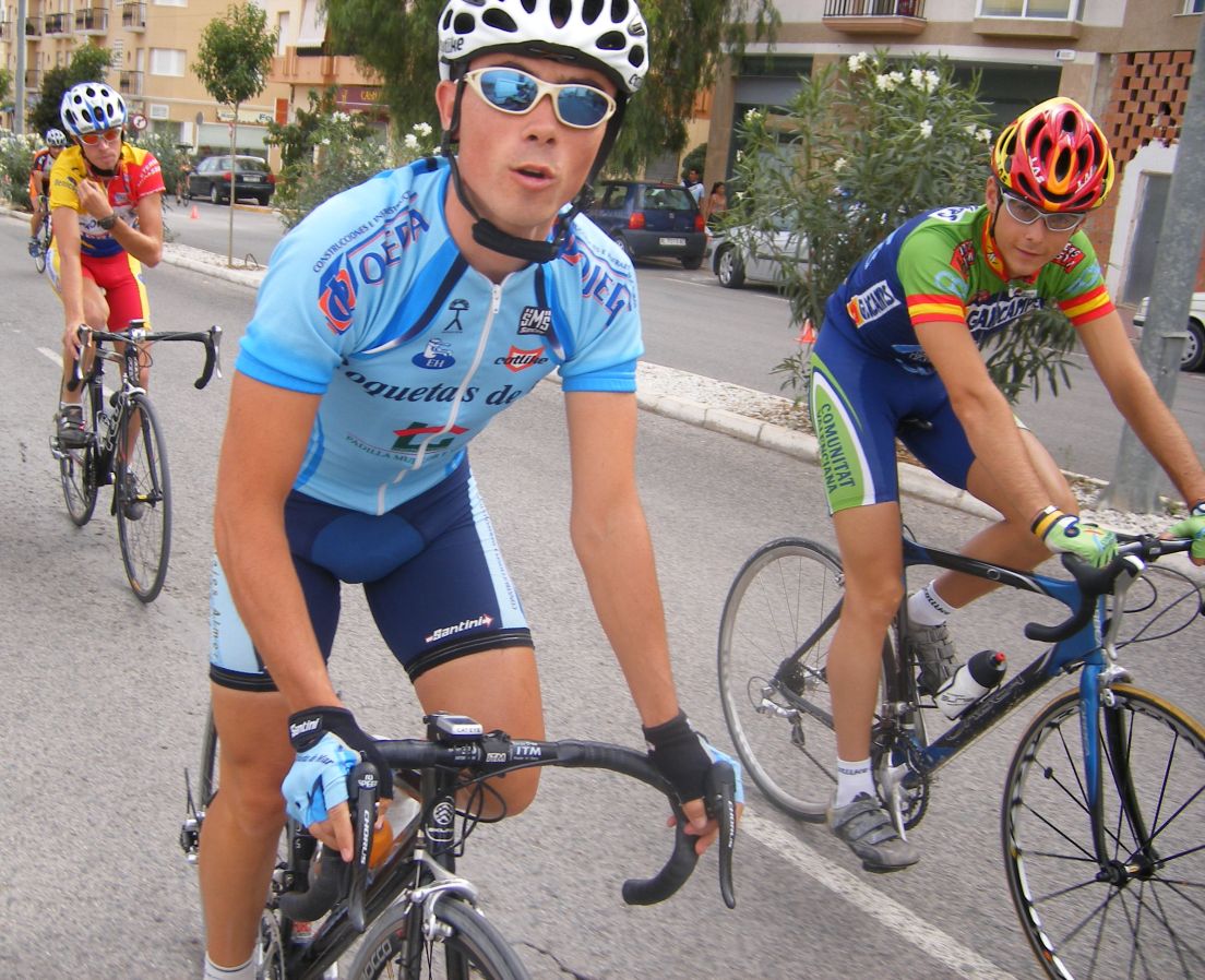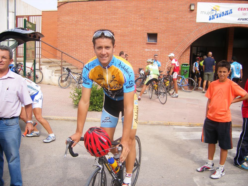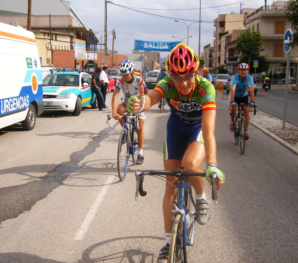 Llegamos a la zona del repecho duro, una pared por ahi de esas, y después el descenso sinuoso por una carretera muy estrecha, con zonas de graba... barrillo. En ese terreno Chacón, conocedor del terreno, atacó a Roldán y se distanció, llegó a la subida final con ventaja sobre Roldán, pero Jose Luis enroscó el plato y le pilló a 1 km de meta, le arrancó y le ganó, como hizo en la Cresta del Gallo, convirtiendose en el Verdugo de Chacón. Yo entré en el grupo donde iba esprintando con el Rasquilla.
