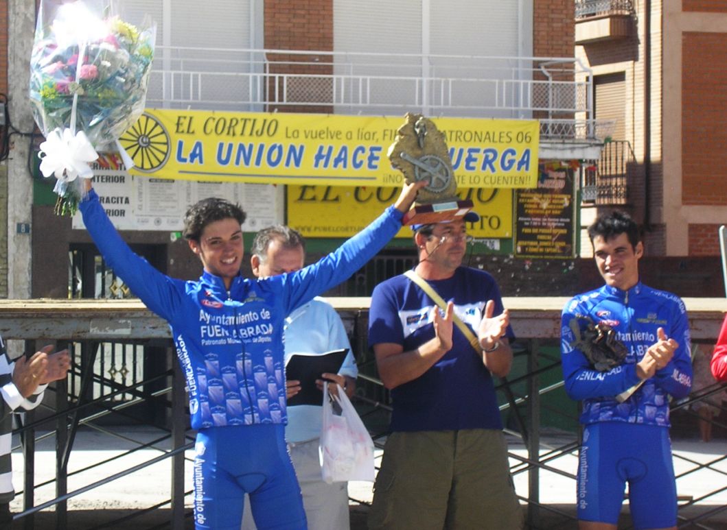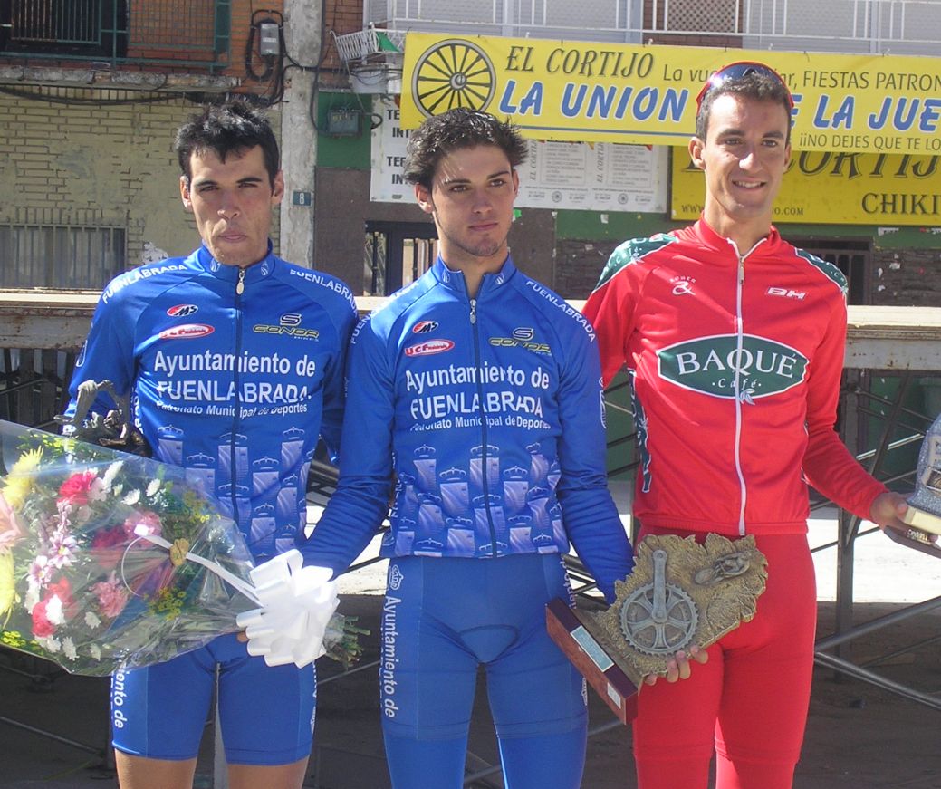 Victor celebrando la victoria en el podio de Fuenlabrada con el mítico Morci, segundo.