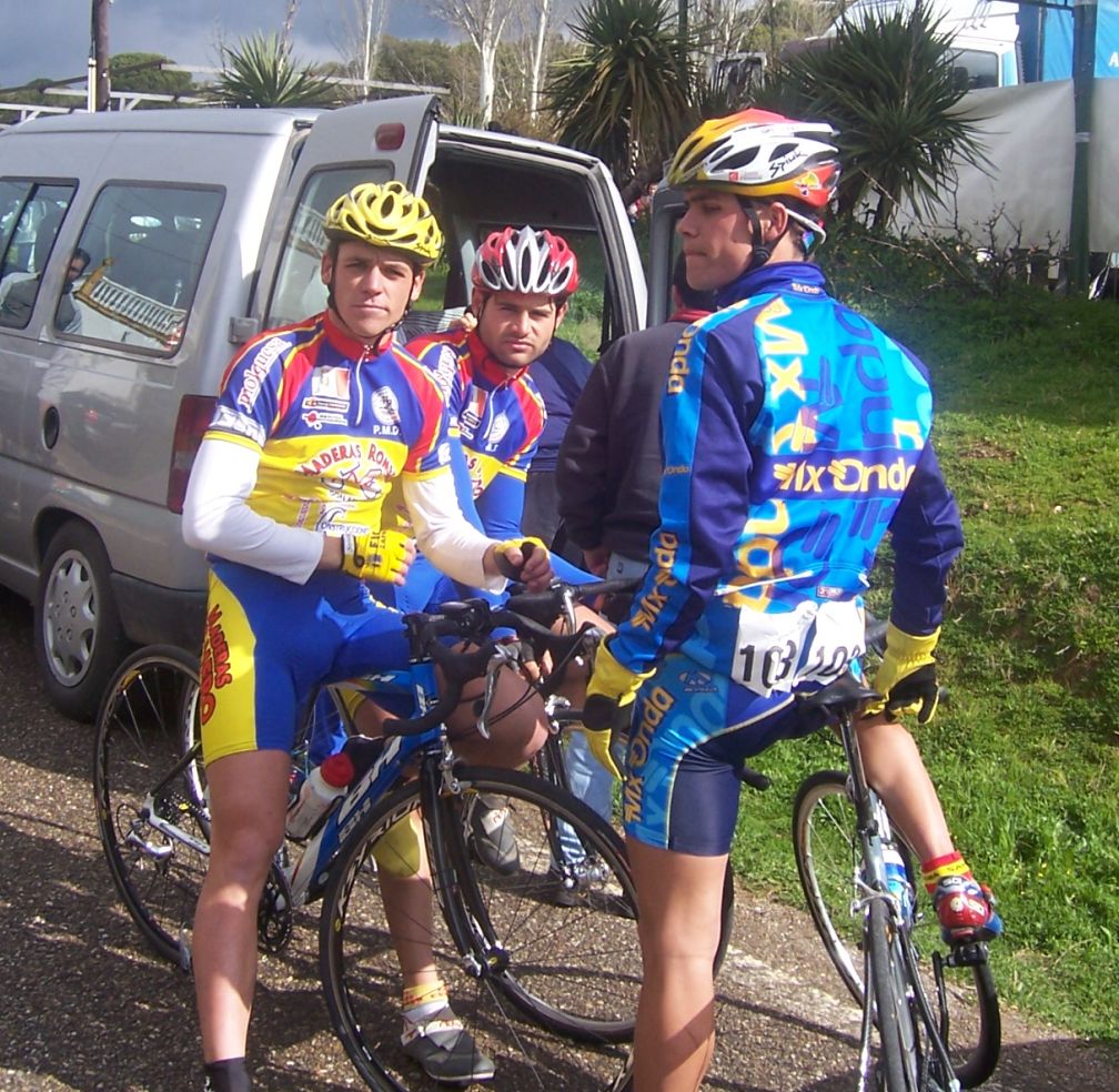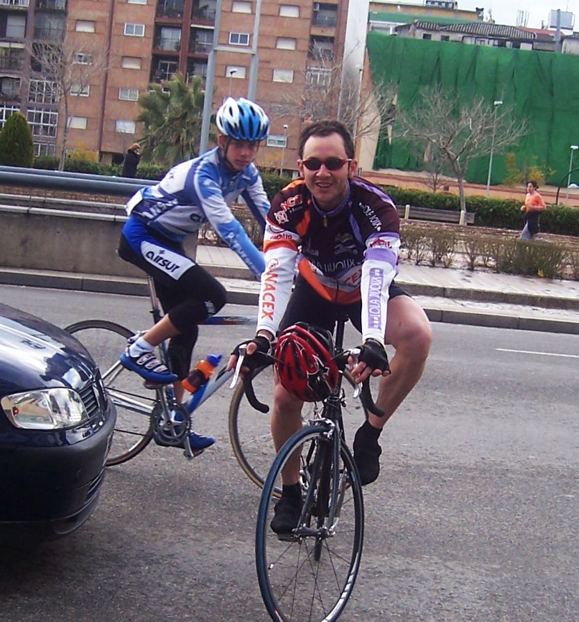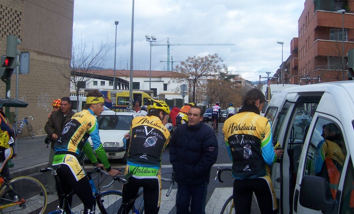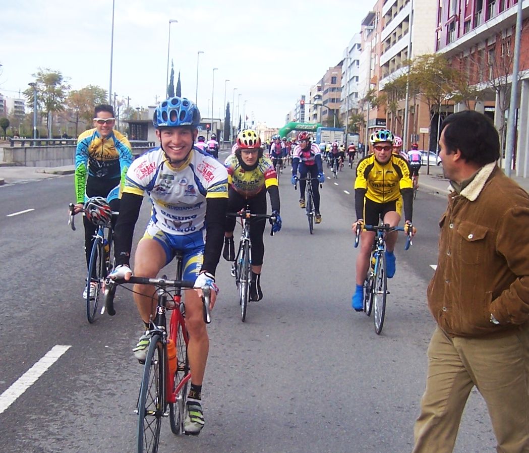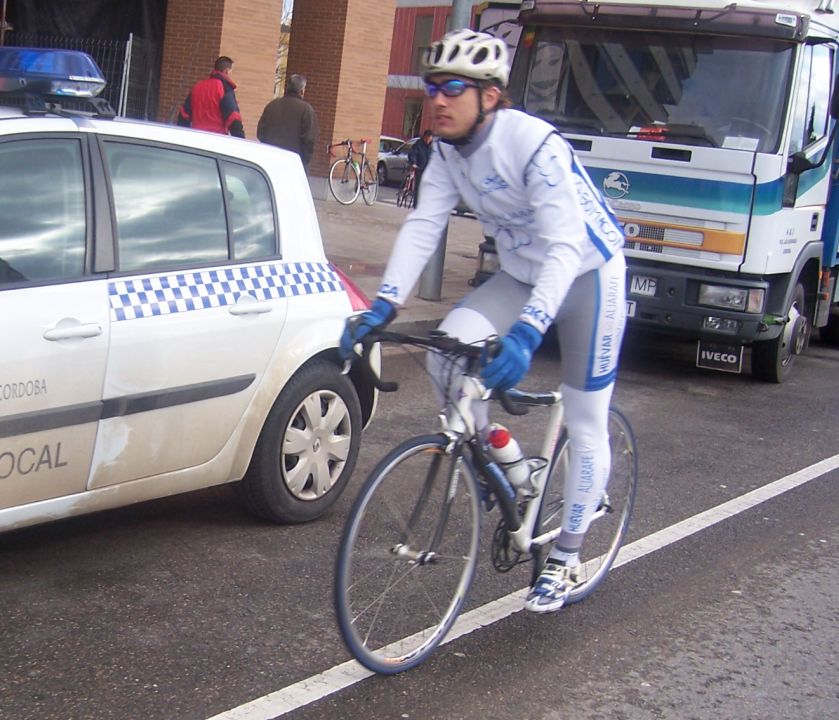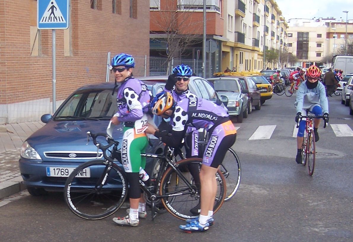 Unos minutos después paso yo por la salida y les veo a lo lejos cuando me dicen " Diego corre que los Elite han salido ya" Alli cruze los coches que obstaculizaban la salida como pude y sali esprintando con una mala ostia y dandole golpes al manillar pensando.. Vaya inicio de temporada, me quedo sin correr Don Benito.. y ahora aqui me quedo sin poder disputar, imposible empalmar si se ven al fondo... todavia tenia esperanzas de a ver si me metian coche o algo pero alli no venia nadie... pero si habia visto a elites calentando por ahi... que raro.. muy rapido habian espabilado pensaba yo.. pero no me cuadraba...llegue a pensar que habia salido yo solo por delante detras de los juveniles y me habia colado pero es que también habia juveniles que se habian equivocado y habian salido con los elite... un Caos un follón enorme.