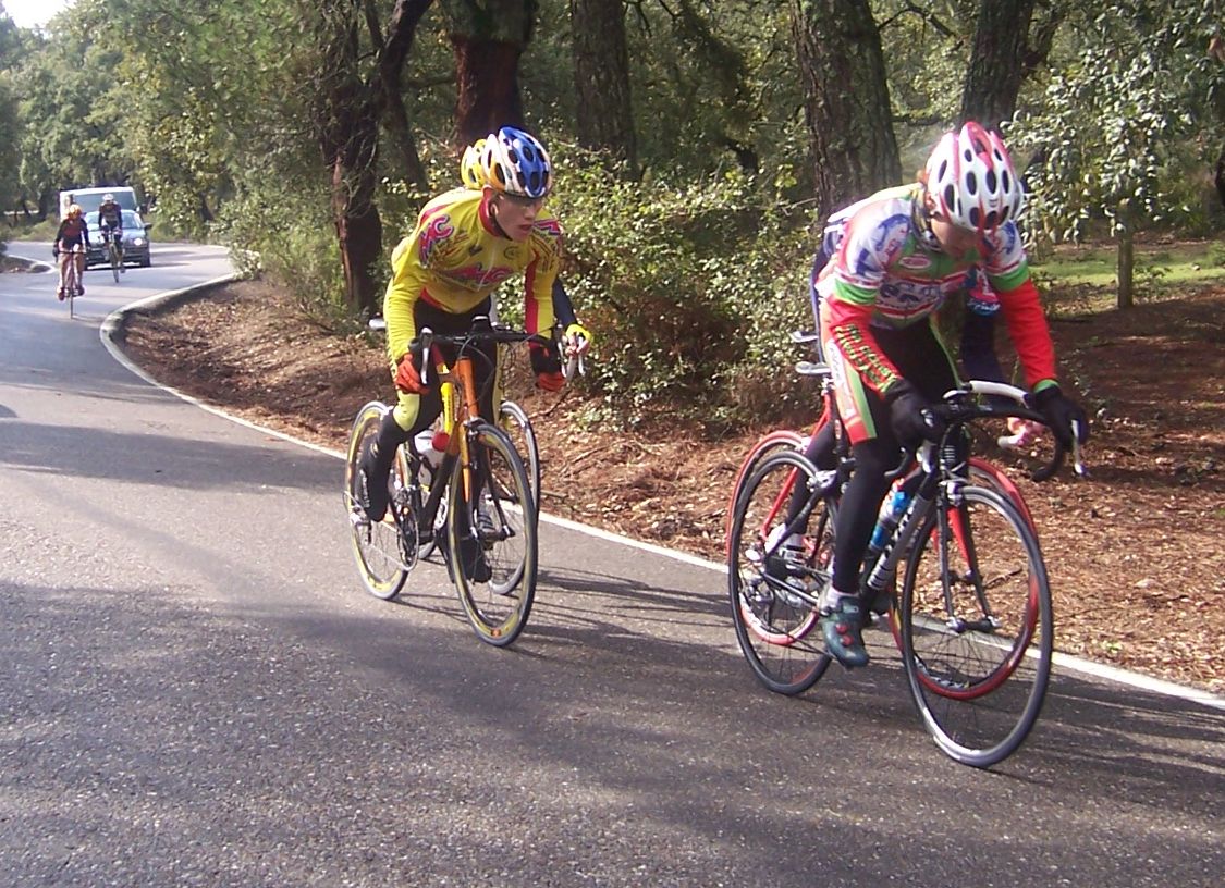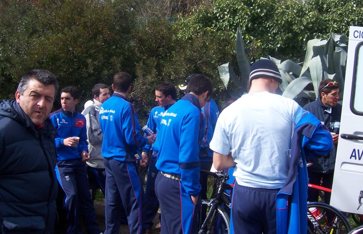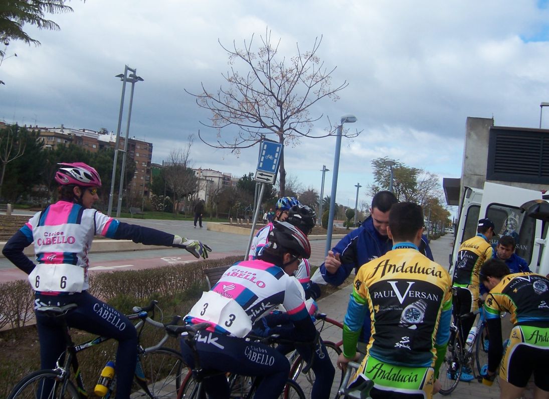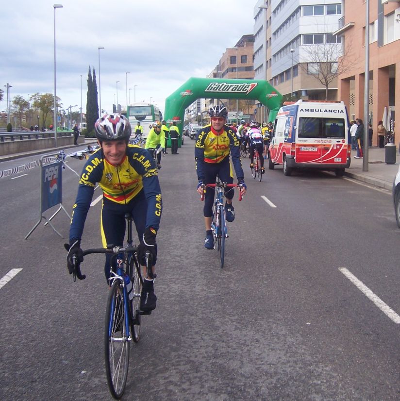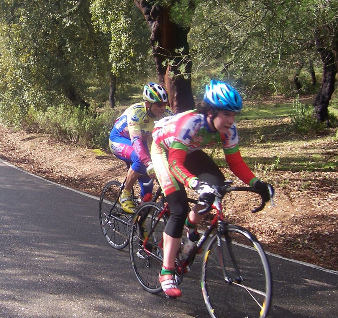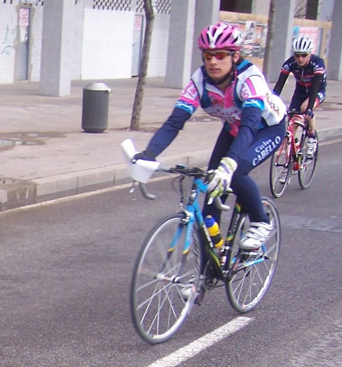 Unos minutos después paso yo por la salida y les veo a lo lejos cuando me dicen " Diego corre que los Elite han salido ya" Alli cruze los coches que obstaculizaban la salida como pude y sali esprintando con una mala ostia y dandole golpes al manillar pensando.. Vaya inicio de temporada, me quedo sin correr Don Benito.. y ahora aqui me quedo sin poder disputar, imposible empalmar si se ven al fondo... todavia tenia esperanzas de a ver si me metian coche o algo pero alli no venia nadie... pero si habia visto a elites calentando por ahi... que raro.. muy rapido habian espabilado pensaba yo.. pero no me cuadraba...llegue a pensar que habia salido yo solo por delante detras de los juveniles y me habia colado pero es que también habia juveniles que se habian equivocado y habian salido con los elite... un Caos un follón enorme.