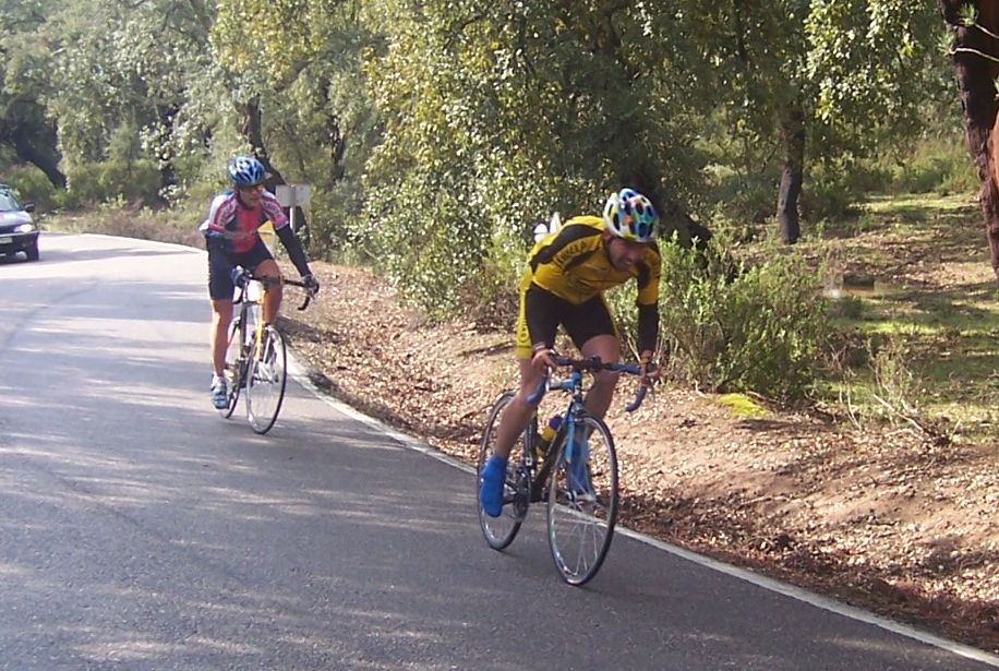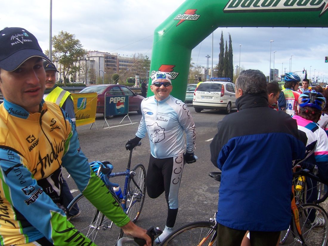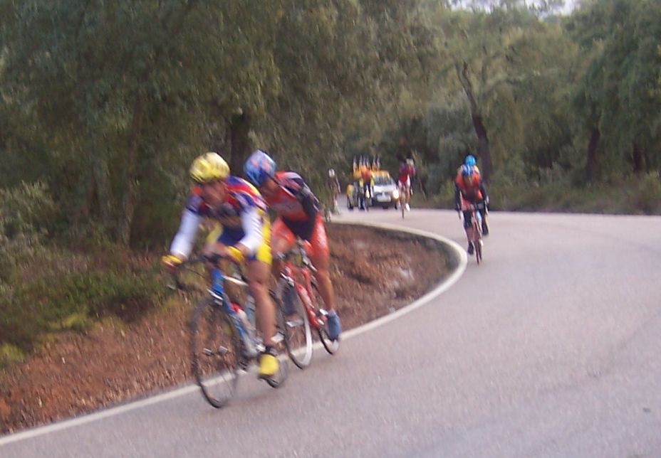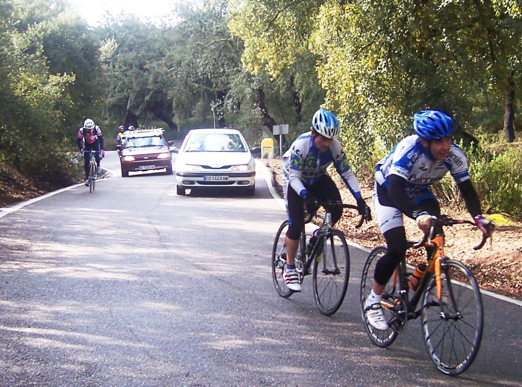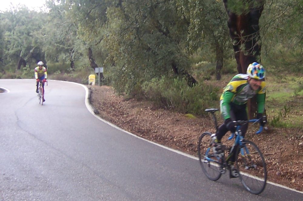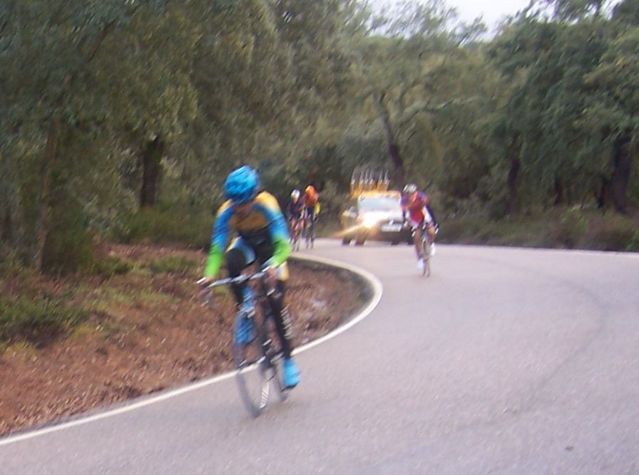 Nadie me metió coche ni nada, subi a buen ritmo con el aire de cara hasta que cogi al primer quedado y le pregunte " Has salido con los Elite-sub23??????" y me dice si...buff.. segui cogiendo gente, se me ponian a rueda.. al poco se quedaban.. yo no es que fuera muy rapido, iba desmotivado.. pero queria llegar cuanto antes a meta a ver que habia pasado, en el cruce de Trassierra empieza a caer una granizada... poco me importaba a mi que granizase, que nevase o lo que cayese, con lo mio tenia bastante..cogi a otro grupo donde iba Manolo de Utrera, que se quejaba de que el también habia salido tarde...