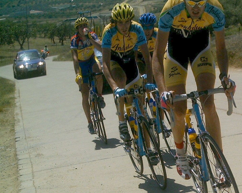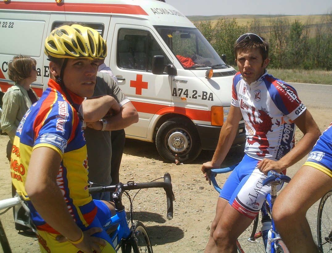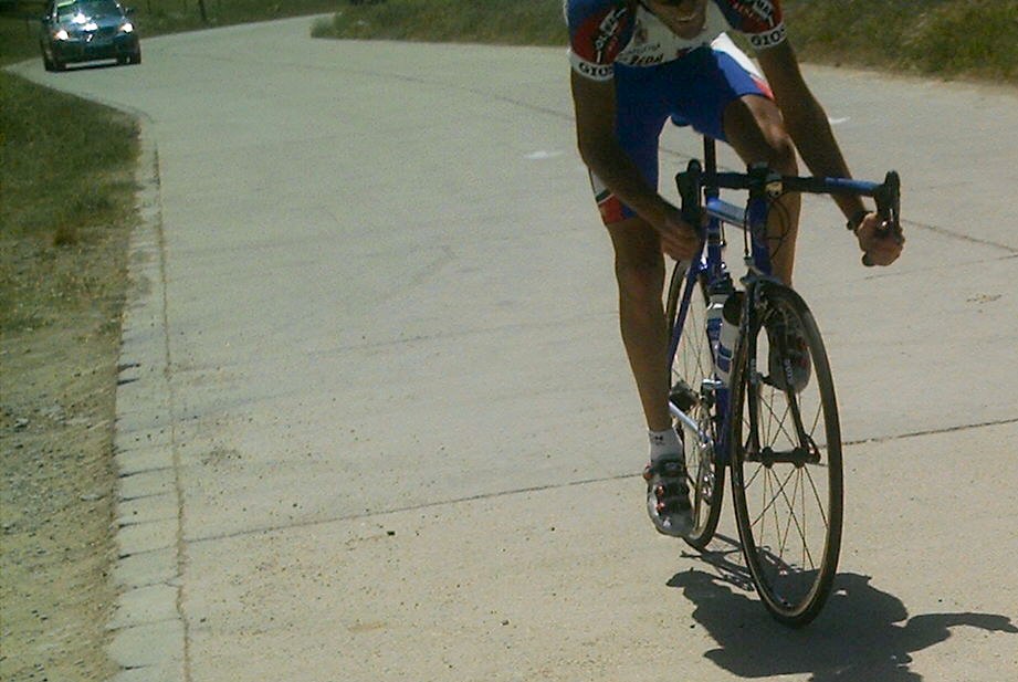 Hice bien en no parar porque poco despues venia un tarugón de la ostia, que empezé muy rapido, me atasque un poco y luego volvi a apretar con cojones, iba yo solo, parecia una crono, el puertecillo se hacia duro pero al final estaban animando el Mítico Juli del Fassa Bortolo y su hermano Jorge del Spiuk -"Venga Diegp que ya es tuya, venga que hoy la ganas" Eso me dio alas, iba rapido por ahi, yo solo iba rápido rápido y estaba abriendo mucho hueco.