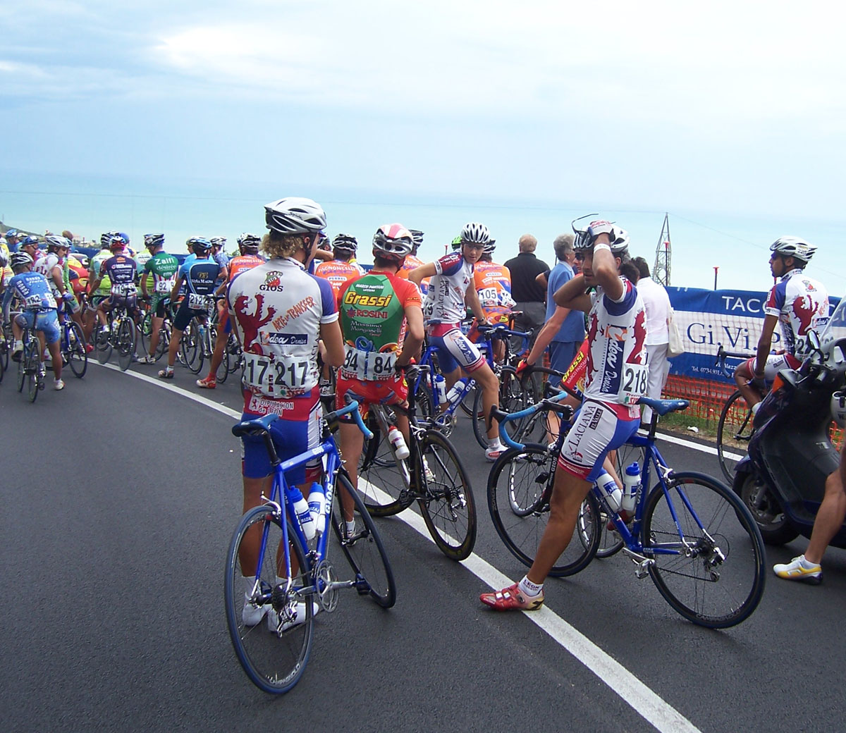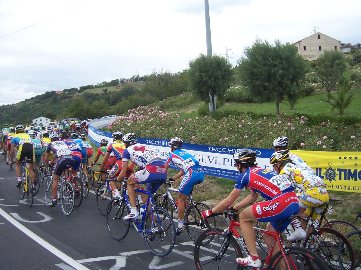 Habia una neutralizada bajando de Capodarco a Puerto SanGiorgio, en la costa, donde se daba la salida, nada mas empezar la neutralizada, alli con 200 tios, hubo una montonera, empezo la gente a caer como dominos, dando unas voltereras, yo que iba el ultimo lo vi flipando.. como caian.