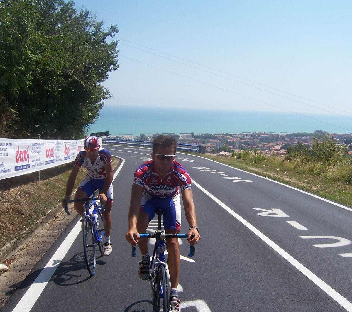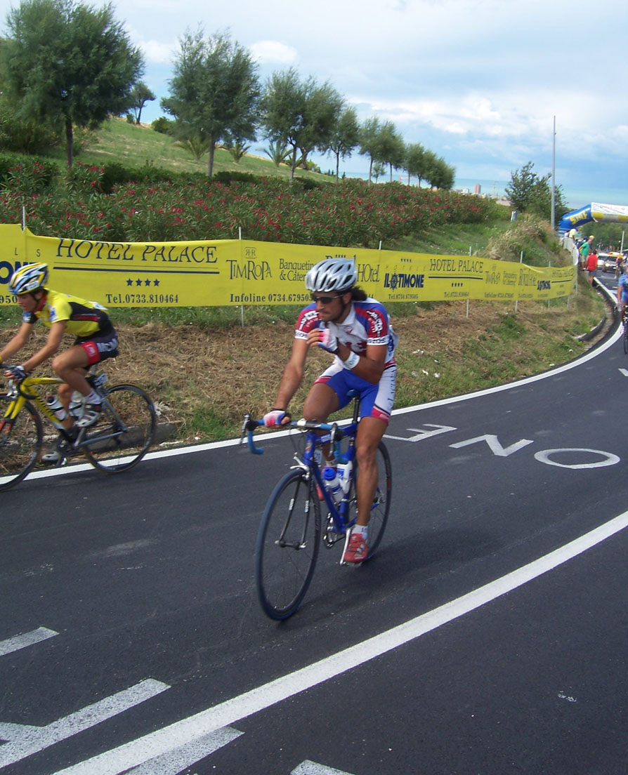 En un repecho que habia despues de coronar arranqué y me fui con otros dos, nos tiramos para abajo a lo que dabamos y cogimos un minuto de ventaja sobre el peloton, pero por delante teniamos un grupo a 30 segundos, antes de empezar la segunda subida a Capodarco nos cogio un grupo de escapados y empezamos a subir con cierta ventaja pero nos pillaron a medio puerto, aunque corone en cabeza de grupo.