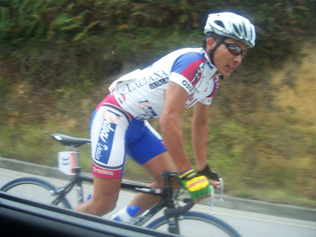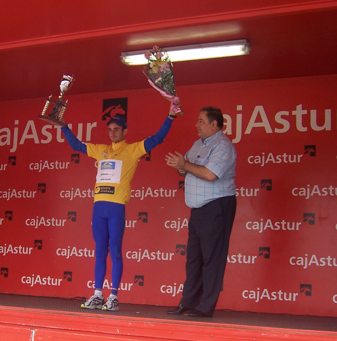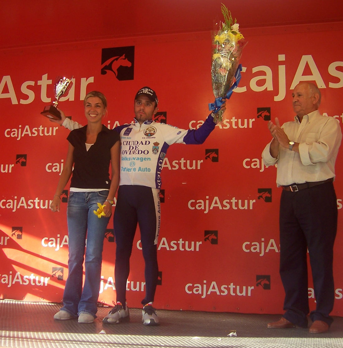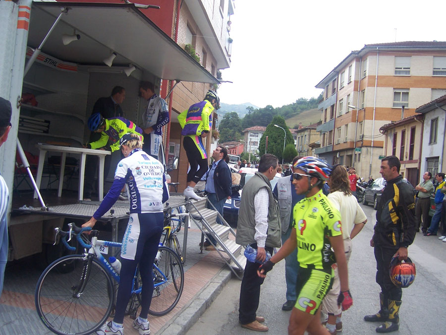 En un repecho largo que habia despues del primer puerto David Perez se puso a tensar hasta que nos fuimos 9 tios, David Perez iba tirando a una ostia impresionante, yo aguante ahi como pude hasta que coronamos y se consolido la escapada, ibamos Sergio y yo, Mario del Andalucia, Estrada de Soctec, Cima del Oviedo.. Llegamos a la segunda Meta Volante, Sergio y yo esprintamos uno por cada lado, paso el primero, Estrada segundo y yo tercero, justo despues empezaba otro puerto, empezo a tensar Perez, yo iba bien pero al final empeze a tener problemas serios, tan serios que me revento a poco de coronar y ahi quedé, teniamos 2 minutos de ventaja, fue una pena.