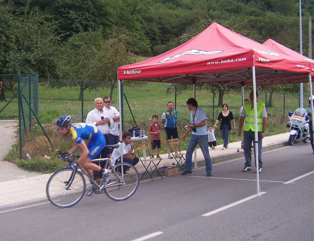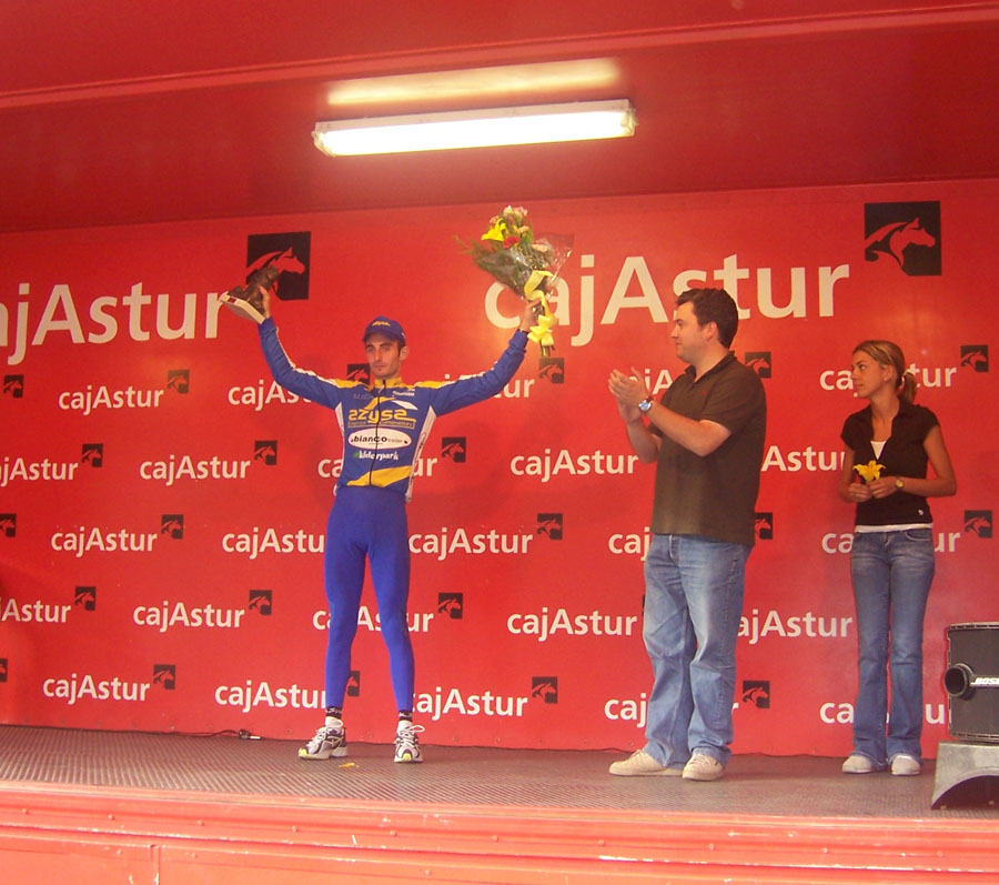 Me cogió el peloton despues de bajar el puerto, venia ya bastante mermado, se pusieron a controlar los portugueses hasta que la cosa se volvio a poner dura y empezo la gente a arrancar, salté a por Manolo de Soctec en un repecho y nos fuimos los dos, estuve escapado con el hasta que se le salio la cadena y me dejo solo, pille a un Andalucia y a un Frisonoble, quedaban 8 kms a meta, pense que no habria puerto pero quedaba una emboscadisima tremenda, al mismo tiempo que vi el cartel de comienza puerto vi como el Marichalar me pasaba con todo el peloton a rueda, fue un Mazazo doble... Sufri lo que pude y entre en un grupillo a 3 minutos y medio del ganador de la etapa David Perez, sin duda, el que mas sobrao iba.