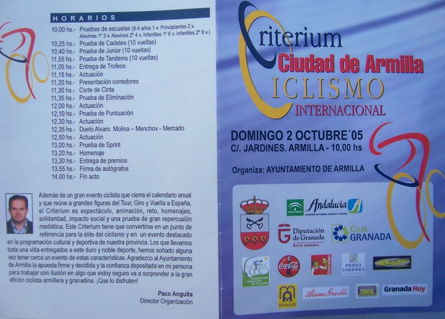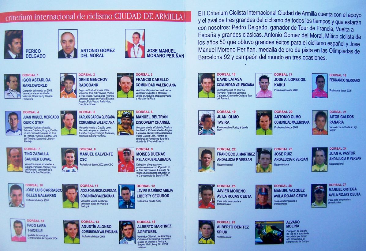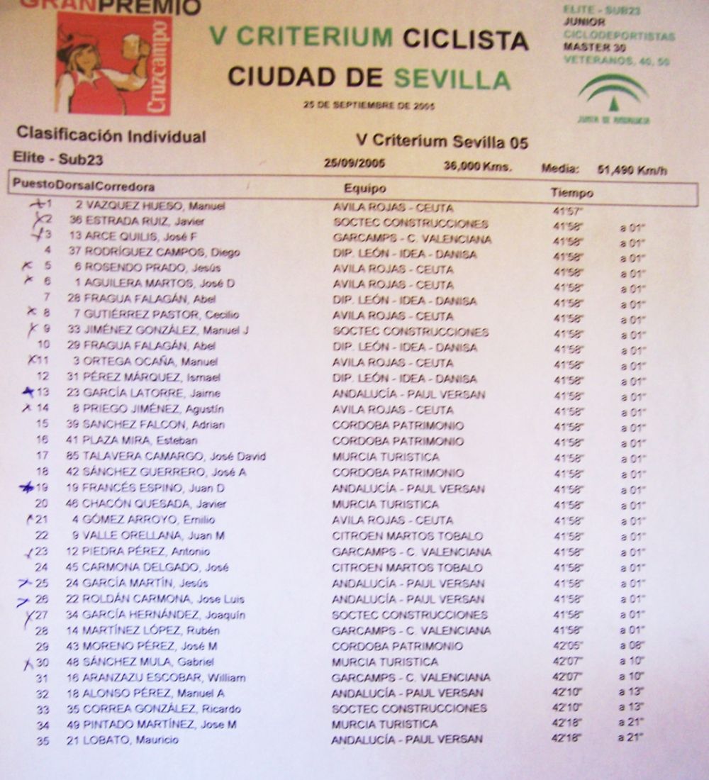 El Criterium Ciclista Ciudad de Sevilla, organizado por Antonio Gomez del Moral, reunió a los equipos Elite-Sub23 Avila Rojas, Andalucia Paul Versan, Garcamps-Cv, Soctec, Murcia Turistica, Cordoba Patrimonio.. y Diputación de León con Abel y yo.