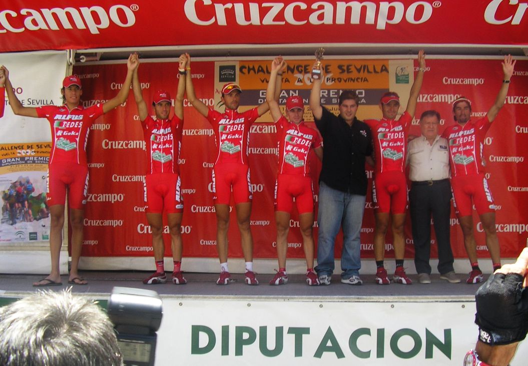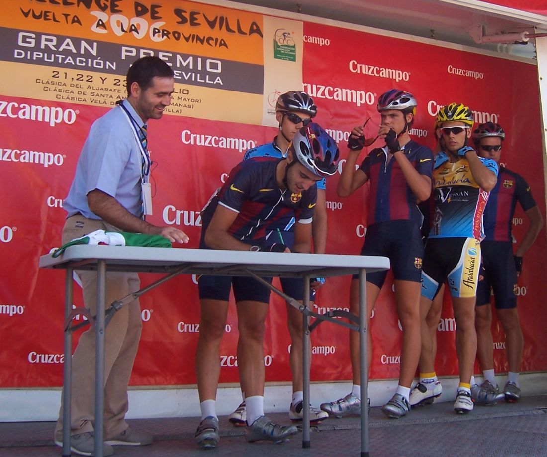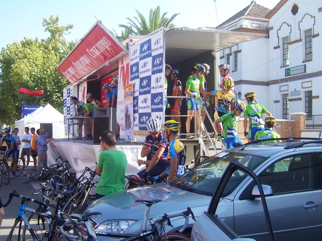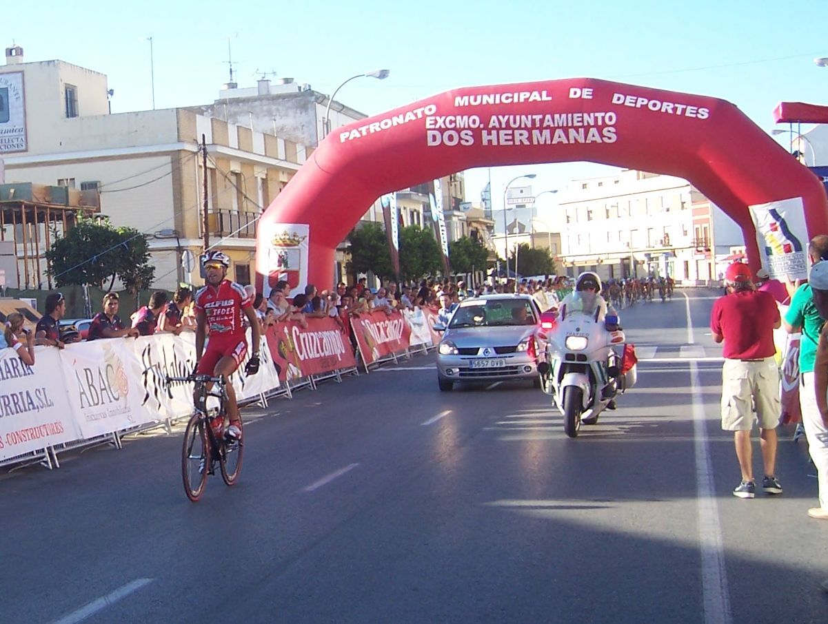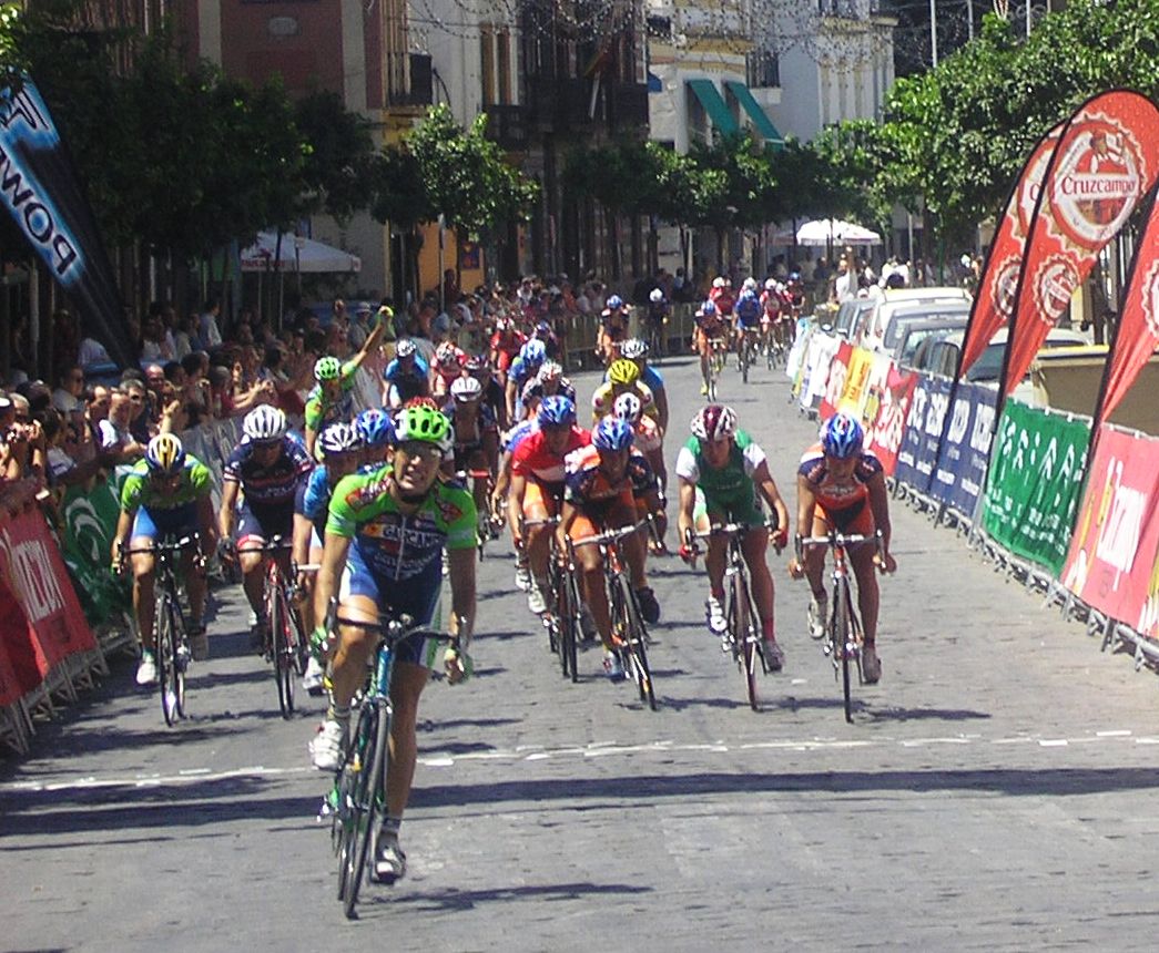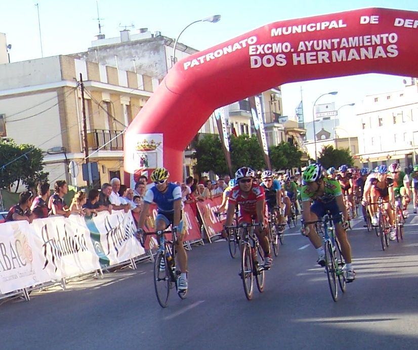 Eran dos vueltas al circuito de 65 kms con un puerto, el de la subida a Sanlucar, y los repechos de Huevar, se salió muy rápido en una carrera que tenia altisimo nivel, con mas de 130 corredores de los mejores equipos, lo antes contado, se llegaba a los pueblos, latigo...