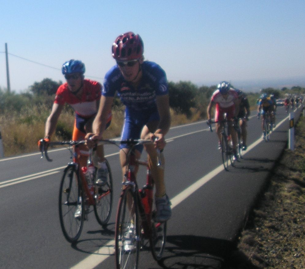 Padilla y el Churro se pusieron a cerrar cuneta que parecia que nos iban a abrir a todos pero se les acabo la recta, giramos a la derecha y nos salvamos por la campana, en el repecho de Huevar me entro el minuto bueno que dice Perico y me puse a subir cerrando cuneta para ver si clareaba la cosa pero cuando coroné arriba no habia hecho nada.