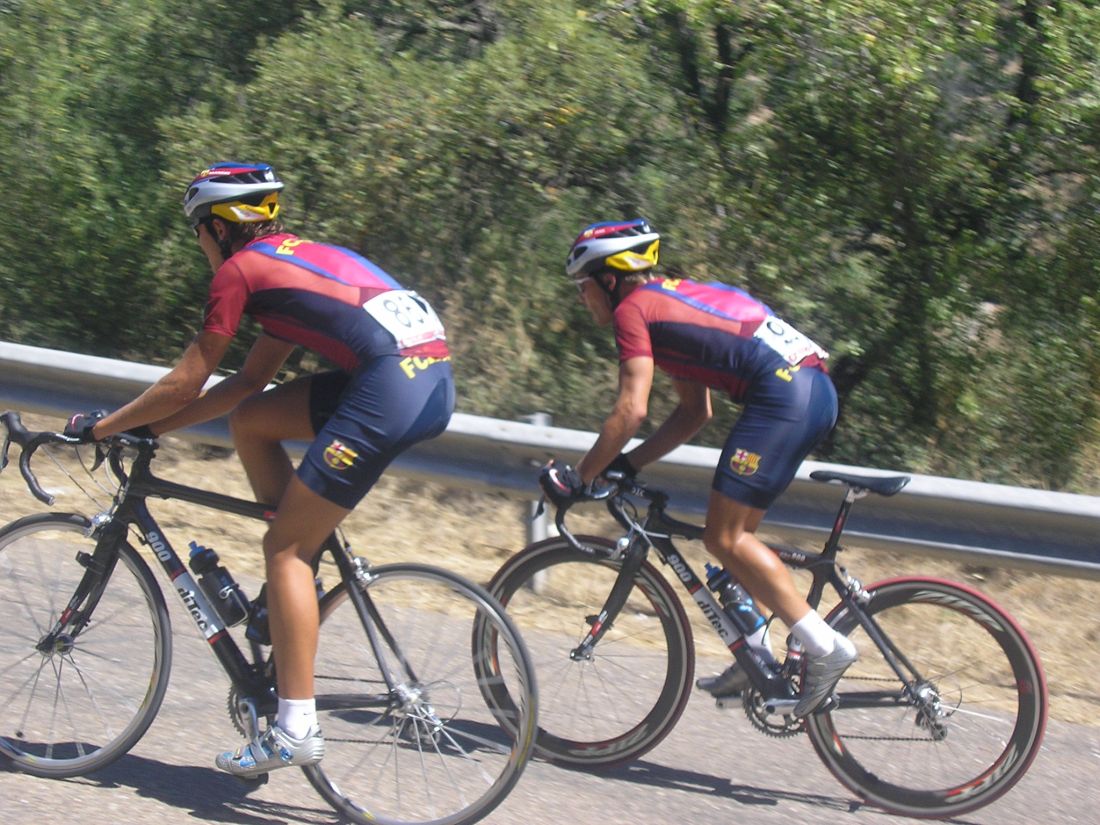 Cuando vimos que ya era definitivo que no enganchabamos levantamos un poco el pie pero seguiamos a buen ritmo para no ir perdiendo mucho tiempo, recogiamos algun cadaver... llamese Joan Font.. y llegamos a la Media Fanega, el puerto duro del dia... ahi en la grupeta no se me hizo nada duro, y nada.. una vez arriba era terreno favorable hasta Sevilla, recogimos al Juve que iba solo por ahi y nos pusimos a perseguir hasta que ya pillamos a otra grupetilla y llegamos a 15 minutos a meta. En las ultimas rectas cerca de Sevilla el calor se hacia insoportable. Pero el termometro de la entrada a los adoquines de triana marcaba 40 grados, hace dos años, marcaba 46.