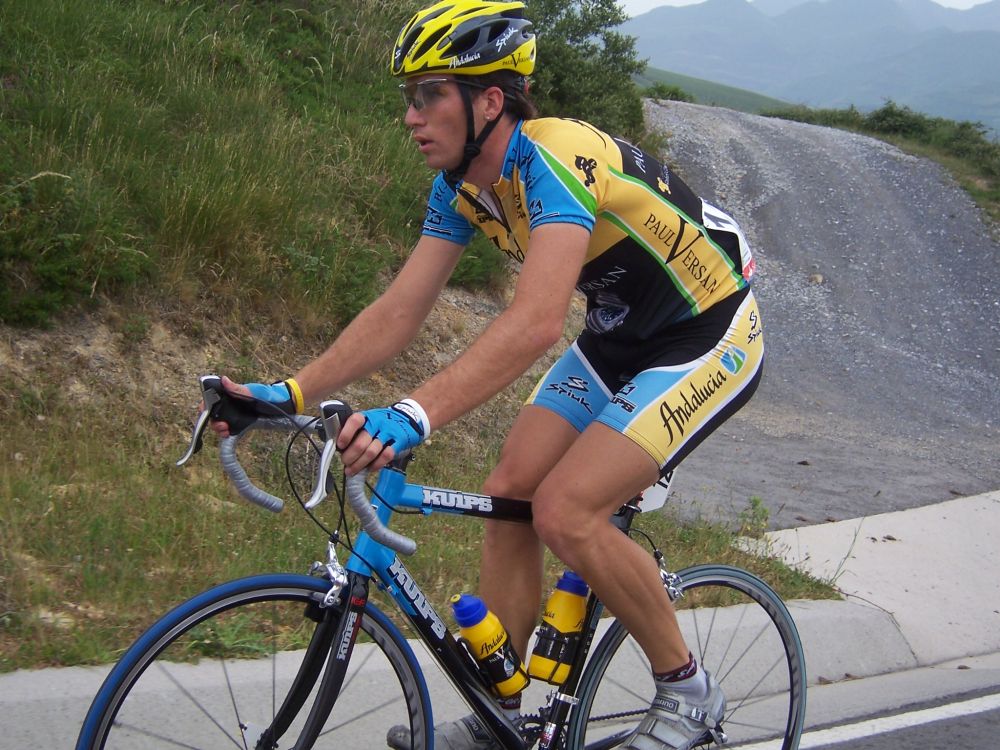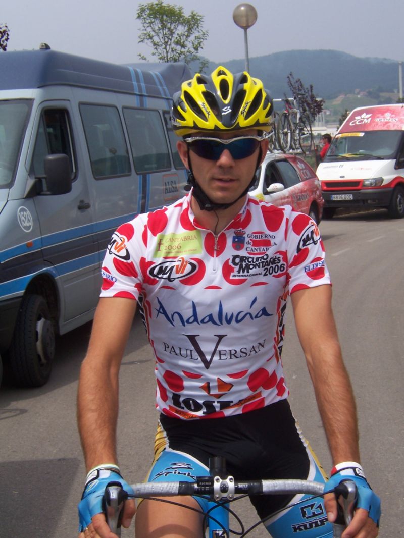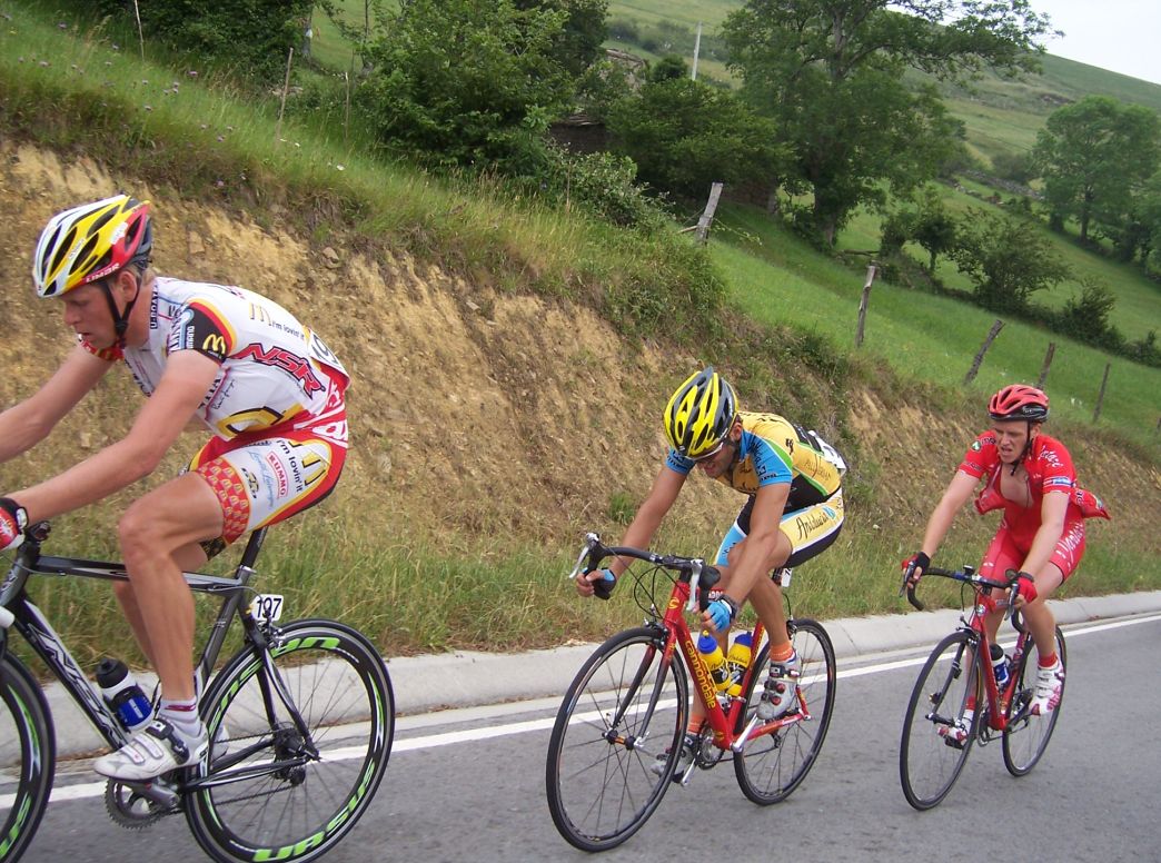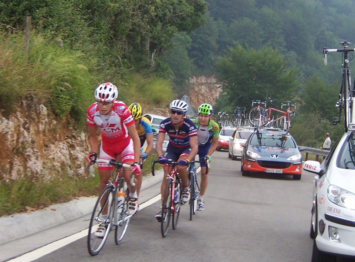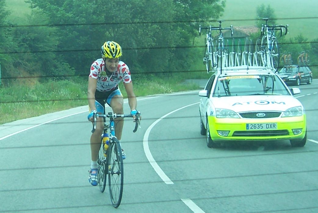 Cariñena viviendo en sus carnes el sufrimiento del Circuito Montañés, con el mallot de lider de la Montaña.
