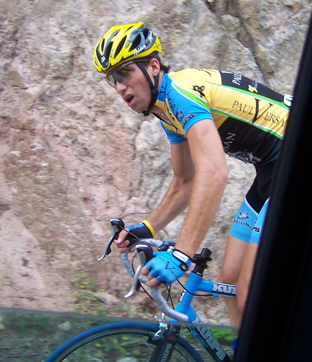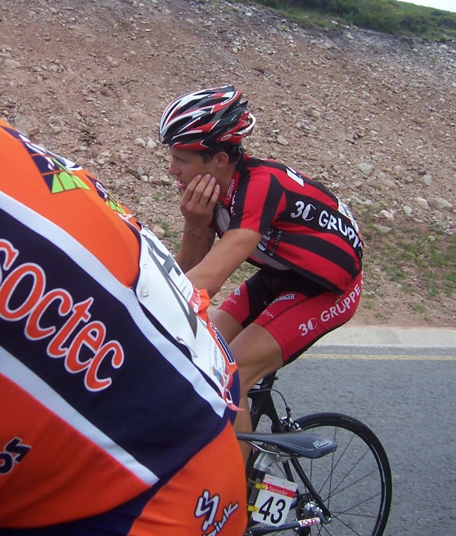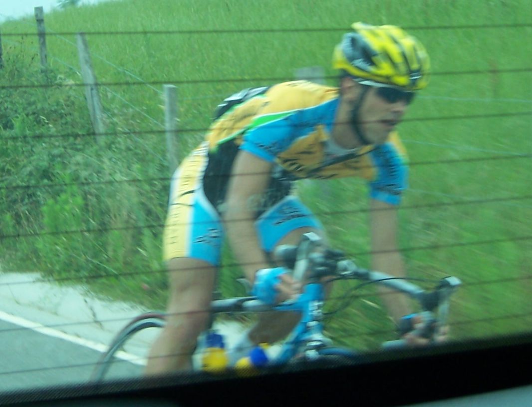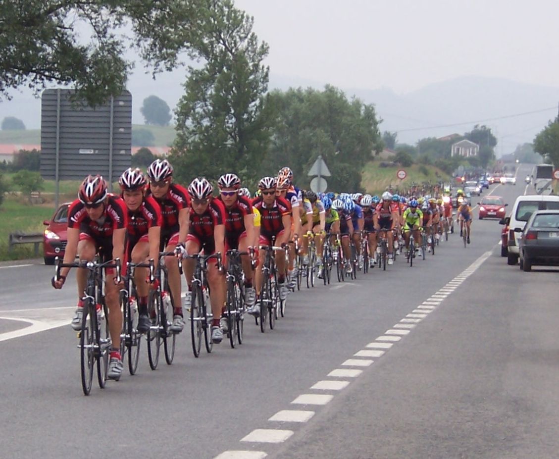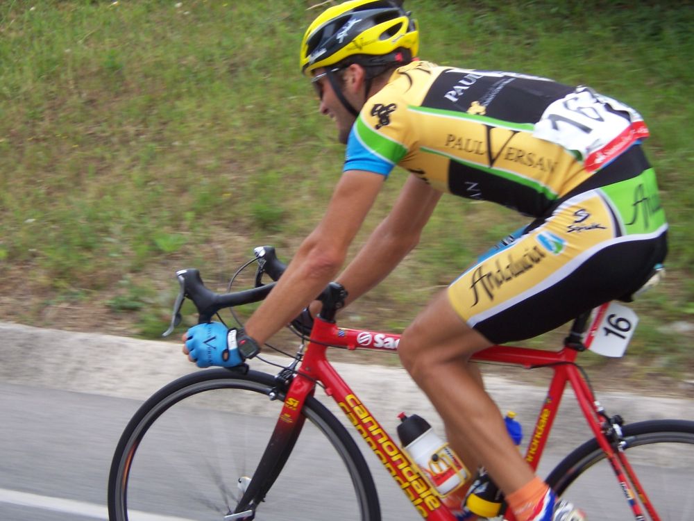 Cariñena viviendo en sus carnes el sufrimiento del Circuito Montañés, con el mallot de lider de la Montaña.