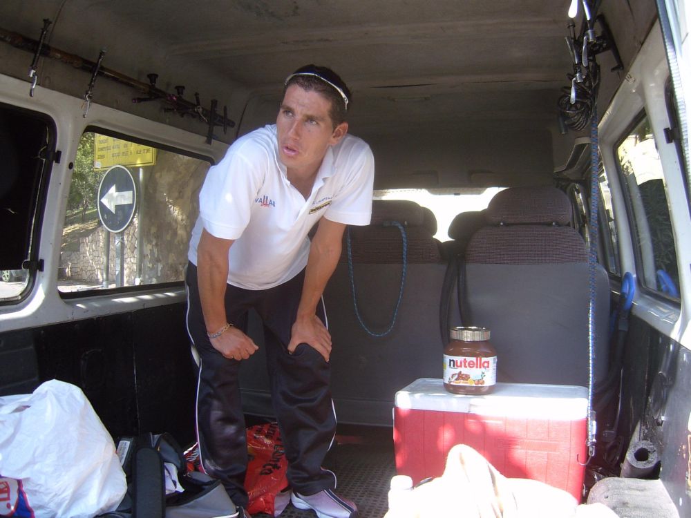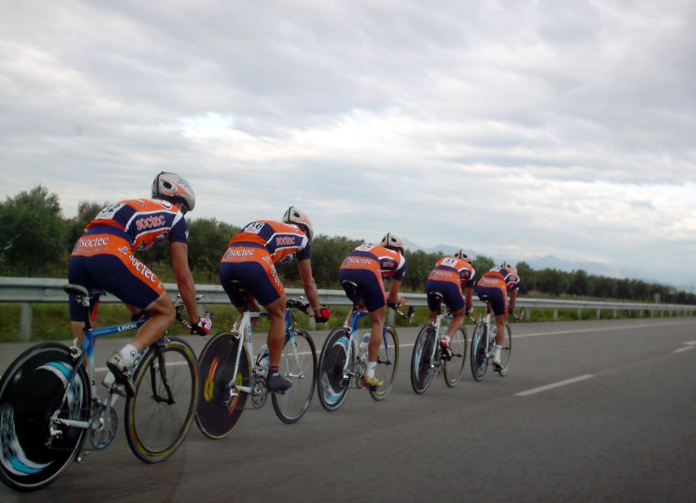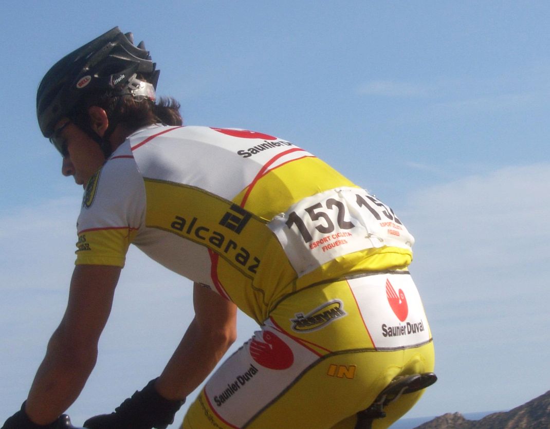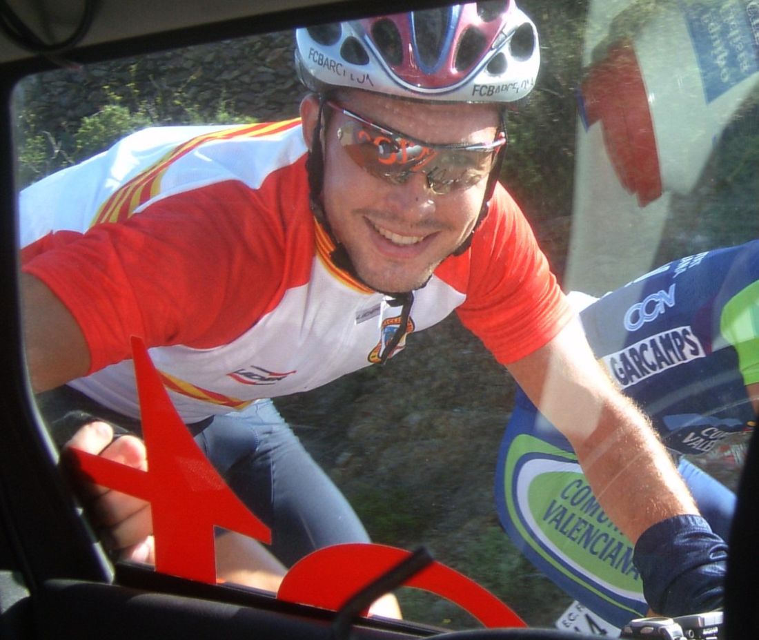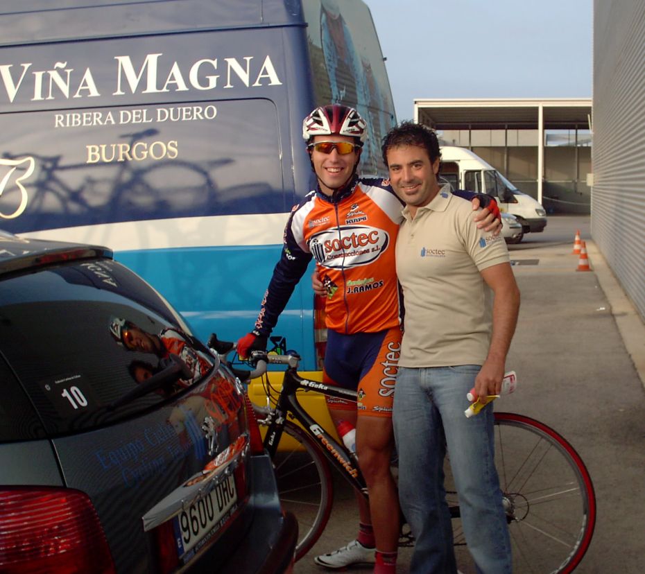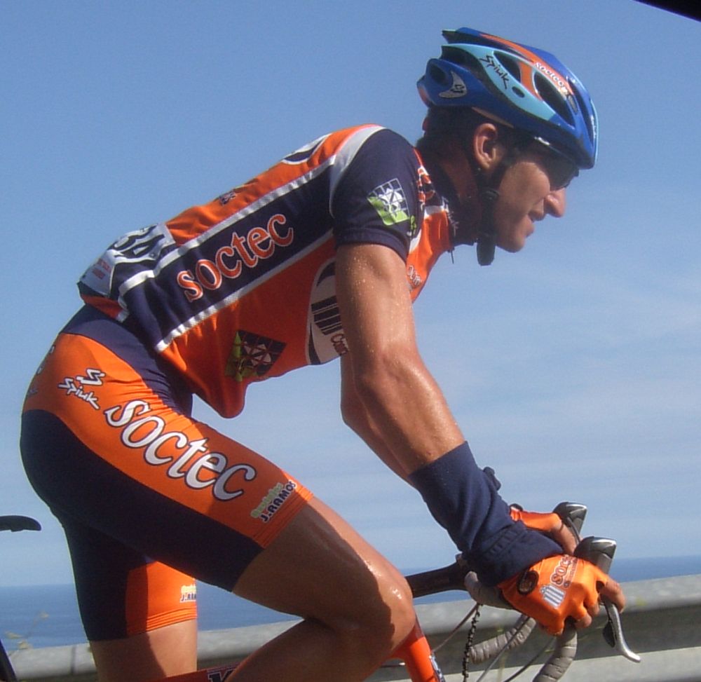 ![]() Chacón luciendo el mallot de campeón de España Crono en la crono por equipos. |