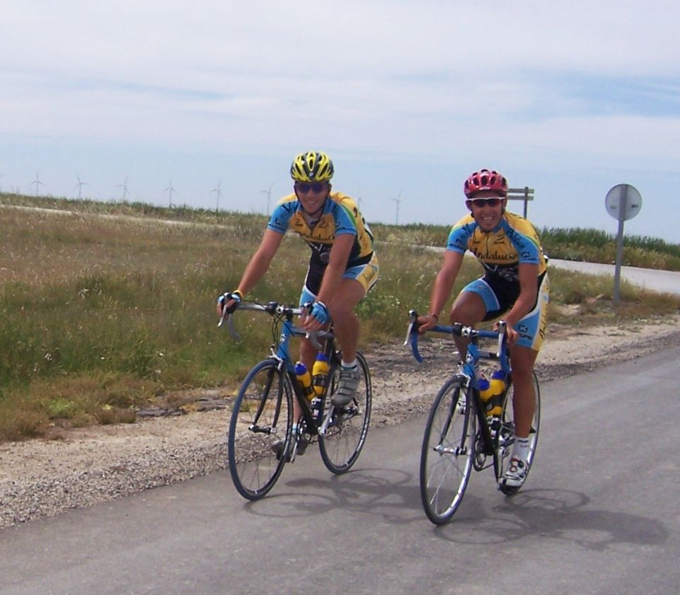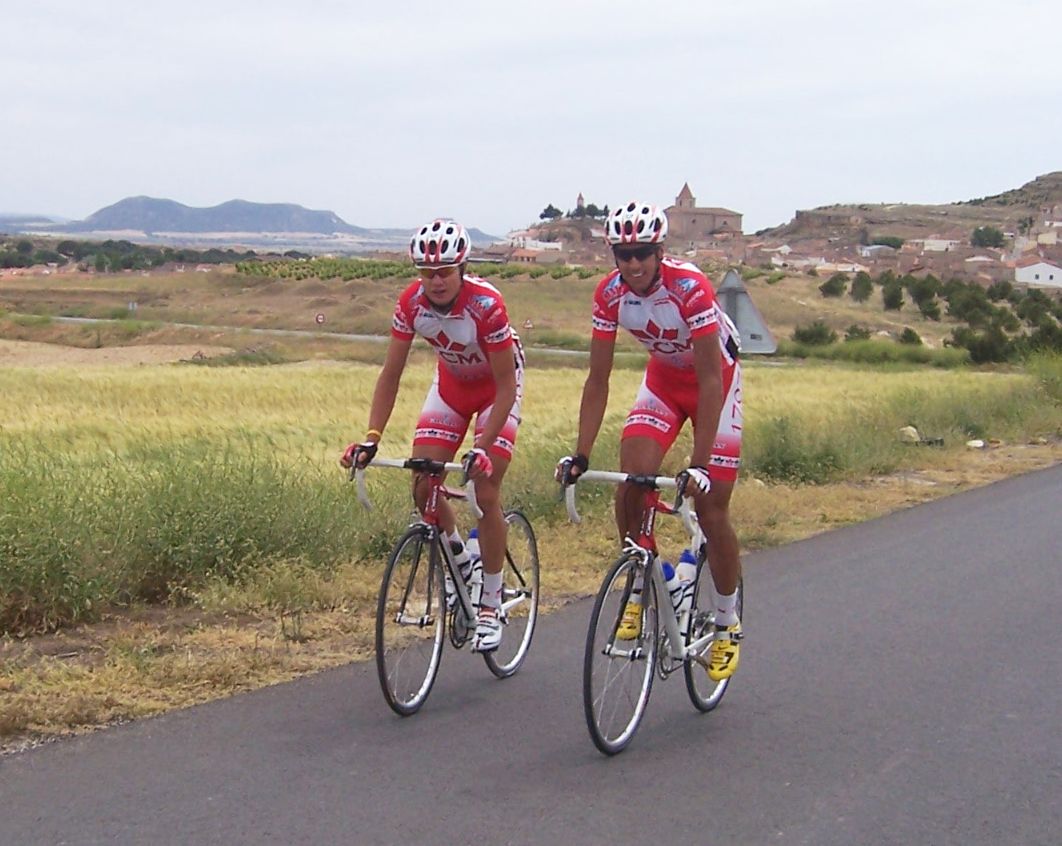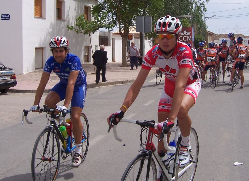 Pero después de hacer el descenso del puerto fuimos cogidos otra vez por el pelotón, entonces arranqué con Miravalles y nos fuimos los dos, estuvimos alli remando unos buenos kms, pero no abriamos el hueco suficiente, nos volvieron a coger y otra vez me fui, esta vez con mi compañero Juan David Francés, abrimos hueco con el aire de cara, giramos, y empezamos a remar, se nos acercaron los Murcia que venian cerrando cuneta pero no nos pillaban, ibamos muy deprisa, menudos relevos daba el Juan David.