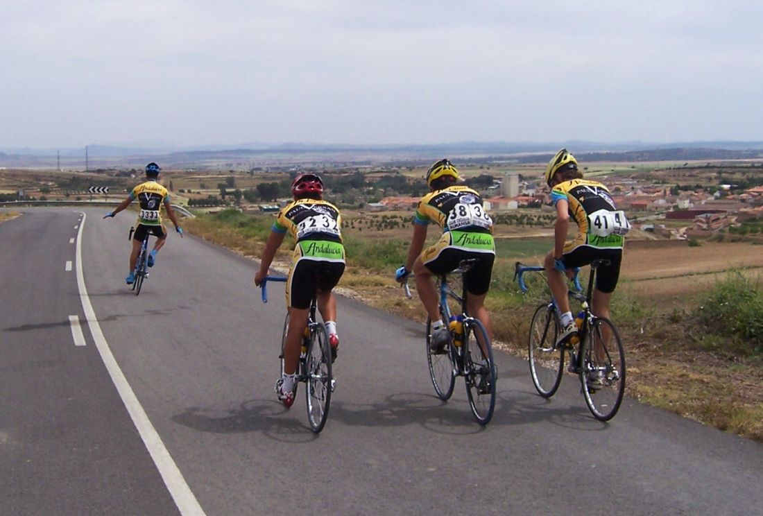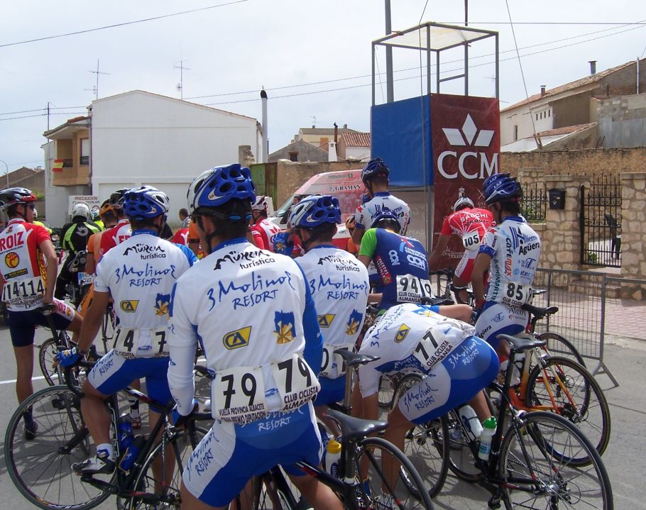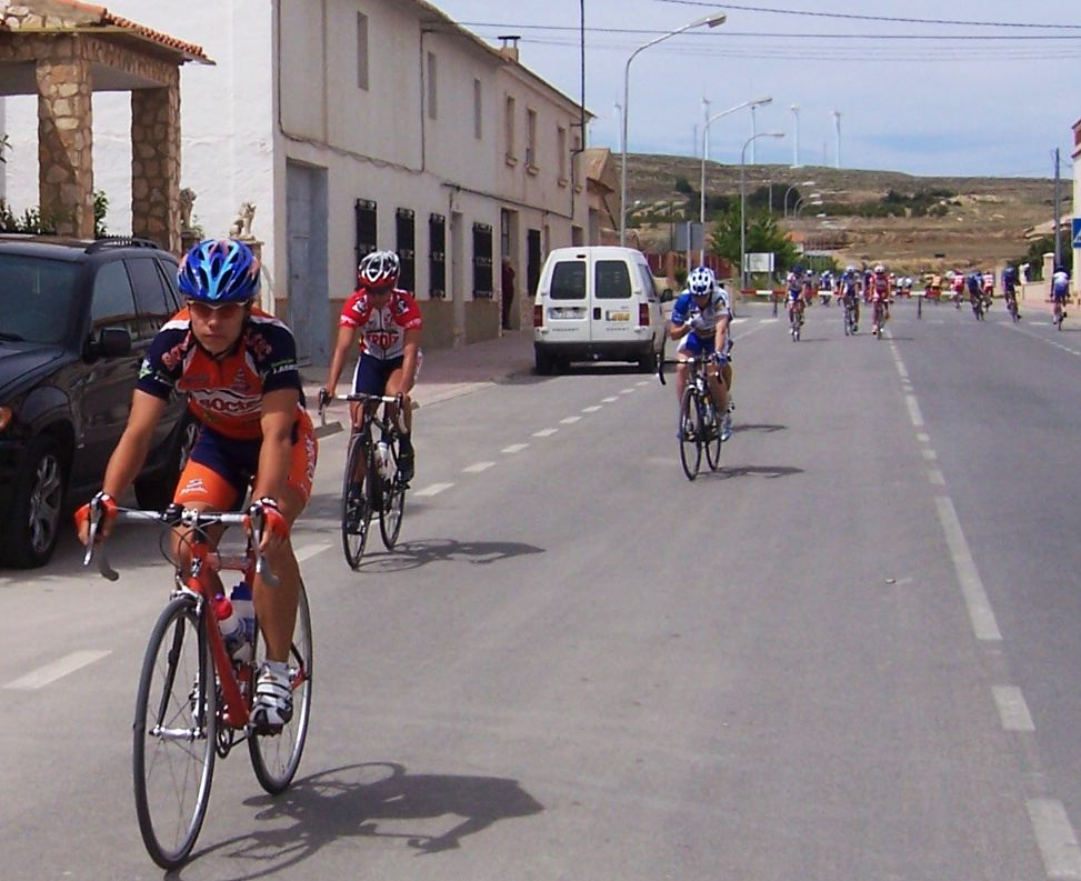 Después del pueblo se giraba a la derecha, que jodido iba, iba mas mal en ese tramo, la carretera mala que parece que vas pinchao pero no vas pinchao.. amargao.. hasta que empezamos a subir el puerto, ahi me encontré bien, en el paramo cuando coronas me metí en un corte, se partió lo poco que quedaba de pelotón en mas cachos, pero en el descenso se volvio a reunificar, volvimos a dar la vuelta pequeña pero esta vez en el paso por Higueruela se subia el puertecillo de los Molinos. Alli iba yo bien bien, arrancando, me meti en un corte en el páramo de arriba, paramo de esos tipo Palencia, ibamos pocos y teniamos la escapada cerca.