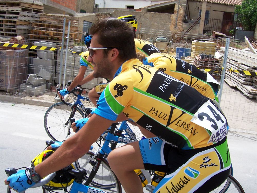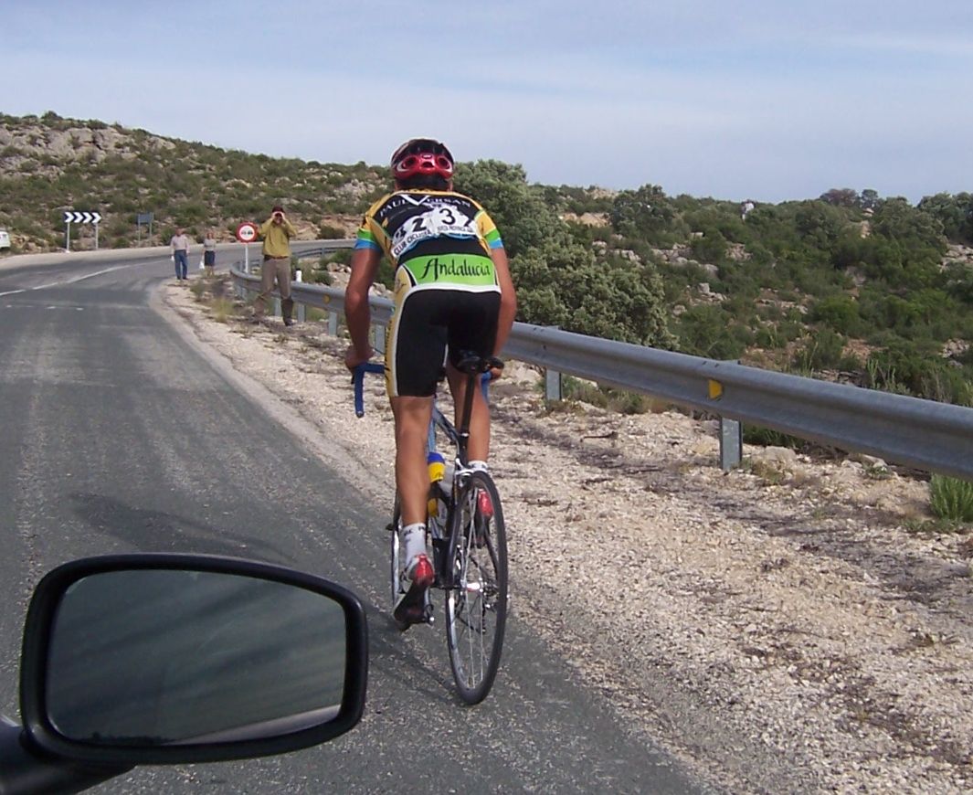 Pero el ciclismo no son matematicas y pasando la Meta Volante del Km20 de Higueruela se hizo un corte de 9 donde es metió Marranetes, Xurro, Noguera,...y del Andalucia Hidalgo y Sergio Carrasco. Yo iba en la oficina tranquilo, atras en el pelotón se iba rápido, unos ataques muy fuertes con el aire de cara, pero la escapada caminaba para alante.