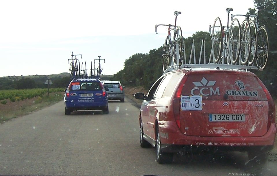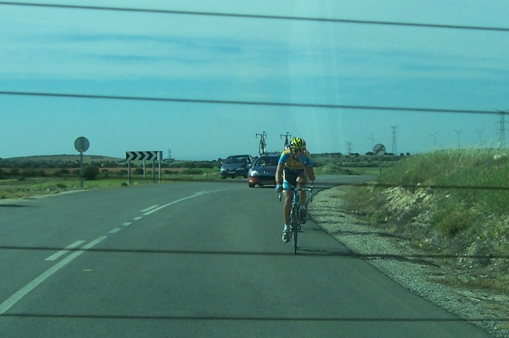 Pero donde mas daño hicieron los CCM fue antes de Casas de Juan Nuñez, alli si me hicieron sufrir por la cuneta, un peligro, de eso que vas ciego acojonado, no queria chupar mucha cuneta por que me acordaba de la caida del otro dia, me iba dando el aire y las pase putas, cuando ya pude respirar mire detras de mi y no habia nadie, un grupo al fondo persiguiendo, la que habian liado ya, de 113 que salimos solo quedabamos ya un peloton de 40, mas la escapada que seguia por delante que es donde mejor se va por que van todos abiertos.