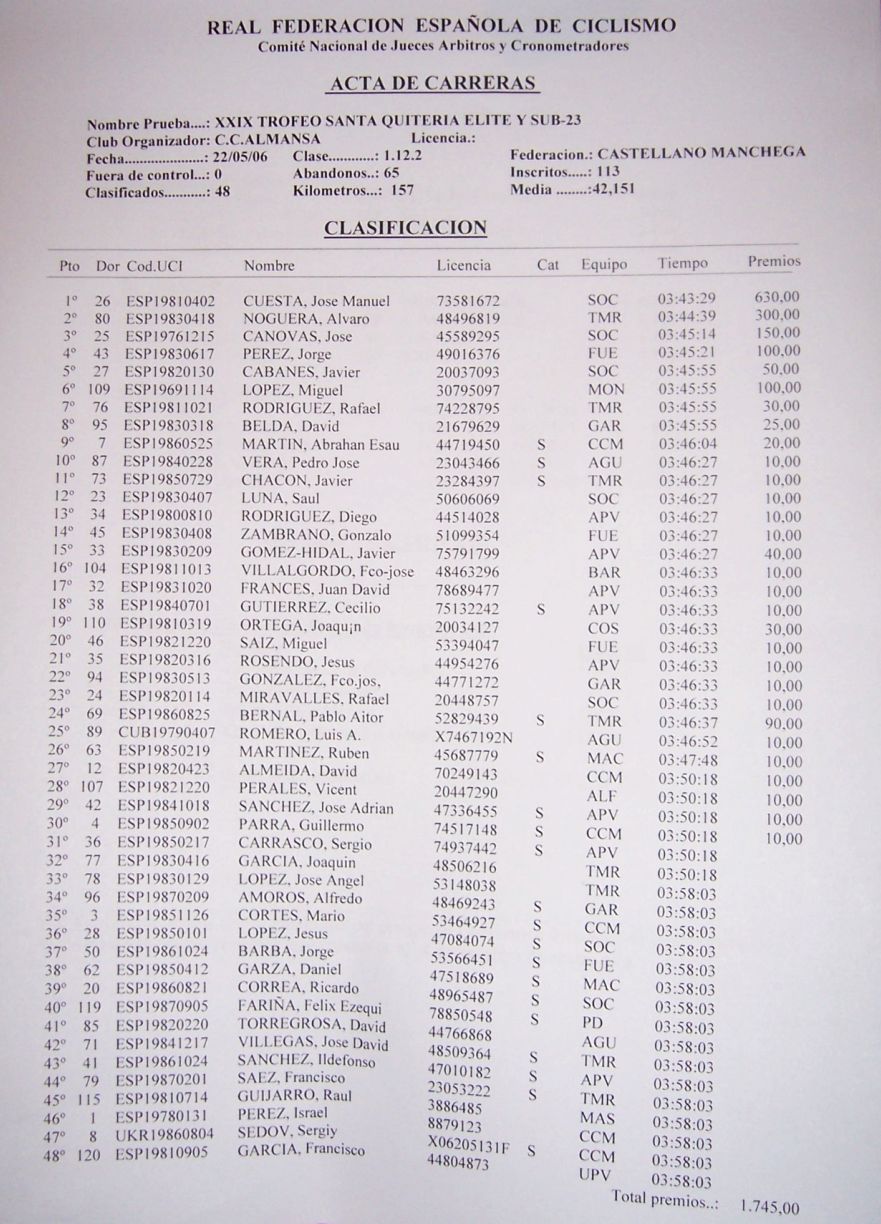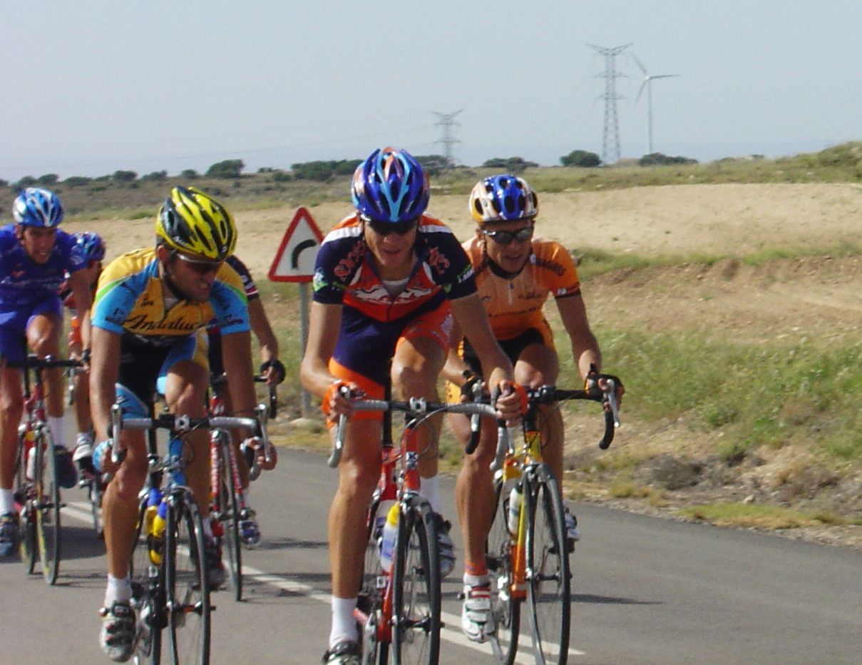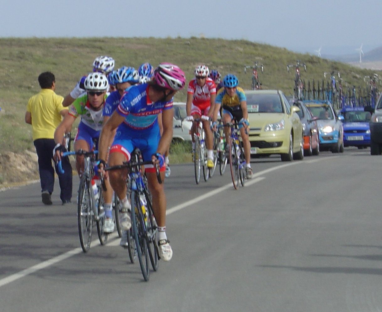 Teniamos la escapada ya a punto de cogerla, si la cogiamos se ponia bien la cosa, de 8 que eran iriamos 4 del Andalucia, aunque Xurro y Noguera ya habian arrancado, no se.. de todas maneras yo iba fundido y el Francés acabó soltandome en el puerto, me esperó un poco pero al final se fue para alante y no pudo enganchar. A mi me cogieron en el paramo de arriba, lo que son las cosas, pase de ir arrancando por alli a ir penando para no quedarme, las remadas se pagan caras.