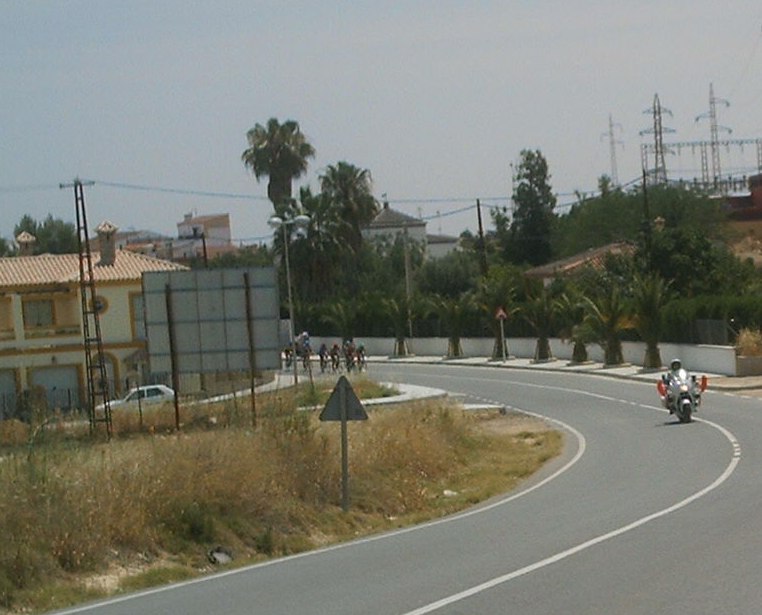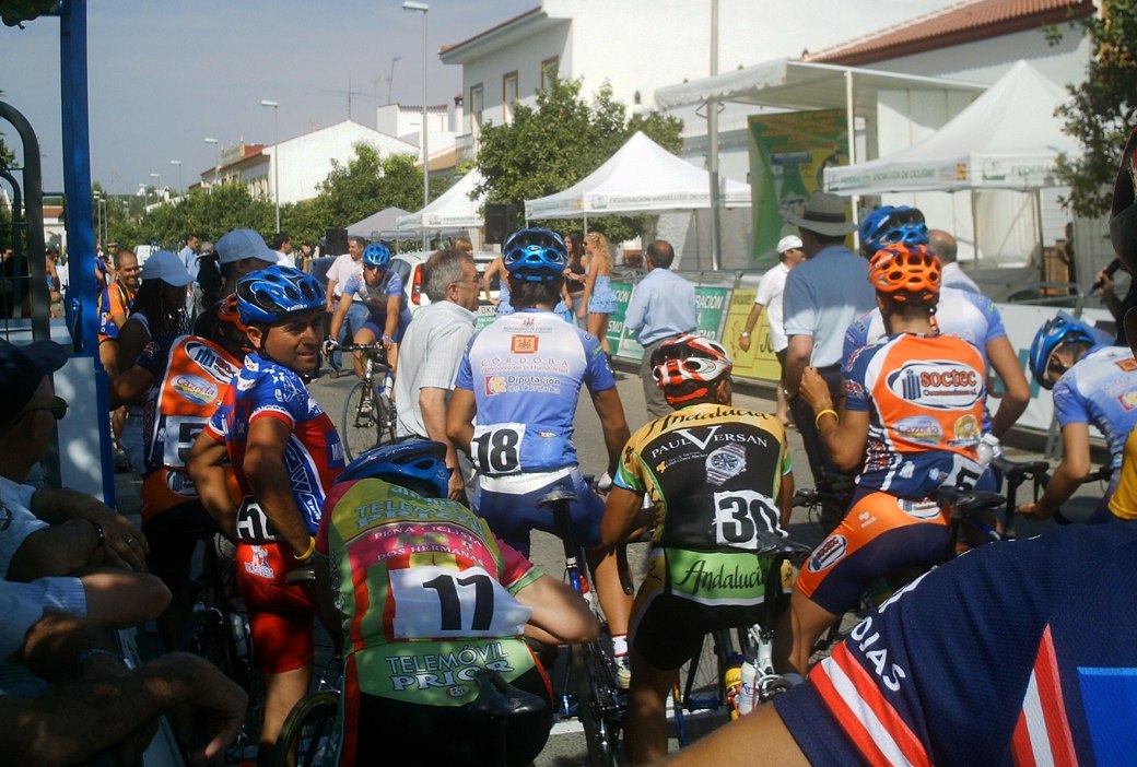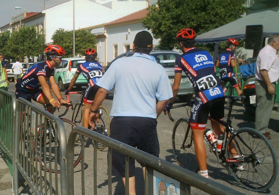 Arranqué de alli en busca de los fugados, no me acuerdo quien vino conmigo, pero pillamos a Edu y Rosendo, que habian arrancado antes, también venia otro Avila Rojas y Manolo de Utrera. Edu iba a rueda porque decia que tenia compañeros alante, efectivamente iban Manolito y Claudio el Argentino, asi que era lo que tenia que hacer pero cuando me pidió que compartiese el Powerade que me dio Padilla del Patrimonio...-Una mierdaaaaaaa, que vas a rueda!!!!!! Entonces cogió y nos arrancó..