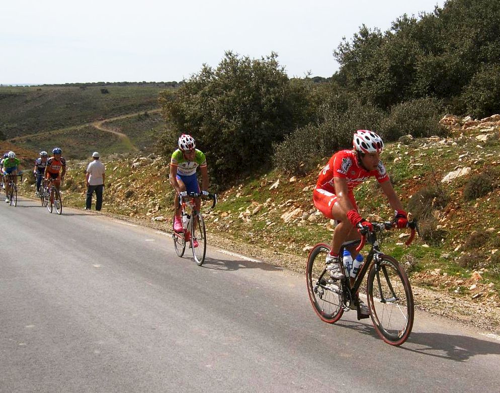 El terreno se hizo quebrado, empezamos una bajada, seguido una subida que se subio a bloque, otro descenso y otra subida que ya se hizo mas dura, en esa subida me encontré bastante bien, la coronamos, hicimos otro descenso, y otra subida, donde arrancó un grupo que cogió hueco, saltaron un par de ellos detras y yo a por ellos, les pillé, abrimos hueco con el pelotón, pero no conseguiamos enganchar con el grupo mas grande que habia saltado, nos quedamos ahi en medio hasta que nos pilló el pelotón enfilado, entonces arrancó Guti del Baque y enganchó el solo con los de delante.